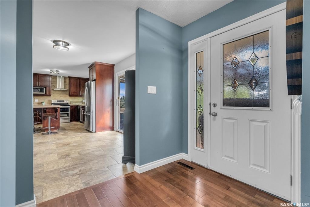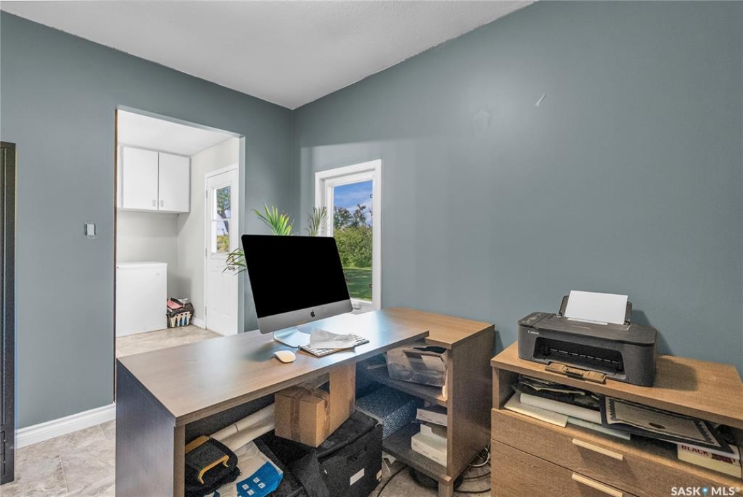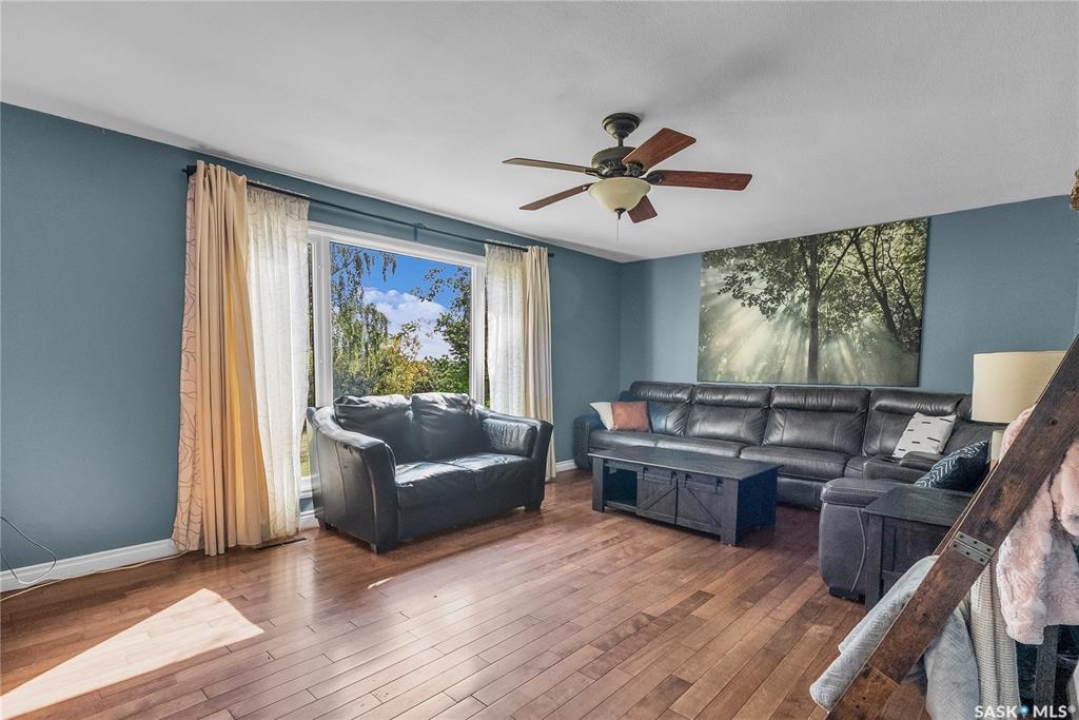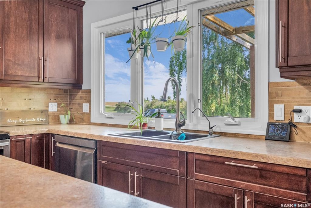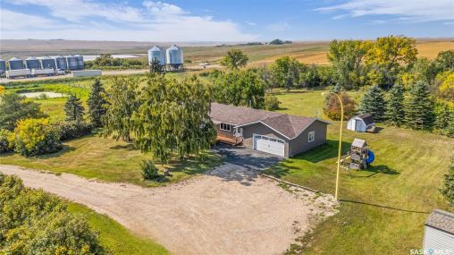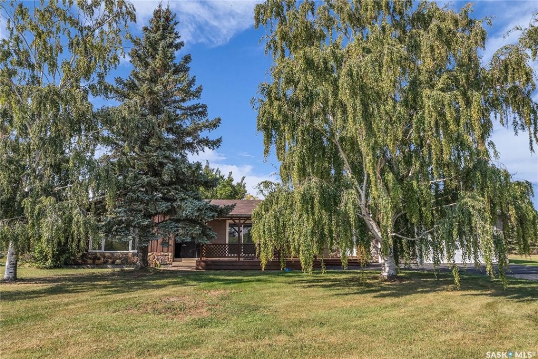 You will appreciate this family sized, country bungalow located SE of Allan and or SW of Young. This 10 acre mature treed yard site is a great place to raise a family or enjoy what country living has to offer. When you enter this home, you are welcomed to a spacious mud room with cabinetry and storage spaces for clothes and footwear. There is a home office off the mud room with a view of the backyard. The kitchen and open eating area is a great space to gather around the kitchen table. The island provides a great spot to prepare the meals. Sliding doors for quick access to the east facing deck from the dining area. Large living room and three spacious bedrooms, 5 piece bath (2 sinks) and a dedicated main floor laundry room with a sink and cabinetry. The basement features a large family room and an area for games, 3 pc bath, storage and utility room. The insulted attached garage with direct entry is a great benefit. Come and view this great property. You could be spending your next Christmas in the country?