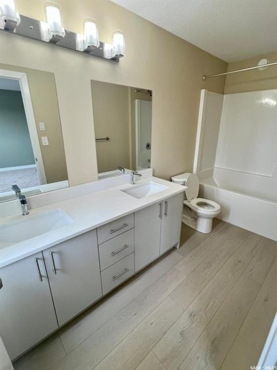 Welcome to 2974 Green Brook Road, a two-storey home in Regina's sought-after Greens on Gardiner community. This 1,825 sq. ft. detached property blends modern finishes with functional design, offering 5 bedrooms, 4 bathrooms, and a legal regulation basement suite with a private entrance—perfect for extended family or rental income. The main floor showcases an open-concept plan with luxury vinyl plank flooring, a spacious living room accented with a feature wall, and a bright dining area that flows seamlessly into the chef-inspired kitchen. Here you'll find sleek cabinetry, quartz countertops, stainless steel appliances, an island with eating bar, and a convenient pantry. Upstairs, a versatile bonus room provides additional living space, while the primary retreat features a walk-in closet and a spa-like ensuite with dual sinks. Two additional bedrooms, a full bath, and a dedicated laundry room complete the second floor. The fully finished basement suite offers its own modern kitchen, living area, 2 bedrooms, full bath, and separate laundry—designed with privacy in mind. Outdoors, the low-maintenance yard includes rock landscaping and artificial turf, with a concrete driveway leading to a double attached garage accented by stone detailing. Located in a family-friendly neighbourhood with parks, schools, and amenities nearby, this is a perfect opportunity for homeowners seeking style, space, and investment potential in one package.