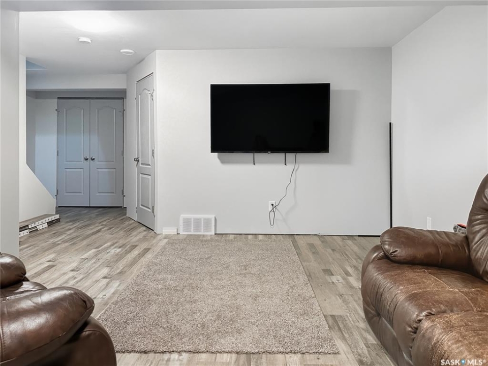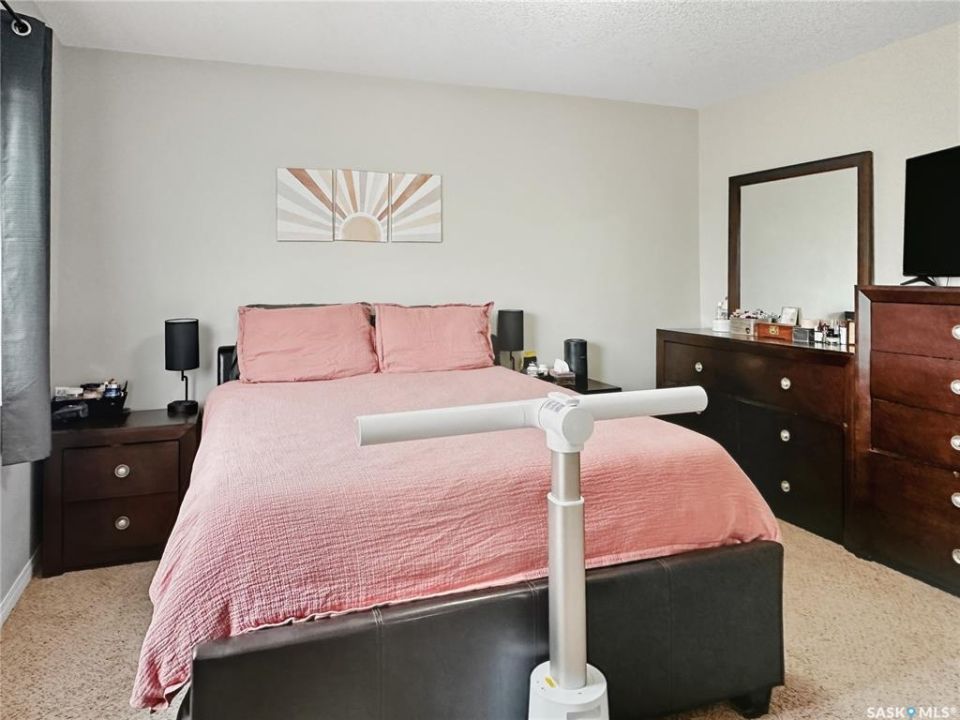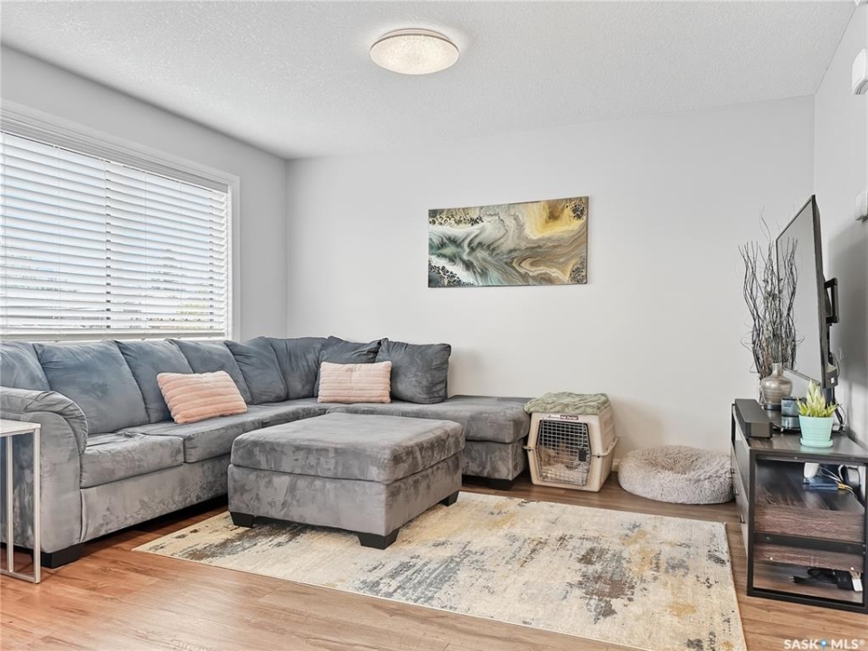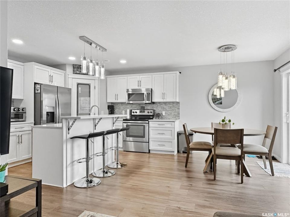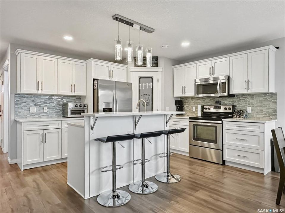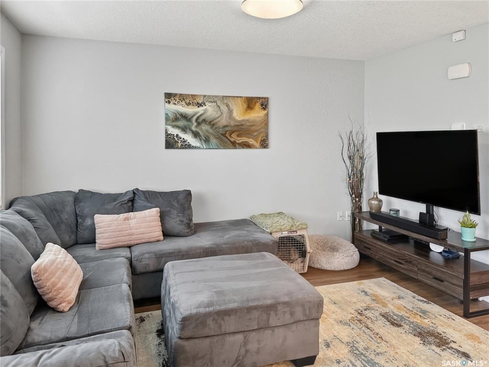 Gorgeous Battleford townhouse condo now available, offering tons of upgrades, low condo fees, and an excellent location! This 1277 sqft, two-storey home is move-in ready and will impress the moment you walk through the door. The main level has been fully renovated with neutral laminate flooring and fresh paint, giving the space a modern, bright, and airy feel. The kitchen is a true showstopper, featuring crisp white cabinetry, luxurious quartz countertops, stainless steel appliances, stylish fixtures, and a spacious corner pantry. Open to both the dining area and living room, it creates the perfect layout for everyday living and entertaining. Upstairs, you'll find three bedrooms along with the convenience of laundry on the same level. The primary suite offers a generous walk-in closet and a beautiful 4-piece ensuite bathroom, while a second 4-piece bath serves the additional bedrooms, perfect for kids or guests! The fully finished basement has also been updated with luxury vinyl plank flooring and fresh paint, providing a cozy family room and versatile flex space perfect for movie nights, workouts, or extra company. Additional features include a fully insulated attached garage with direct entry to the home, a newer fence, updated landscaping in the front yard complete with underground sprinklers, and central air conditioning installed in 2023. With condo fees of just $100/month, this property combines style, function, and value in a highly desirable Battleford location. Whether you're a first-time buyer, a growing family, or simply looking to downsize into a low-maintenance lifestyle, this home has it all.