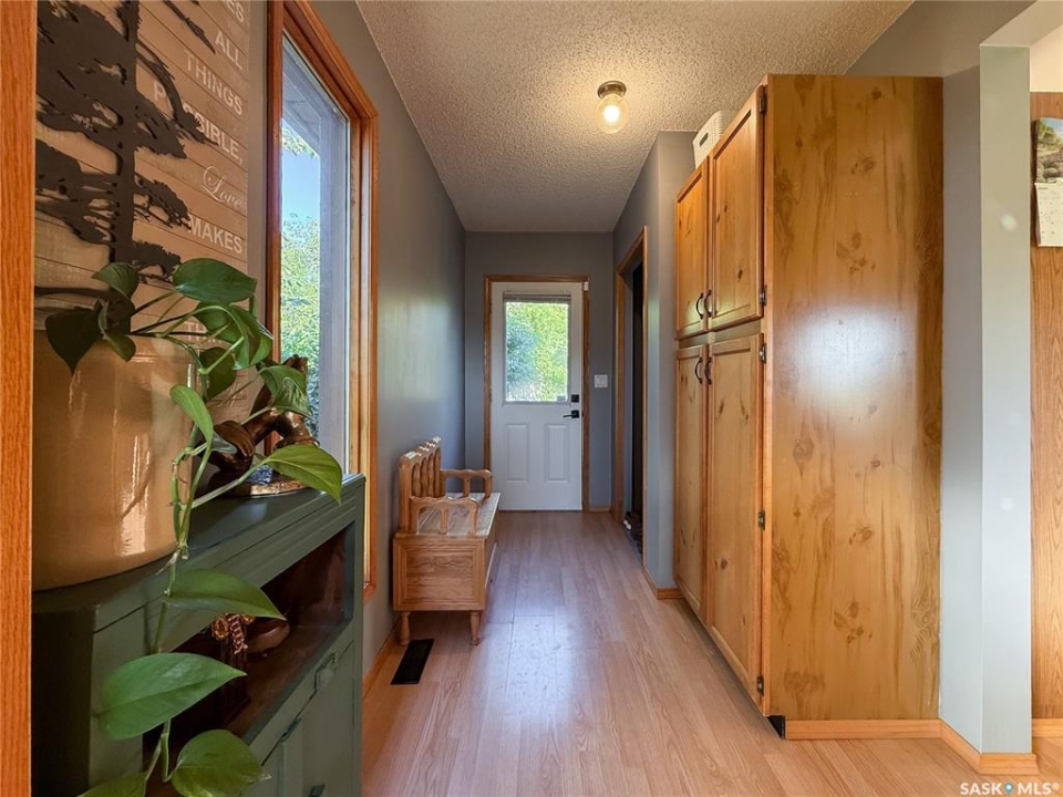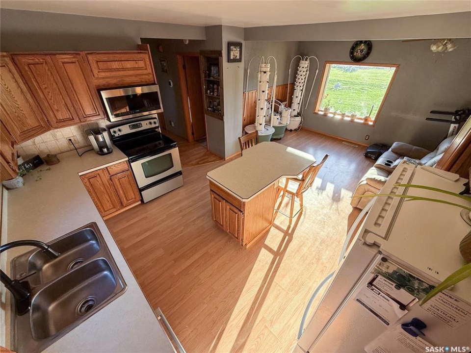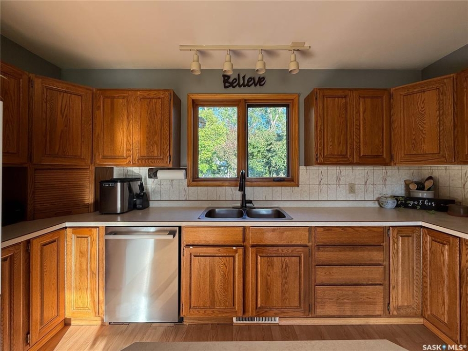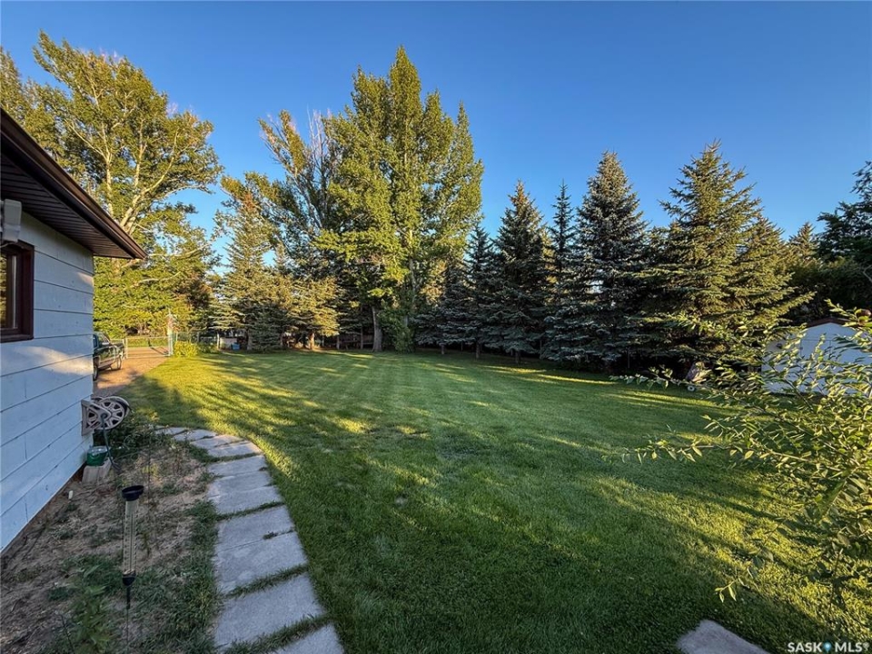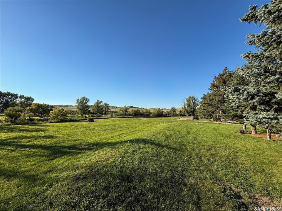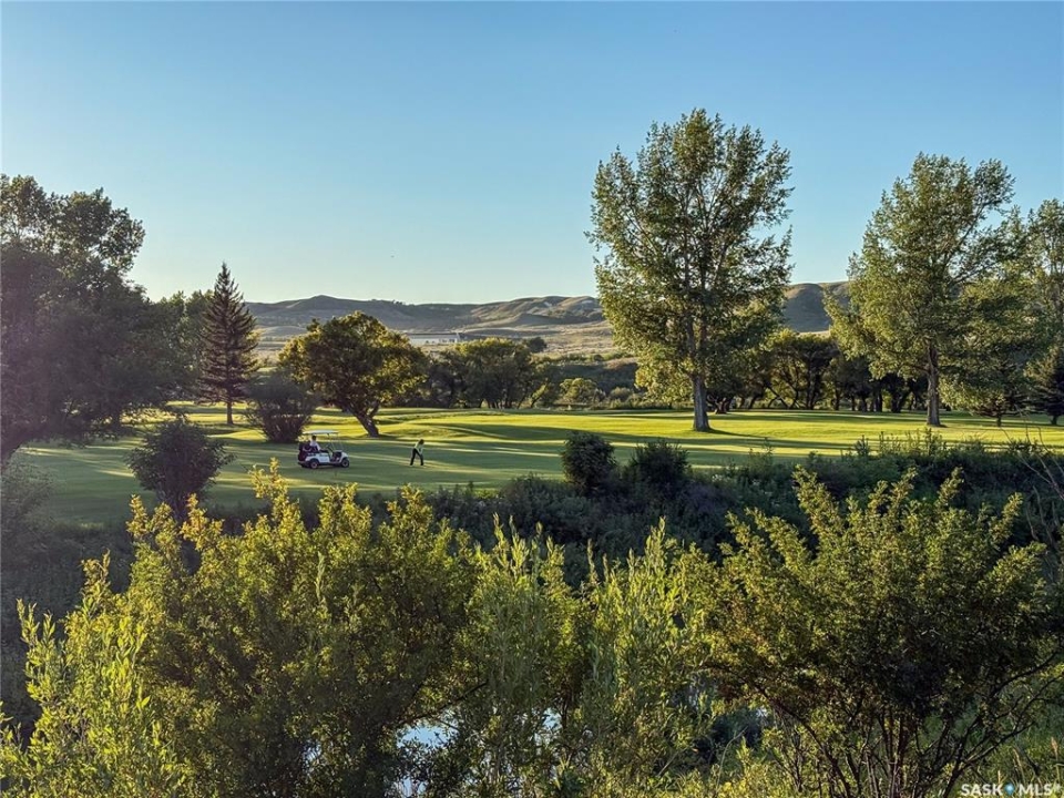 Welcome to 223 Riverside Boulevard — a rare gem tucked into one of Eastend's most picturesque settings. With wide-open green space across the street and the gently flowing creek just beyond, this home offers uninterrupted views of the Riverside Golf Course and even a peek of the T.rex Discovery Centre off in the distance. It's the kind of property where morning coffee comes with deer sightings and evening sunsets glow golden over the valley. With 1,203 sqft of living space and sitting on a massive 17,325 sqft lot, this property offers both beauty and functionality in a truly unbeatable location. Entering from the back, you're greeted by a practical mudroom that leads straight ahead to the main floor laundry area or left into the heart of the home. The oak kitchen features a large eat-up island, perfect for casual meals or entertaining, while the adjacent dining area/living room are bright and welcoming thanks to the large bay window that frames those stunning front-facing views. Off this space, you'll find the 1st main floor bedroom, a 4-piece bathroom and access to the partially developed basement.. The primary bedroom is tucked away off the secondary living room and features its own 3-piece ensuite. From the living room you have direct access to the show-stopping sunroom — finished in rich wood accents and flooded with natural light. Whether you're unwinding with a book or hosting friends, this space offers space for enjoyment and leads out to the deck and backyard oasis. A small feature pond, established landscaping and ample entertaining space make the outdoors just as inviting as the inside. The lot offers multiple parking options, including a gravel front drive, asphalt rear pad, parking beside the shed and a 32x26 double detached garage with lane access — partially insulated and ready for projects or storage. Whether you're looking to settle in the valley full-time or dreaming of a peaceful getaway, this prime Eastend location gives you the best of it all.