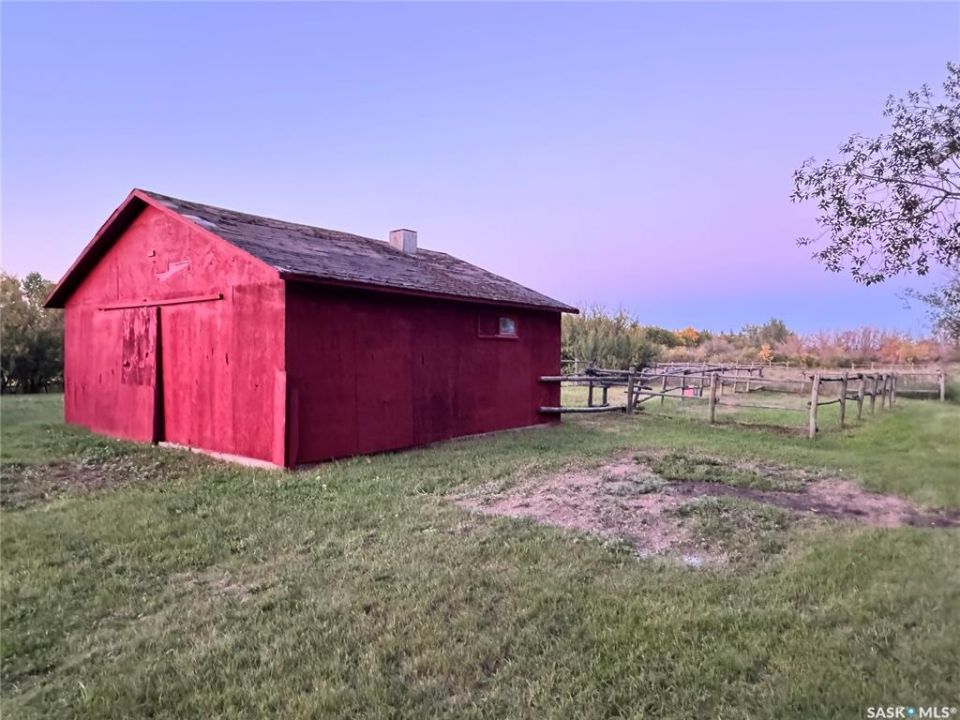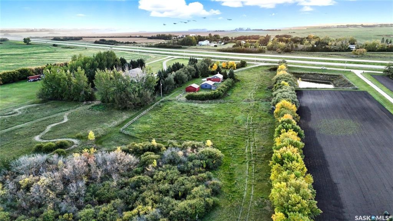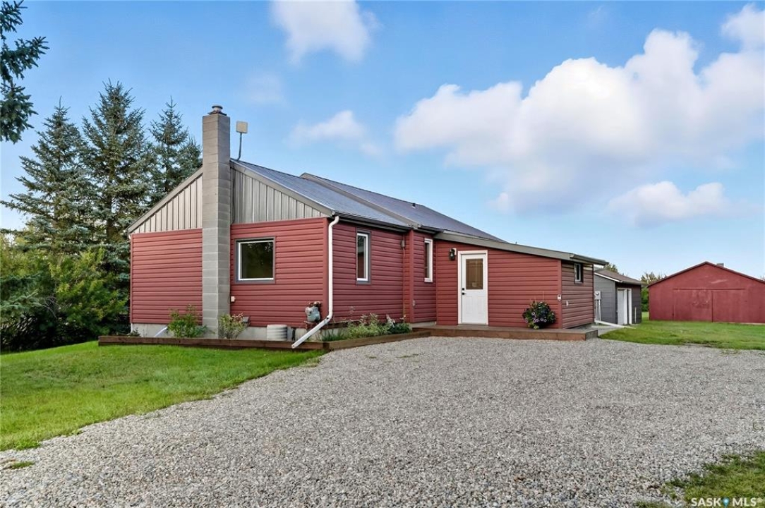 Located only 6km from Osler, tucked into this well treed acreage you will find this 1120sq ft renovated bungalow. If you have been searching for a property close to Saskatoon that can accommodate horses, chickens or you desire more space for hobbies, then this is a great option for you. The property includes a double detached garage, shed, a barn with corrals and pasture land on just under 10 acres. Over recent years 4 bedroom, 2 bathroom home has received quite a facelift with new windows, metal roof, vinyl siding, updated front door and front deck with perennial flower beds(2024). When you enter the home you will immediately notice the spacious front porch with fresh paint, vinyl flooring and space to accommodate everyone in the family and their gear too! The functional kitchen is clean and tidy and has updated appliances. Hosting big family get togethers is no problem with the spacious dining and living rooms with beautiful cottage like views of the property. The main bathroom has been completely renovated and features a beautiful soaker tub with surround, black accessories, vinyl flooring, new toilet, modern vanity, mirror, fan and lighting. The master bedroom is complete with new walk-in closet, vinyl flooring, recessed lighting, 2 windows and fresh paint. The second bedroom has also been similarly upgraded to match and would be perfect for a childs room or office. The basement offers a family room with new carpet and paint, with a newer laundry area located just off of it as well. An entirely new 3 piece bathroom recently developed is an extra bonus. There is 2 additional bedrooms (one of which does not have a closet) to utilize as you wish. This home has been well taken care of and is full of possibilities. Other improvements include newer furnace and water heater updated trim, lighting. With extras like central air conditioning, and city water, this property won't last long. Presentation of offer will be on Wednesday, September 24, 8pm.