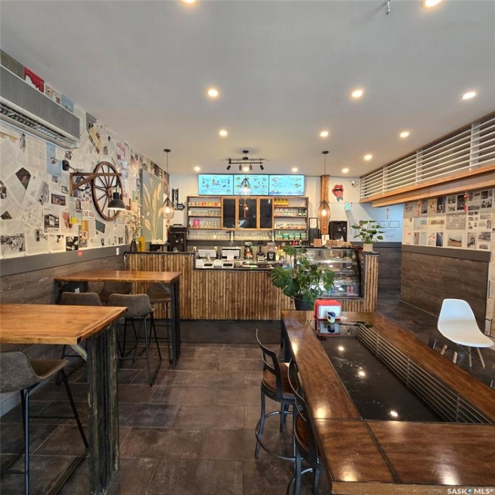 Welcome to this high-visibility corner unit commercial space—the well-known Chat Chat Coffee and Restaurant, now available for sale in one of Regina's busy and growing areas. Conveniently located close to downtown, this turnkey opportunity offers a fully equipped café and restaurant setup featuring a stylish dine-in area, professional kitchen with commercial-grade appliances, prep zones, office space, two washrooms, and storage throughout. The inviting atmosphere and central location make it an excellent spot for business meetings, casual dining, or coffee catch-ups. The unit also boasts large front-facing windows and is surrounded by residential density and foot traffic—ideal for entrepreneurs or investors ready to take over a thriving, ready-to-operate food business. Don't miss out on this exceptional commercial offering—book your viewing today!