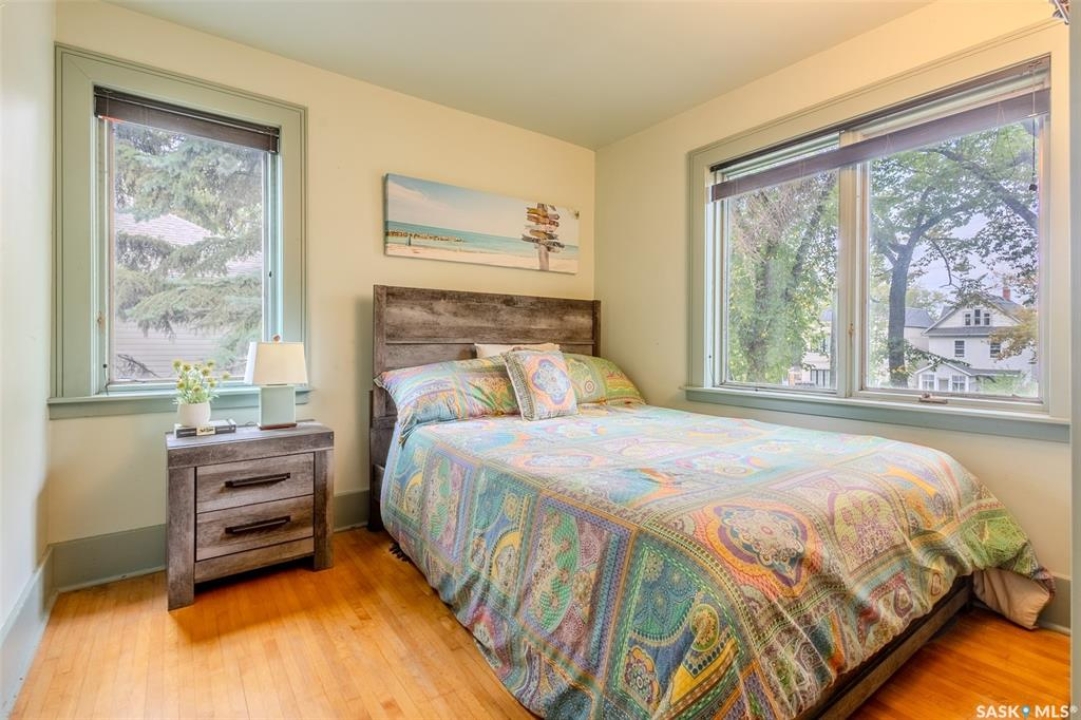Welcome to 710 University Drive! Presenting a rare opportunity to secure your place on one of Saskatoon's most prestigious and historic streets. Whether you're envisioning your dream home on this coveted lot, seeking an investment to build two custom residences with R2 zoning, or drawn to the timeless character of a Dutch Colonial, this property offers endless potential. Set on an expansive 52 x 140 ft lot, this home is just steps from the river, minutes to Broadway's vibrant boutiques and cafes, and a short stroll to the University of Saskatchewan. University Drive is renowned for its mature tree-lined streets, heritage charm, and unbeatable walkability to river trails and downtown amenities. Built in 1926, the two-story residence blends historic character with thoughtful updates. Original hardwood floors and a gas fireplace anchor the inviting living room, while a sunroom with shuttered windows provides a bright, relaxing retreat. The formal dining room, complete with built-ins, connects to a kitchen that pairs vintage appeal with modern function, featuring a Miele gas cooktop and oven, smart fridge-freezer, farmhouse sink, and views of the private yard. Upstairs, you'll find a spacious primary suite with an updated en-suite, two generous secondary bedrooms, and a 4-piece bathroom. The fully developed lower level offers a rec room, guest bedroom, updated bath, and laundry with a smart washer and dryer. The backyard is an expansive private space with mature trees and a patio, ideal for entertaining, gardening, or future redevelopment. Recent updates include: high-efficiency furnace, on demand hot water heater, bathroom updates and kitchen appliances. This property presents a rare opportunity. Whether you restore its character charm, build your dream residence, or capitalize on R2 zoning for redevelopment, 710 University Drive is a great chance to create something remarkable in one of Saskatoon's most desired neighbourhoods. Call your Realtor today!