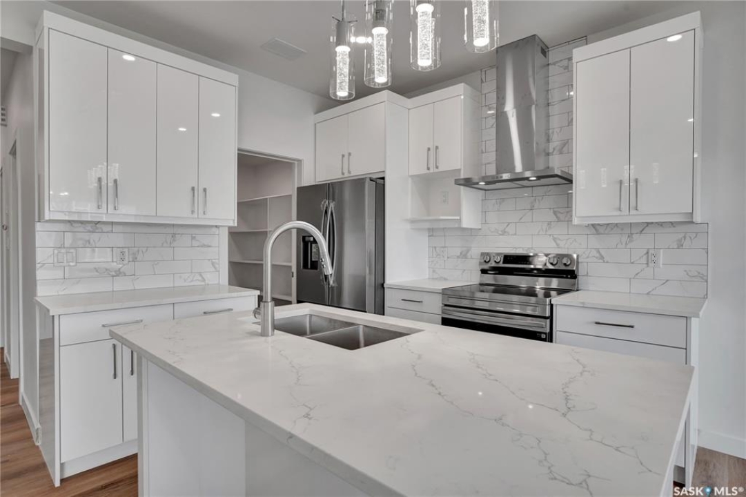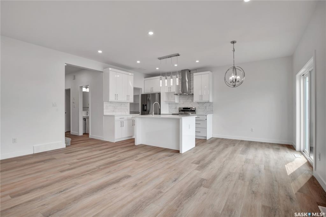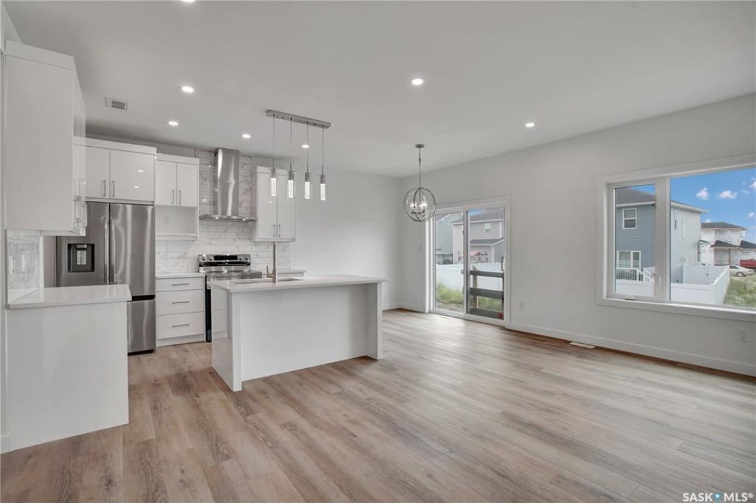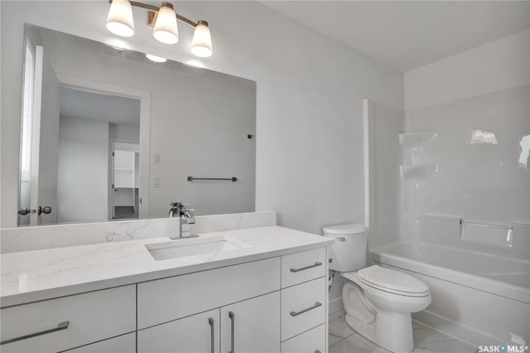 Discover modern living in Saskatoon's vibrant Kensington community with this brand-new 1,756 sq. ft. two-storey by Abi Homes. Designed for style and function, it features a bright foyer with oversized windows, a spacious open-concept living and dining area, and a chef-inspired kitchen. Upstairs offers three bedrooms, including a primary suite with two walk-in closets and a spa-like ensuite, plus a bonus room and office. The basement features a separate side entry, offering potential for a legal two-bedroom suite plus an extra bedroom and bathroom for the main residence. Built for comfort and efficiency, it includes triple-pane windows, high-grade insulation, radon mitigation, and a 95% high-efficiency furnace with HRV. An oversized garage and large backyard provide plenty of space for vehicles, storage, and outdoor living. Complete with a sleek modern exterior, this home will be move-in ready in a family-friendly neighbourhood close to parks, schools, and amenities. Early 2026 completion with a New Home Warranty. Developed with pride in quality and service by Abi Homes, a boutique luxury builder with over 15 years experience.