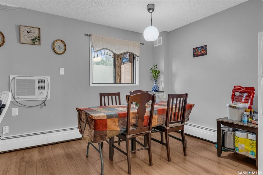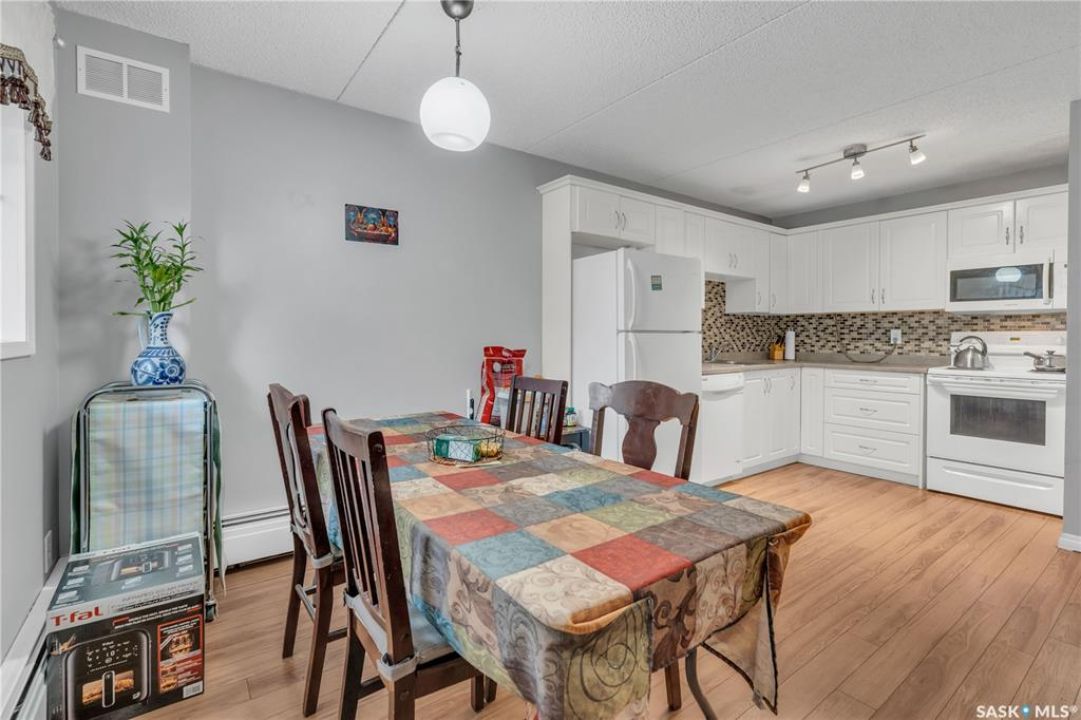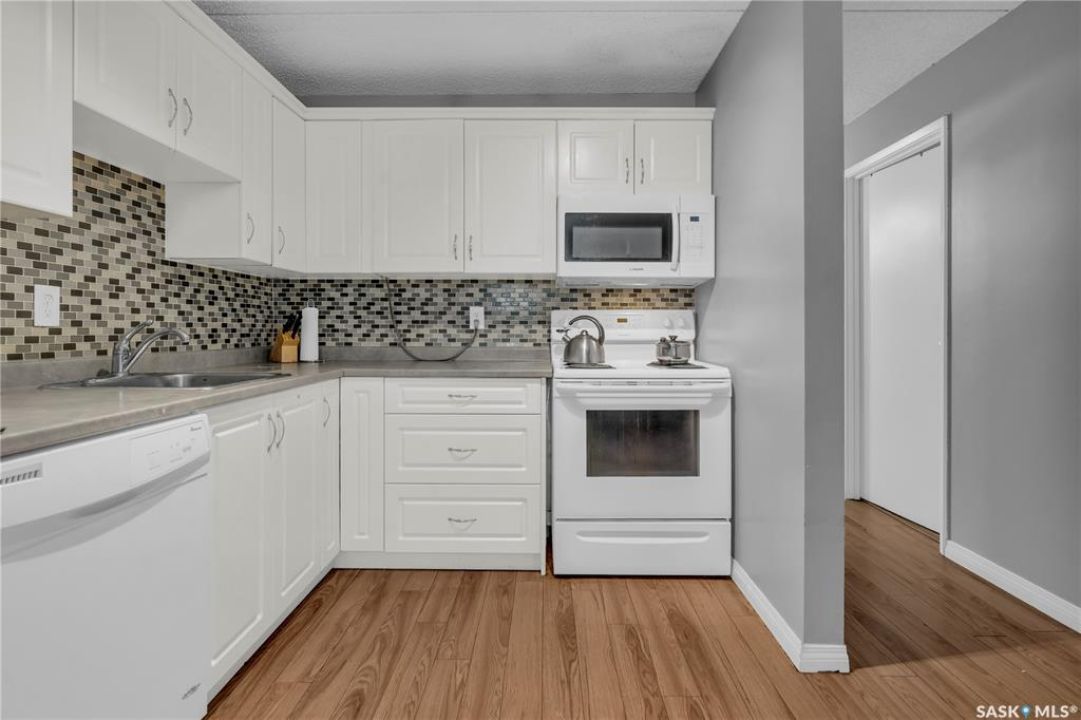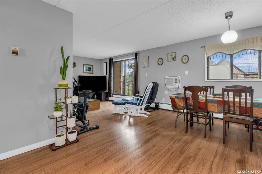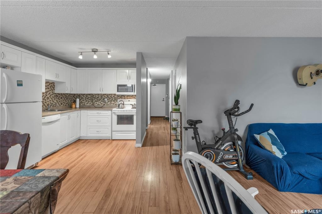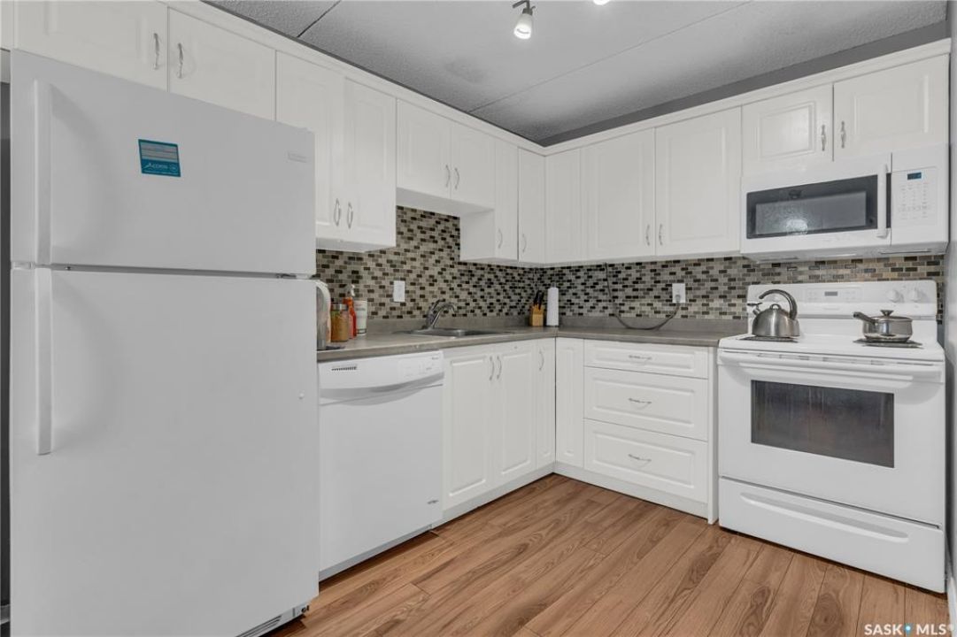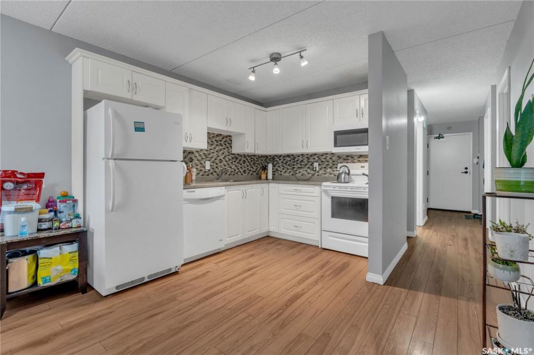 Welcome to this spacious 2-bedroom condo, located in a solid building complete with underground parking, in-suite laundry, and elevator access. As a bright corner unit, both generously sized bedrooms offer windows that fill the space with natural light throughout the day. The open-concept living and dining area is perfect for relaxing or entertaining, with patio doors leading to a large, private balcony. The bright white kitchen includes a built-in dishwasher (all appliances included), and you'll love the convenience of in-suite laundry (washer and dryer included). This unit comes with underground parking and a storage locker for added convenience. Located near the General Hospital, Wascana Lake, downtown, and a bus route to the University of Regina — you'll love living close to it all! Whether you're a first-time buyer, a family, an investor, or simply looking to simplify your lifestyle, this is a fantastic opportunity. Contact your REALTOR ® today to book your private showing!