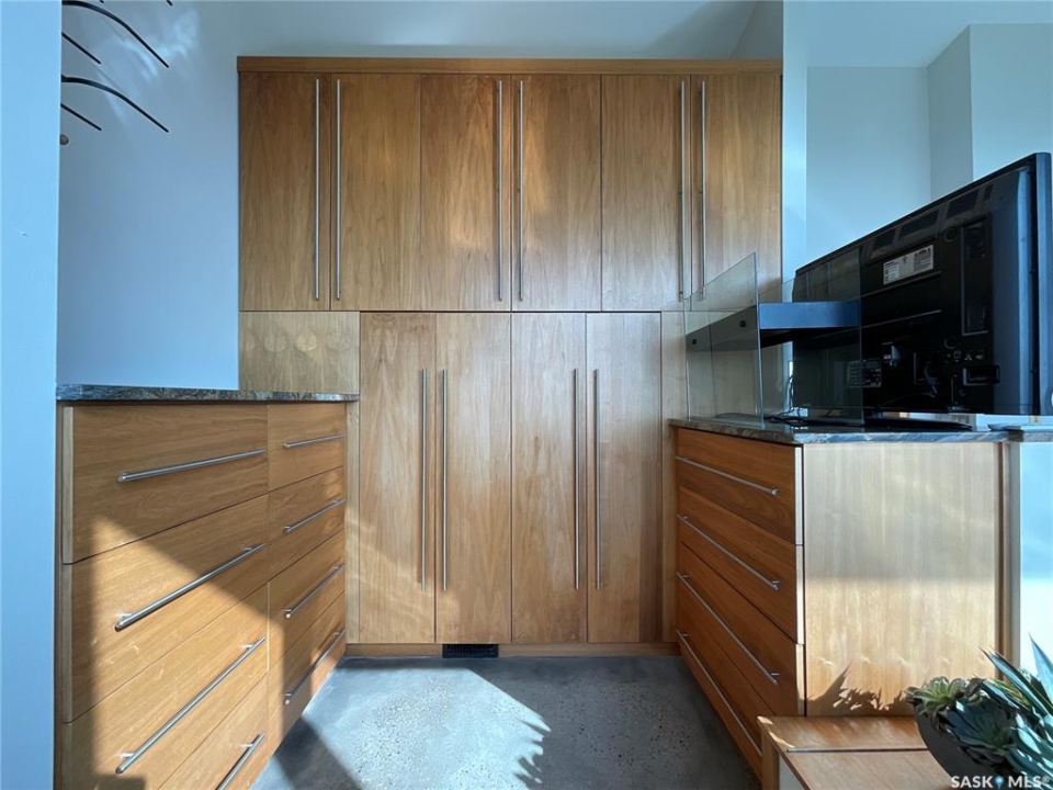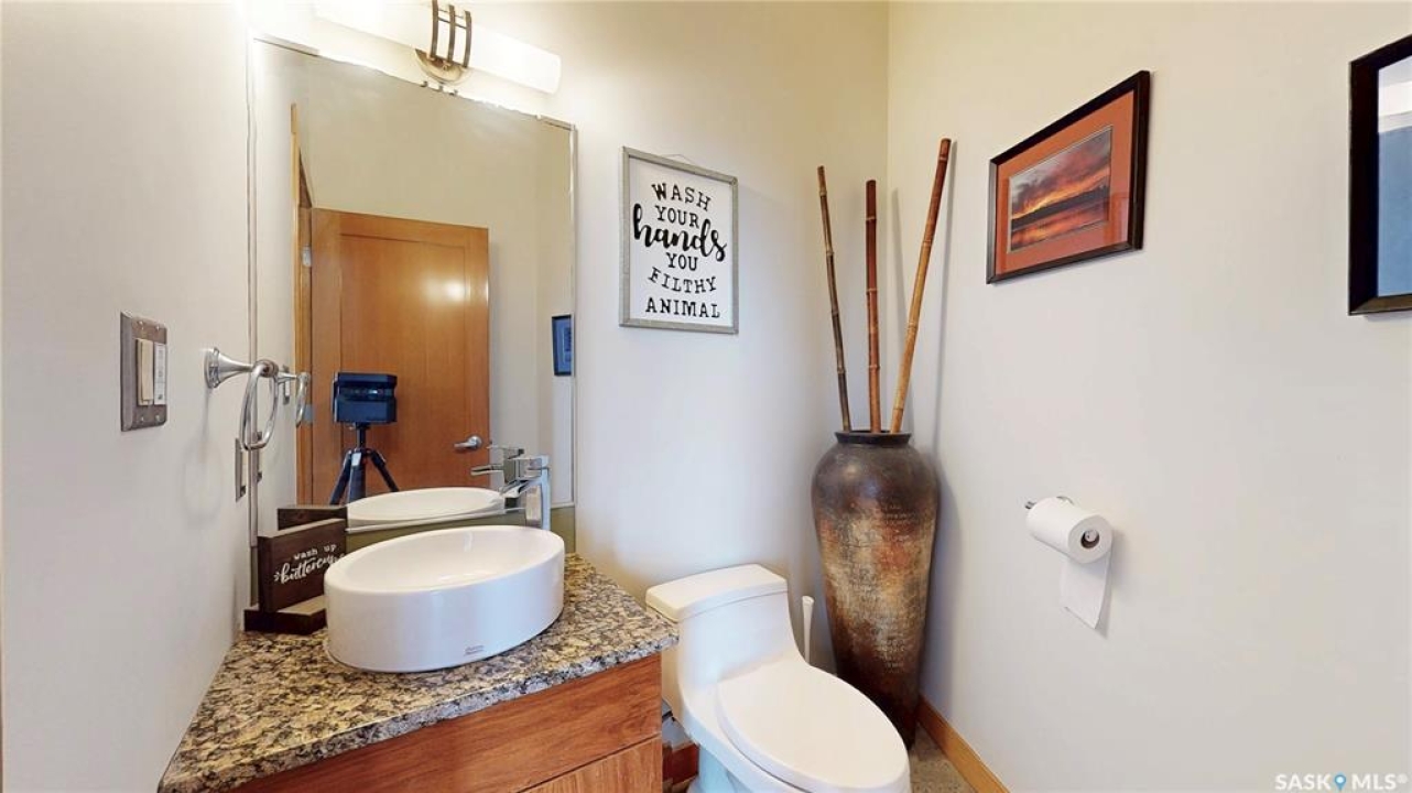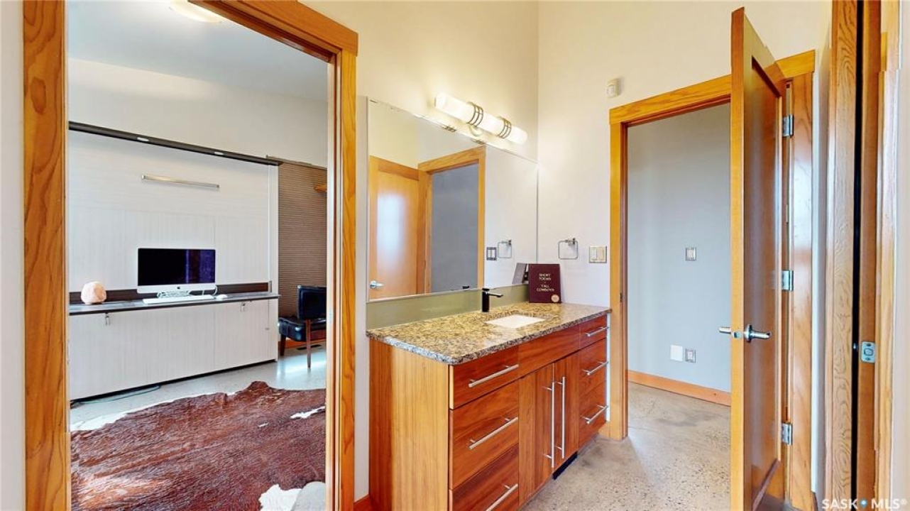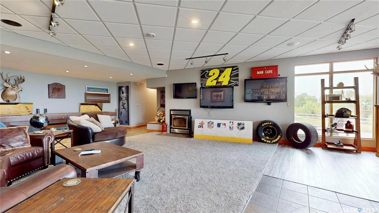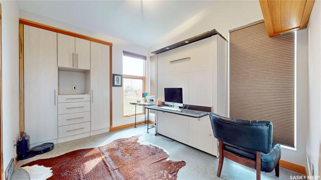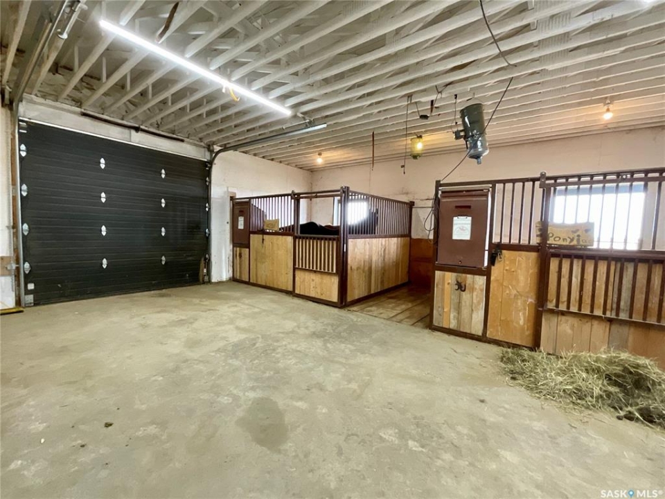 Experience 40 Apollo Drive in the Acreages at Minerva Ridge near Lumsden. From the powered gate and lit lane, this 5-bedroom, 4-bath home offers 2,200 sq. ft. on the main plus a full walkout level, including a private entrance suite for extended family or a caregiver. Floor-to-ceiling curtain wall windows showcase the Wascana and Qu'Appelle valleys, filling the home with light. Built for comfort and efficiency, the home features zoned in-floor hydronic heating, high-efficiency boiler, gas furnace with A/C backup, spray foam insulation, EIFS stucco, triple-pane argon windows, and a 12.6 kW solar system powering both house and barn—keeping costs near net zero. The kitchen includes a built-in gas cooktop, double wall oven, drawer microwave, fridge, dishwasher, and a butler's pantry with upright freezer and extra fridge. A mudroom with built-ins sits just off the garage. Technology upgrades include RA2 automation for blinds, lights, climate, and locks, whole-home audio, five video screens, Ring security, an 8-camera CCTV system, and permanent holiday lights. The lower level adds a wet bar, games area, and gym with overhead door for fresh air workouts. Outside, enjoy a covered patio with built-in BBQ, 8-person hot tub, and heater. A heated 1,080 sq. ft. garage and 35x70 insulated barn/shop provide storage, stalls, tack room, hay loft, and heated workshop. Equine features include a 100x180 LED-lit riding arena, two fenced pastures with solar fencing, and automatic water systems. Extras include a reinforced secure room, 200-amp service, water softener, and custom cold storage. Lumsden's schools and amenities are minutes away, with Regina only a 15-minute drive. Purchasers also have first right of refusal on the adjoining 3-acre parcel. https://youtu.be/mPkNdWGtmeE