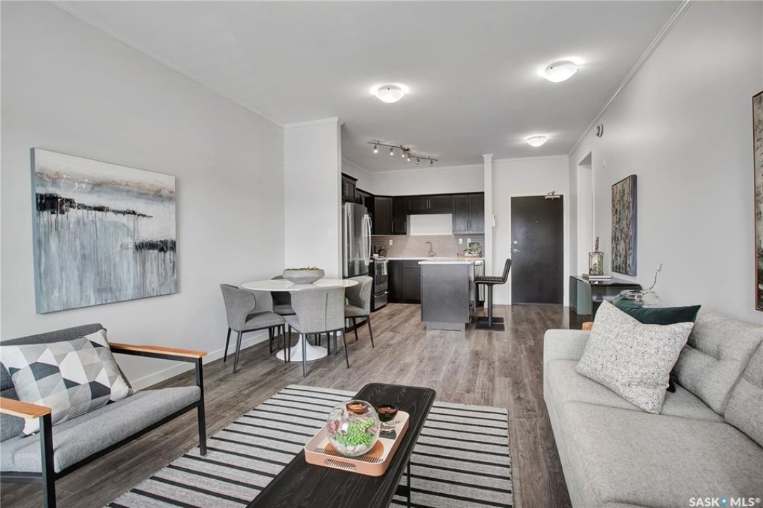 This Kensington Flats condo features 2 bedrooms, 1.5 bathrooms & 2 parking stalls with one underground. The beautiful finishings throughout feature espresso maple cabinetry in the kitchen and bathrooms (soft close doors and drawers), glass tile backsplash, stainless steel appliances, quartz countertops, moveable island and a great sized living room with a door that leads out onto the balcony. The in-suite laundry features a stackable full size washer and dryer. Great layout with the bedrooms being separated from the main living space and 9' ceilings throughout. Additional perks include additional storage locker, central air conditioning, heated underground parking, amenity spaces in the building, & you'll be in walking distance to all the amenities of Kensington & Blairmore. Convenient condo living!