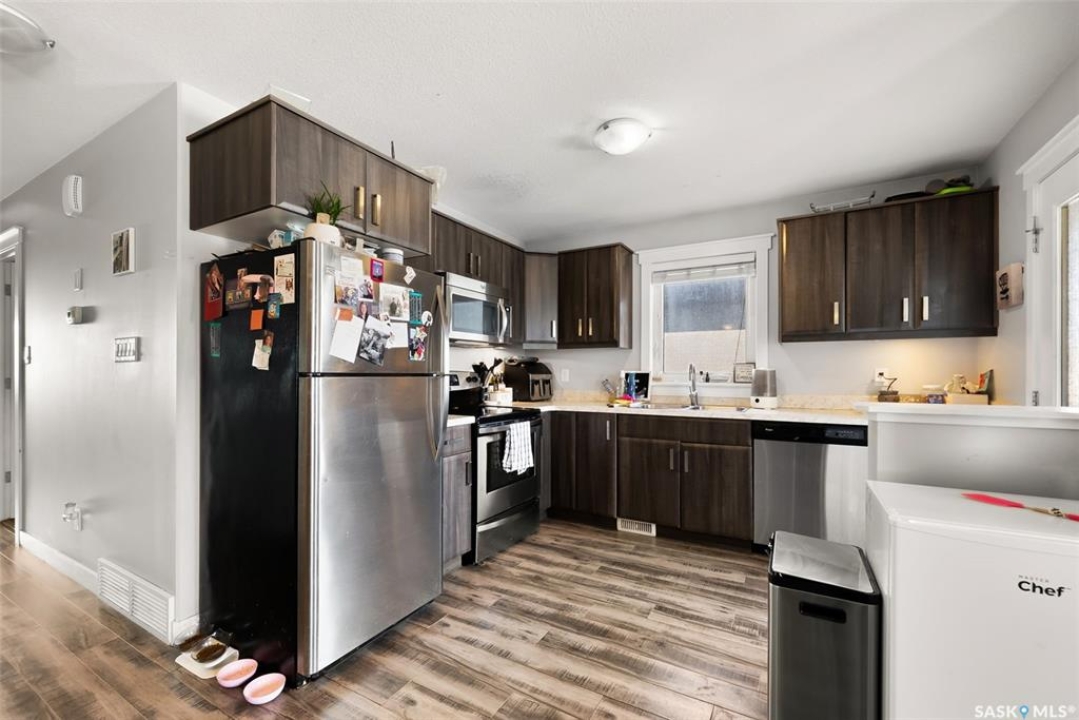 Located in the sought-after Skyview neighbourhood, this property offers a smart way to live comfortably while having tenants pay down the mortgage or lease the entire building out to generate cashflow. The main floor features a bright open layout with a well-planned kitchen finished in grey cabinetry and has stainless-steel appliances. Two bedrooms, a four-piece bathroom and an in-suite laundry closet complete this level. Upstairs is a fully regulated two-bedroom suite with its own entrance and a nearly identical floor plan. One bedroom includes a walk-in closet and the kitchen opens onto a covered private balcony—an inviting space for morning coffee or evening relaxation. The basement provides even more versatility with a rec room, wet bar, two additional bedrooms, a and a full four-piece bathroom. Both the main and second-floor suites have separate utilities for gas, power and water, as well as individual furnaces, water heaters and central air. Designated parking stalls are located at the rear of the property. Two newer water heaters were installed. Whether you're looking for a comfortable home with income potential or a long-term investment to cashflow, this property is a rare on market opportunity!