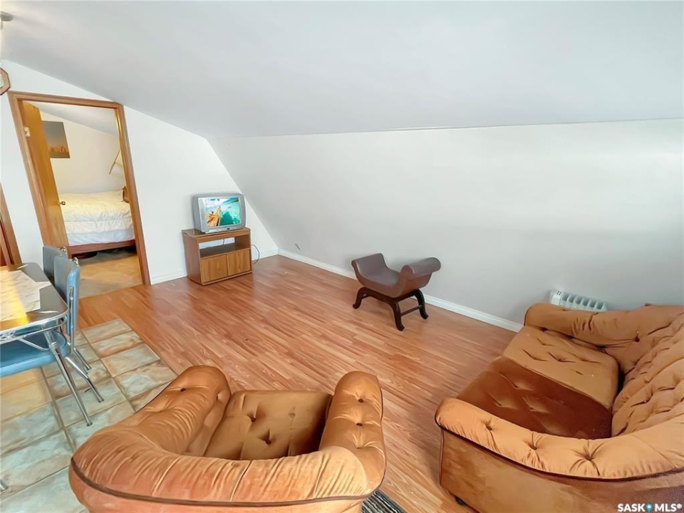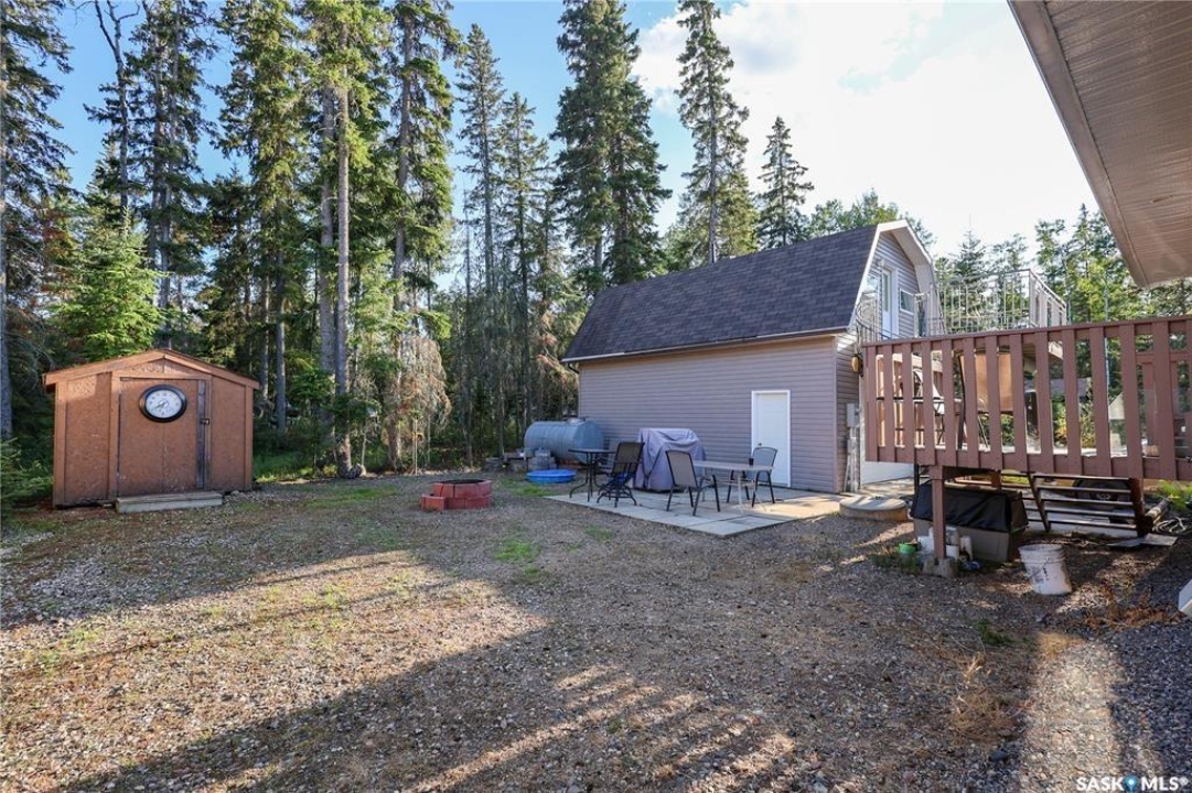Fall Opportiunities — and wait until you see the bonus loft above the garage! The home itself showcases 1052sqft, 3bedroom, 1bath, laundry with detached double garage located in Northview Subdivision. What make this a true GEM is the bonus 572sqft 2bedroom loft over the garage, with kitchenette and 4pc bath, large front deck, and heat source, perfect for additional family or airbnb option. Additional highlights include a bright, open layout with vaulted ceilings, a dedicated laundry room, tons of cupboards, pantry, island, a water holding tank, a 1,000-gallon septic tank, and an oversized 60' x 115' lot. The low-maintenance yard features a gravel driveway, ample parking, a firepit area, and a storage shed. People love this neighbourhood for the combination quietness and proximity to the golf course. Come check it out Today!...This can be #yourhappyplace