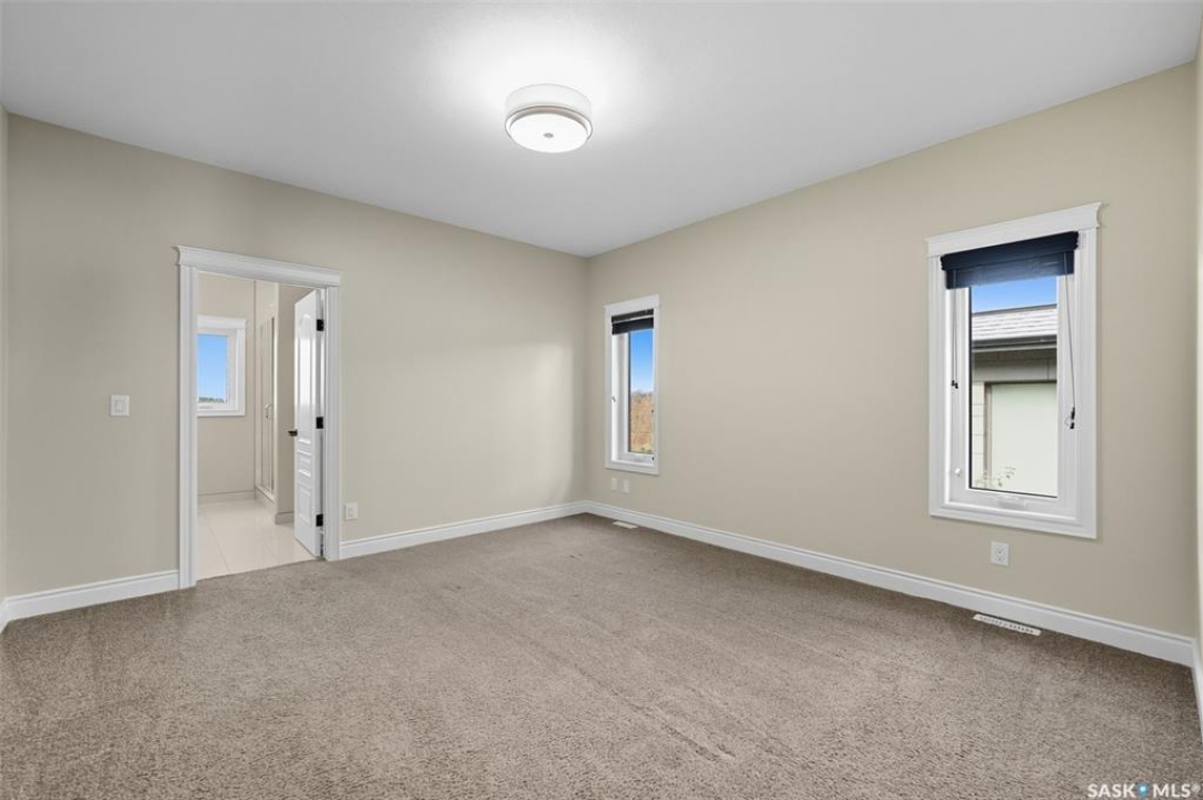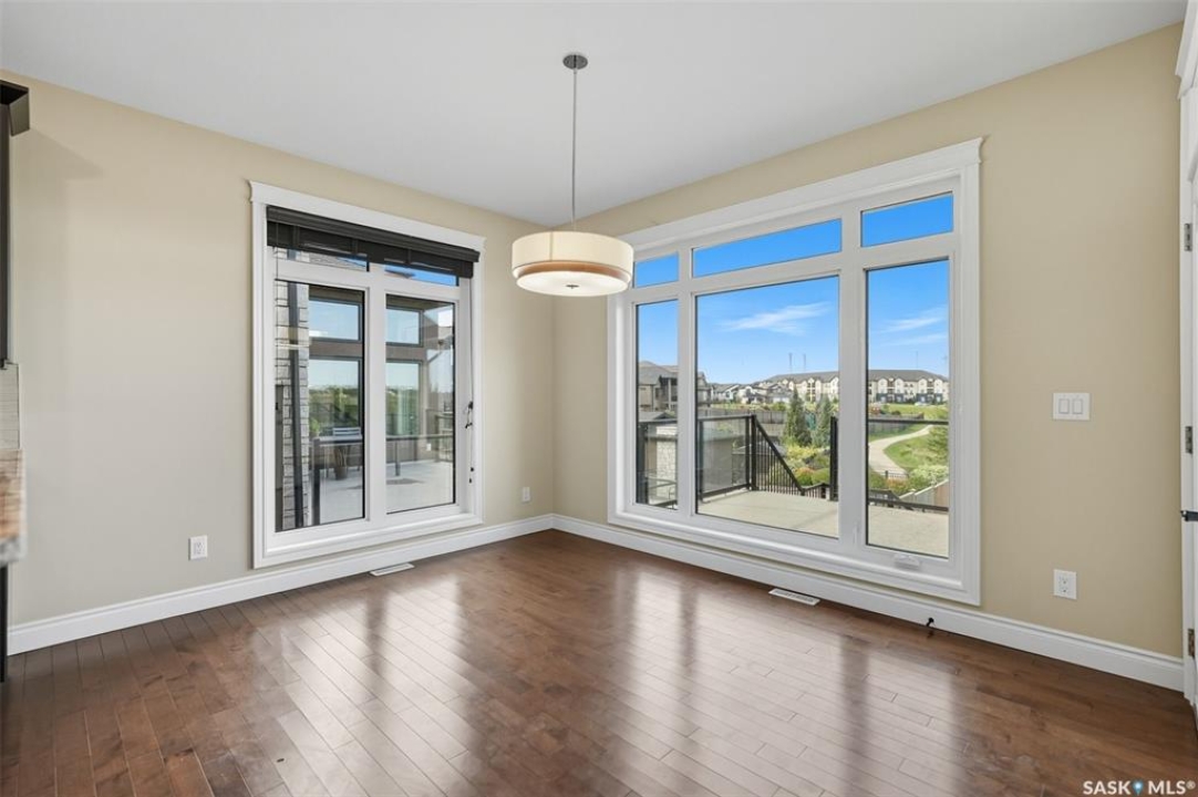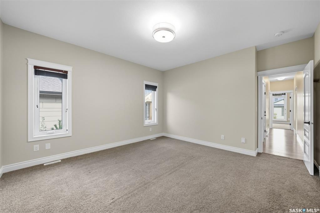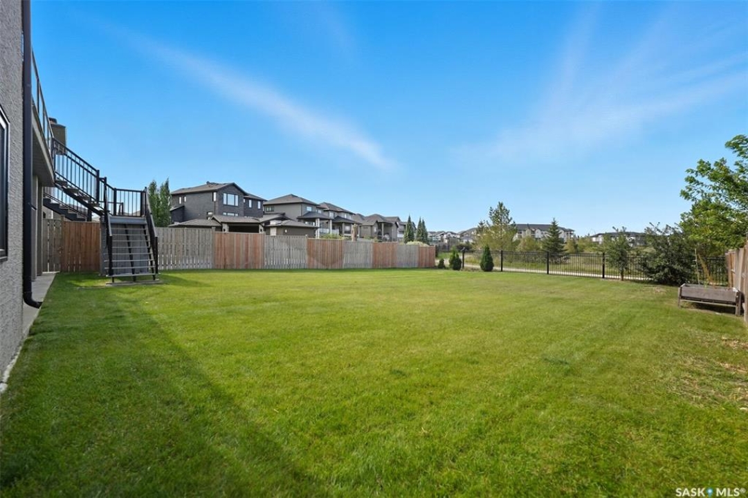 Welcome to 714 Ledingham Place, a rare find in a fantastic cul-de-sac location backing onto Hyde Park with breathtaking water views. Situated on a massive 9,559 sq. ft. lot with a sunny southwest-facing backyard, this D&S–built walkout bungalow offers over 3,600 sq. ft. of luxurious living space with top-quality finishes inside and out. The striking stone and stucco exterior, oversized driveway accommodating up to five vehicles, and impressive curb appeal set the tone. Inside, the main floor boasts soaring 12-ft ceilings, a spacious foyer with tile flooring, open-concept living with a tiled feature wall and gas fireplace, and a chef's dream kitchen with abundant maple cabinetry, granite countertops, tiled backsplash, corner pantry, and a generous dining area overlooking the park and pond. Hardwood flooring flows throughout, complementing three large bedrooms, including a primary suite with walk-in closet and spa-like ensuite featuring dual sinks and a tiled shower. Main floor laundry adds convenience. The bright walkout basement expands the living space with a large games room, family room, office, two additional bedrooms with walk-in closets, a 5-piece bath with jetted tub, and durable laminate flooring. Outdoor living shines with a composite deck, glass railing, and stairs leading to the park-like yard with underground sprinklers on a timer. Additional upgrades include triple-pane windows, central vac, HRV, new central A/C (2025), dishwasher (2023), and fridge (2021). Close to schools, shopping, and all amenities, this home truly shows 10/10.