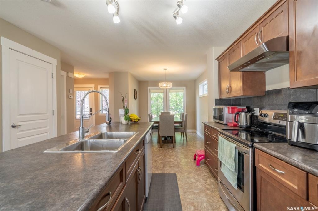Looking for a single-family home with a double garage and a finished basement in the Greens on Gardiner? Welcome to 3669 Green Bank Rd. This home boasts over 1300 square feet of functional living space, a double detached garage, and complete fencing and landscaping. Inside, a practical floor plan maximizes space. The main floor features a west-facing living room and an east-facing dining room flanking the open-concept kitchen. The kitchen includes stainless steel appliances, ample cabinetry, and a large island, all flooded with light from large windows. Upstairs, three good-size bedrooms feature newer carpet (2023), including a master with a 3-piece en suite. The finished basement offers a recreation room, space for a future kitchenette (rough-ins in place), and a laundry/mechanical room. Outside, enjoy a double garage, a spacious deck, a patio, and a newer lawn (redone in 2022).