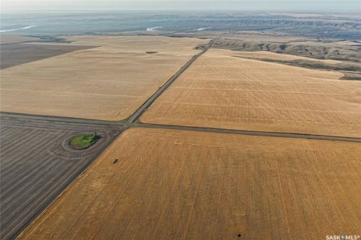 This package includes 17 quarters of grain land along the SK-AB border. There are 14 quarters located in Saskatchewan and 3 in Alberta. We have broken this land into two listings due to provincial regulations but both listings must sell together. MLS # SK019001 (listed at $7,850,000) must be sold together with MLS # A2254817 (listed at $850,000). Many of these fields are large multi quarter fields, making for ease of modern farming practices. The land has strong soil classifications and strong average assessed value. The soil is a mix of heavy clay, clay and clay loam. The SAMA stone rating is mostly “slight” or “none to few” and the SAMA topography rating is mostly “level to nearly level” and “gentle slopes”. Yard site in Saskatchewan with two Alcafab trailers and 40x80 shop. There is good all-season road access to the land.