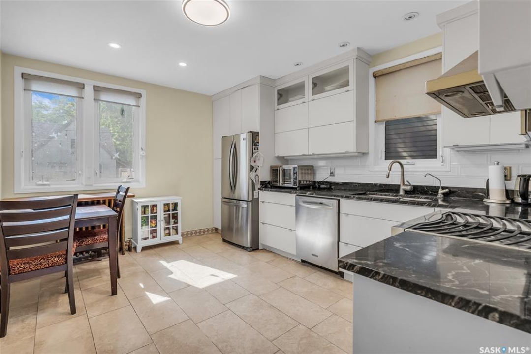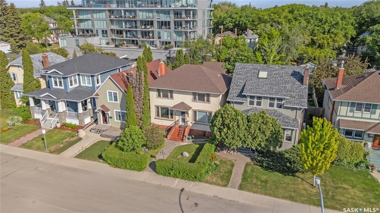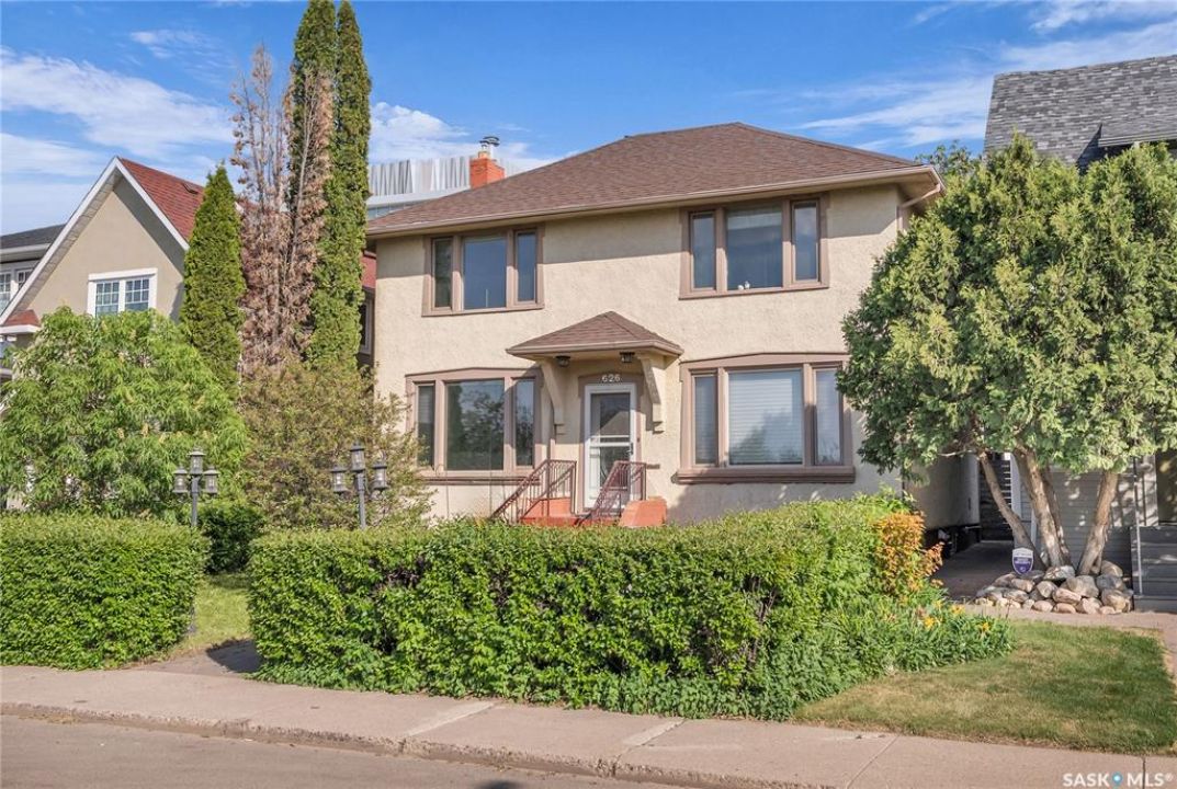 626 Saskatchewan Crescent East presents a unique opportunity at an attractive price point within a coveted neighborhood. The property boasts a spacious 37.2 x 140' lot and is conveniently located within walking distance to the popular Broadway attractions and Saskatoon amenities. The highlight of this turn-of-the-century home is its three bedrooms on the upper level, complemented by a charming second-floor balcony overlooking the beautifully landscaped zero-maintenance rear yard. The outdoor space features a patio stone area, pergola, and a double detached heated garage equipped with an EV charger. Additionally, a vaulted ceiling studio attached to the garage offers a versatile 50-foot space with in-floor heating. Inside the home, you'll find a well-appointed main floor featuring a functional kitchen with a gas range and exterior vented range hood, a spacious dining room, a comfortable living room with a gas fireplace, and a cozy library nook. The main floor is completed by a convenient three-piece bathroom. The basement level adds to the home's appeal with a large family room, a luxurious steam shower bathroom, a laundry room, and a mechanical room housing a boiler for in-floor heating and radiant heat throughout the house. Notable features include a brand-new hot water tank, superior cabinetry, hardwood floors, natural gas connections for the BBQ and heater, offering a blend of comfort, convenience, and modern amenities to create a welcoming and functional living space.