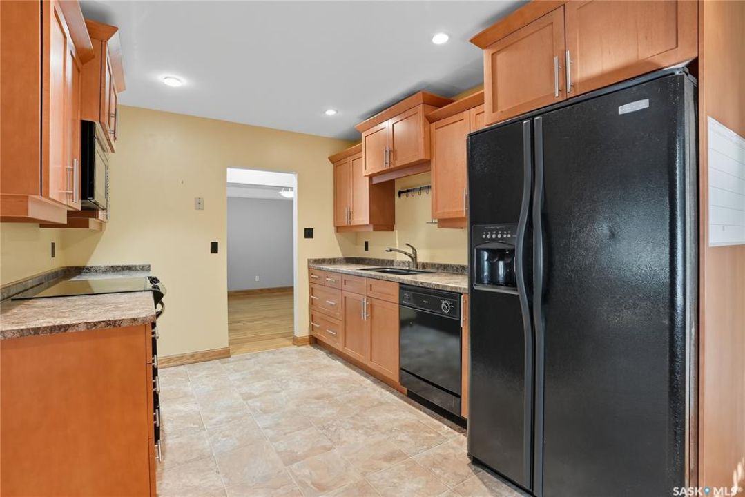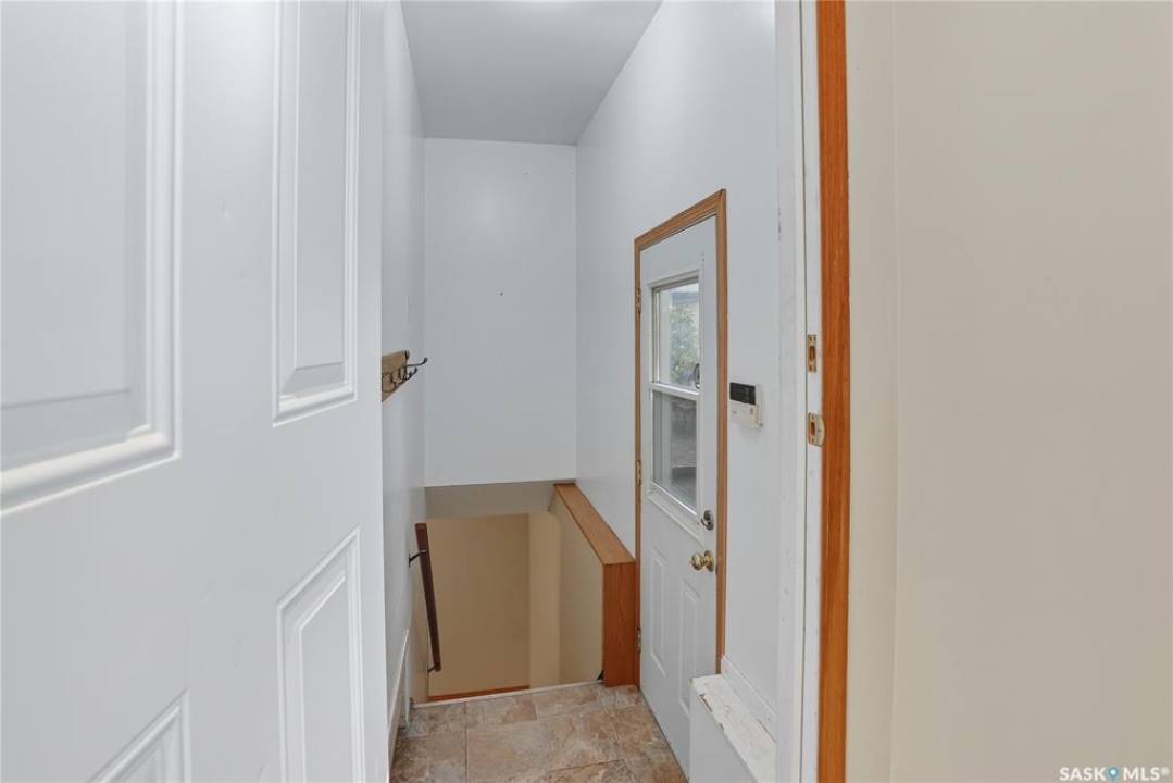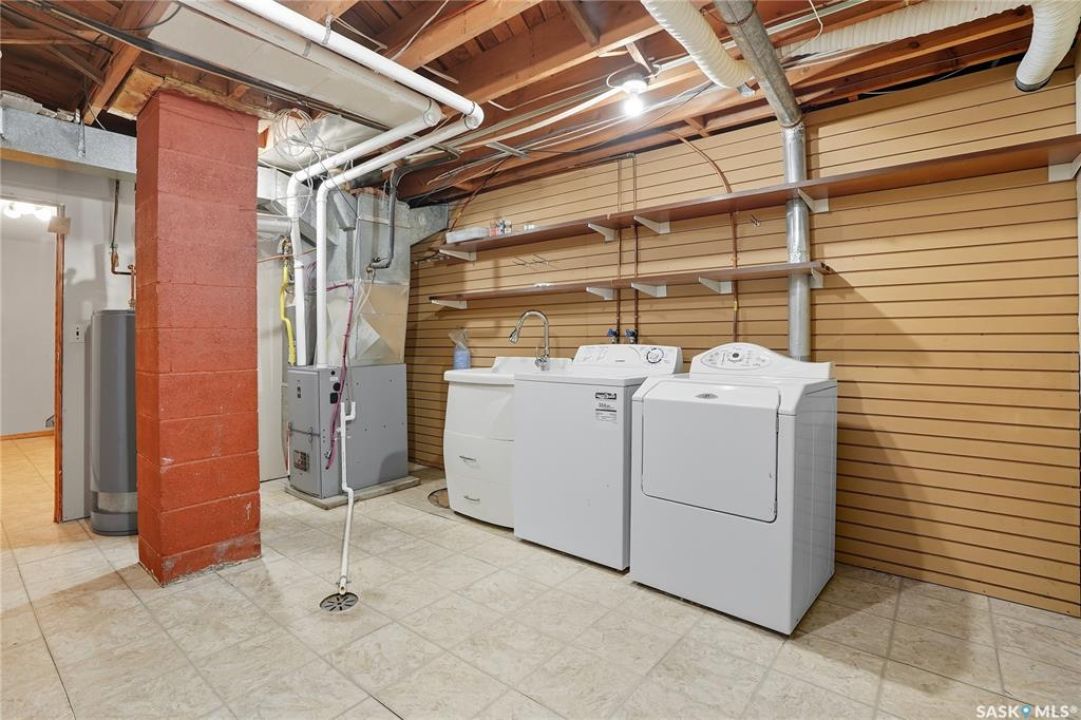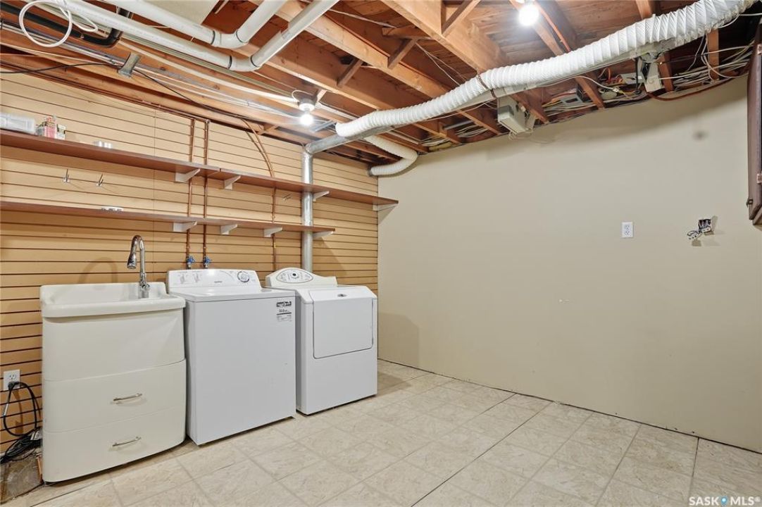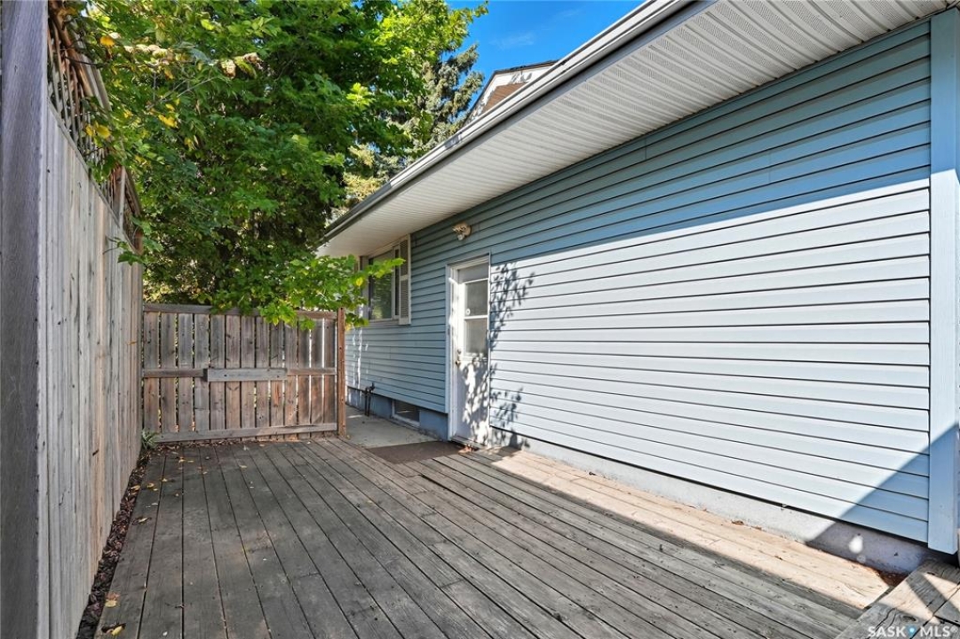 Charming Revenue Property in Sutherland – Updated & Move-In Ready! This beautifully maintained 1,034 sq ft revenue home is ideally located in the sought-after Sutherland neighborhood, offering excellent investment potential or a comfortable family home with a mortgage helper. Step inside to a bright and spacious living room at the front of the house, featuring large windows that flood the space with natural light. You'll love the warmth and character of the oak hardwood floors flowing through the living room, dining area, and both upstairs bedrooms. The remodeled kitchen includes a convenient breakfast bar with views out a large window—perfect for morning coffee or casual dining. The formal dining room could easily be converted into a third main-floor bedroom if desired. Downstairs, the large non-conforming suite with a separate entrance offers significant revenue potential. It includes a generous bedroom with a walk-in closet and a modern bathroom for added comfort. This home comes with important recent upgrades, including a newer furnace and water heater, giving you peace of mind and improved energy efficiency. Exterior features include vinyl siding, metal soffits and fascia, and back lane access with space for RV parking or a future additional garage. There's also a large storage shed attached to the garage for extra convenience. Located just minutes from the University of Saskatchewan, this home offers easy access to campus, public transit, parks, and local amenities.