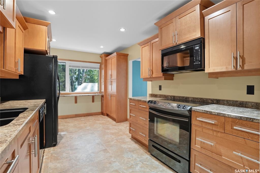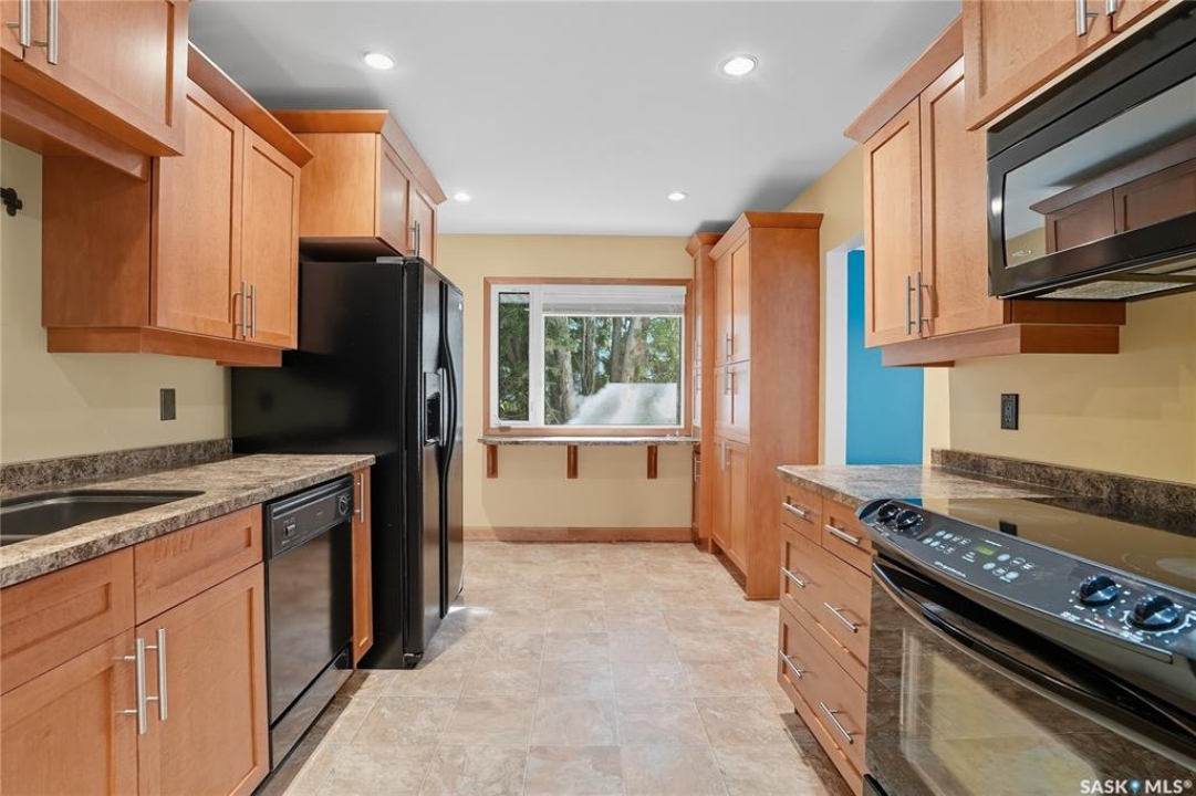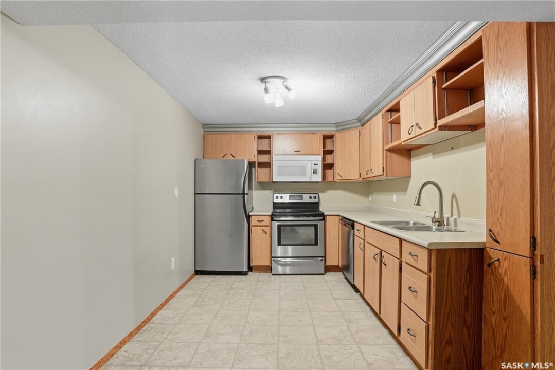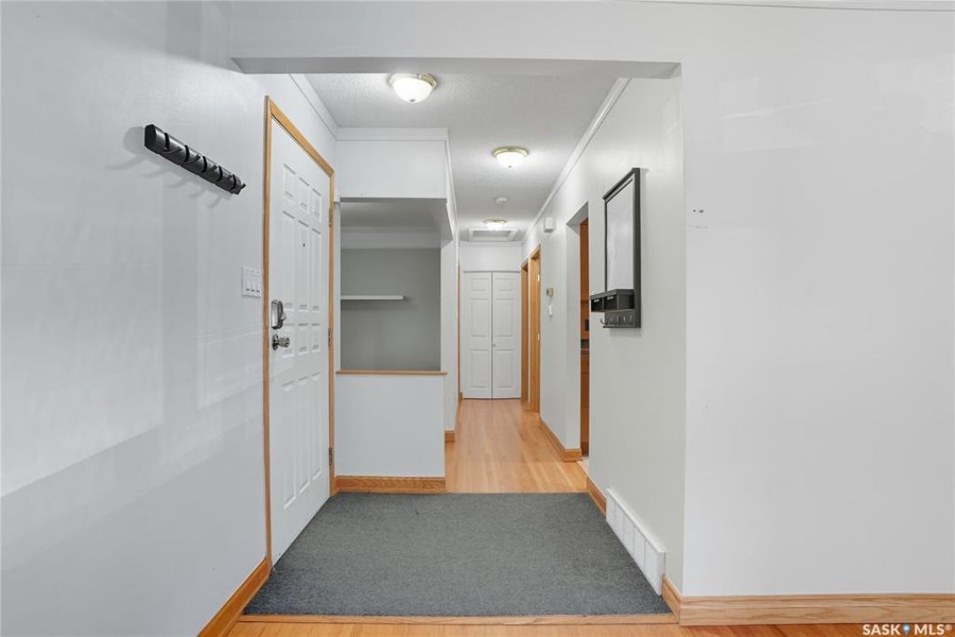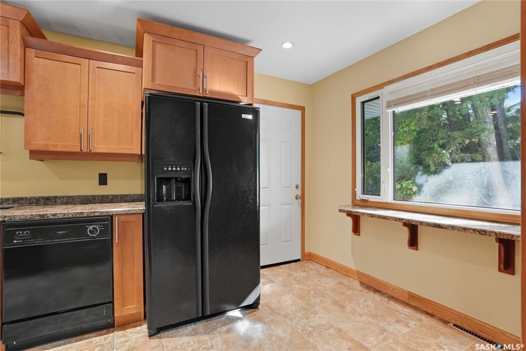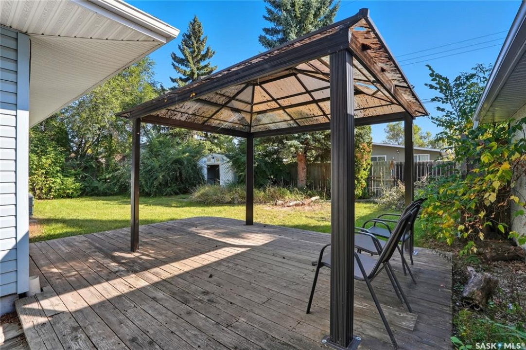 Charming Revenue Property in Sutherland – Updated & Move-In Ready! This beautifully maintained 1,034 sq ft revenue home is ideally located in the sought-after Sutherland neighborhood, offering excellent investment potential or a comfortable family home with a mortgage helper. Step inside to a bright and spacious living room at the front of the house, featuring large windows that flood the space with natural light. You'll love the warmth and character of the oak hardwood floors flowing through the living room, dining area, and both upstairs bedrooms. The remodeled kitchen includes a convenient breakfast bar with views out a large window—perfect for morning coffee or casual dining. The formal dining room could easily be converted into a third main-floor bedroom if desired. Downstairs, the large non-conforming suite with a separate entrance offers significant revenue potential. It includes a generous bedroom with a walk-in closet and a modern bathroom for added comfort. This home comes with important recent upgrades, including a newer furnace and water heater, giving you peace of mind and improved energy efficiency. Exterior features include vinyl siding, metal soffits and fascia, and back lane access with space for RV parking or a future additional garage. There's also a large storage shed attached to the garage for extra convenience. Located just minutes from the University of Saskatchewan, this home offers easy access to campus, public transit, parks, and local amenities.