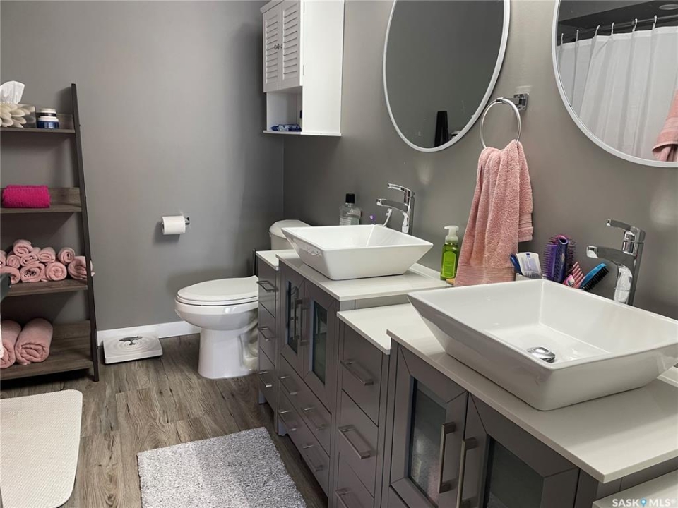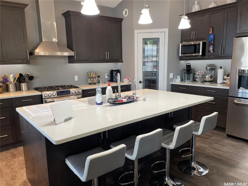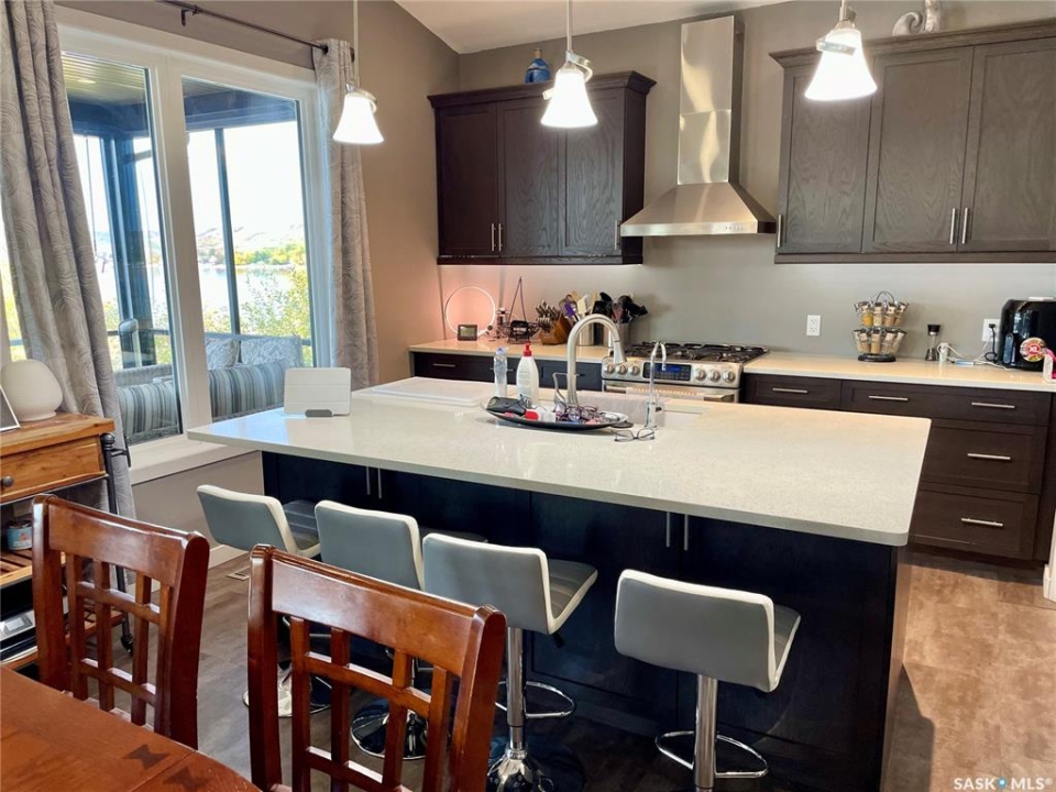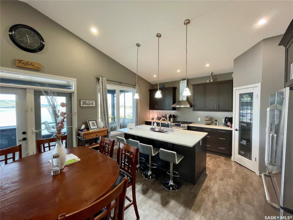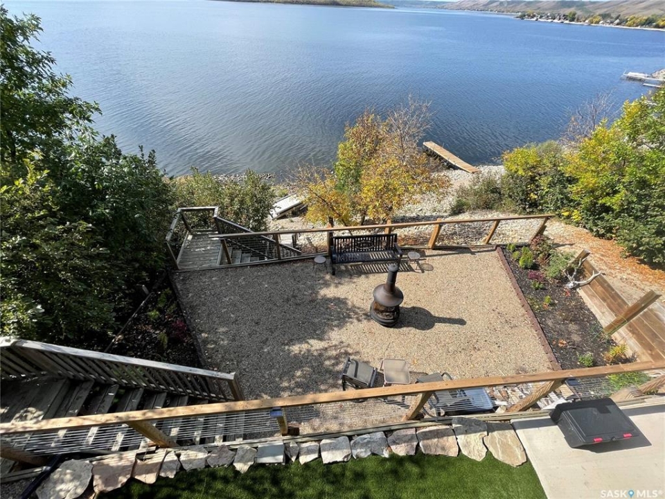 Welcome to 402 Abel Dr. located at Crooked Lake Sk. Don't let this one pass you by, you truly have to view to fully appreciate the layout and pride in ownership. ENJOY lake front living at its best year round with this beautiful walkout bungalow that offers approx. 1,996 sq. f. of total living space, that doesn't even include the huge double attached heated garage that feels more like part of the house then an actual garage (which has a 3 piece bathroom and laundry area). This open concept layout with its large island kitchen has breath taking views of the lake from one end to the other. There is 3 total bedrooms / 3 bathrooms, with the master suite on the walkout level. Outside this home there is numerous places to relax and enjoy the amazing lake views from the screened in sunroom off the main level or the hot tub and sitting area off the walkout level. Seller states the well is approx. 140-150 feet deep and septic tank 1000 gal.
