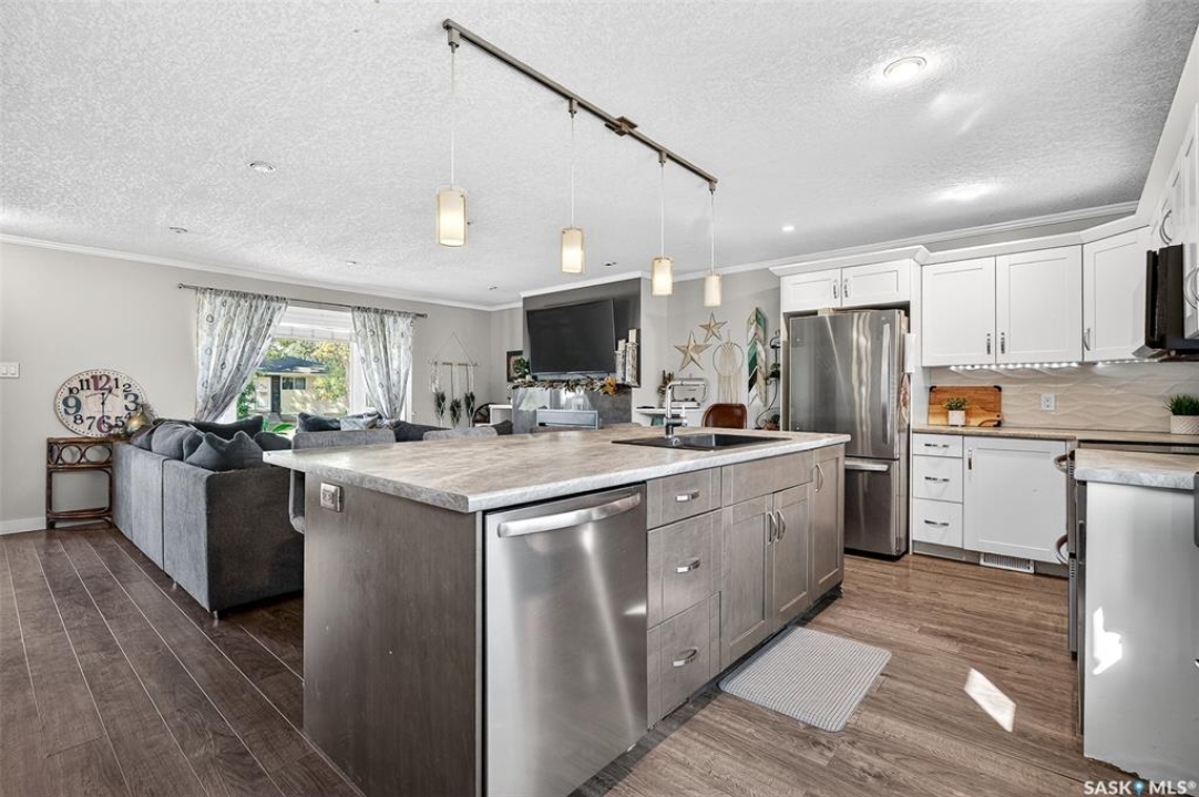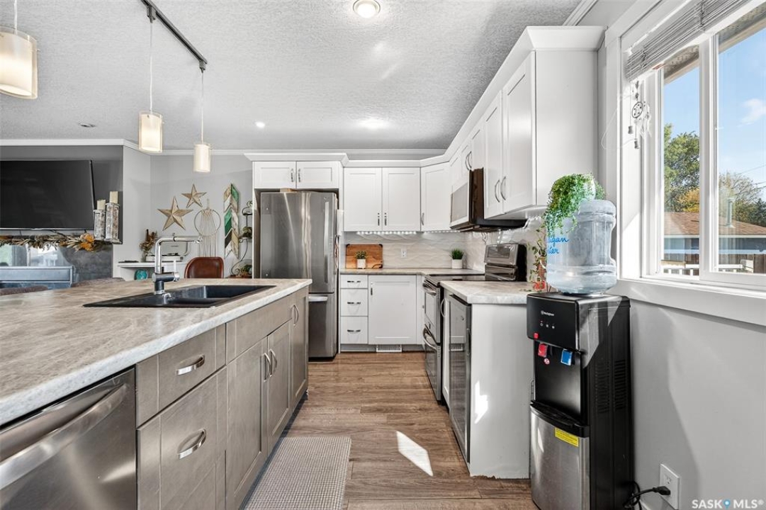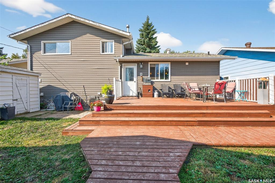 Welcome to this fantastic 4-level split located in one of the desirable Palliser Heights neighborhood! This beautifully upgraded home offers 3 spacious bedrooms, 3 bathrooms, and tons of thoughtful updates throughout. Every level of this home is fully finished, offering functional space for the whole family. The main floor features a stunning kitchen with modern finishes, a warm and inviting living room complete with a cozy gas fireplace, and direct access to the large back deck—perfect for relaxing or entertaining! Upstairs, you'll find three generously sized bedrooms and a huge 4-piece bathroom that includes excellent built-in storage. On the first lower level, large windows allow for tons of natural light in the spacious family room. This level also includes a 3-piece bathroom, a tidy and efficient laundry room, and a cozy office or craft area. The basement level provides even more usable space, including a great storage room, an efficient utility area with access to the crawl space (ideal for all your extra storage needs), and a den with adjoining family room that could easily be converted into a 4th bedroom if needed. This level is completed with a convenient 2-piece bathroom. Outside, enjoy a fully fenced yard with gated trailer parking, a nice-sized storage shed, and a huge deck. The 24'x26' heated double garage and additional off-street parking on the 2-car driveway out front make this home perfect for anyone needing space for vehicles, toys, or a workshop. This is a rare find that truly has it all — space, upgrades, parking, storage, and a great layout in an unbeatable location! Call your REALTOR ® today to book a private viewing!