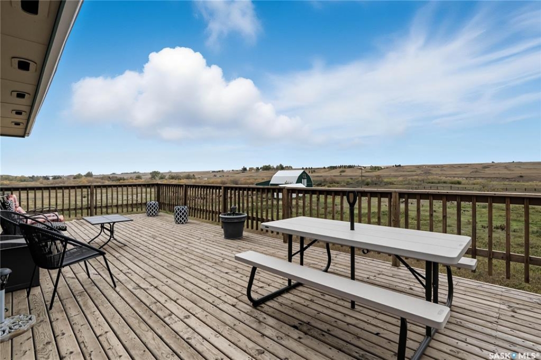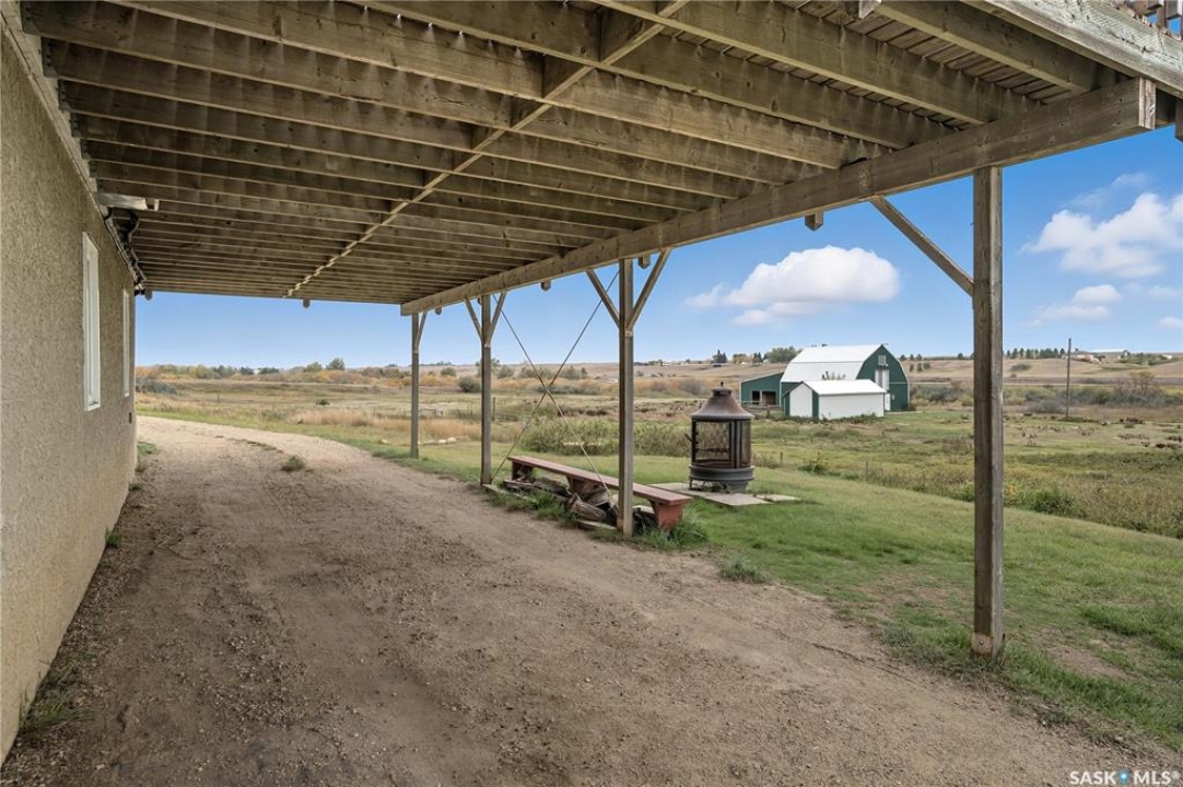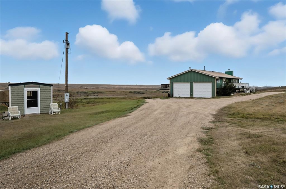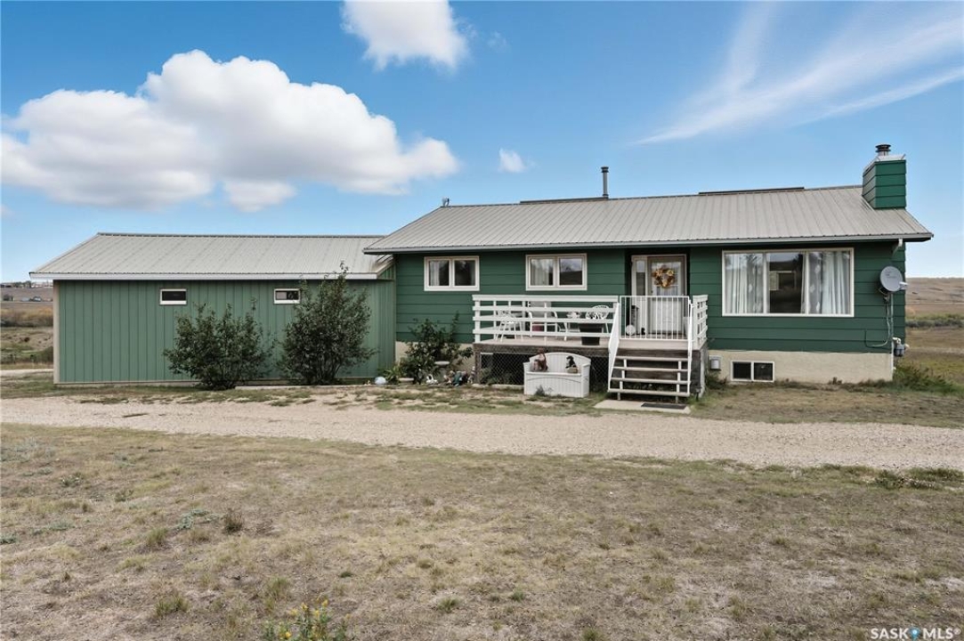 Exceptional Acreage Living – Just Minutes from Moose Jaw!! Discover the perfect blend of rural tranquility and modern convenience with this stunning 49.6-acre property, located only minutes east of Moose Jaw. Offering ample space and a thoughtfully designed home, this acreage is ideal for those seeking comfort, functionality, and the beauty of country living. This 1,334 sq. ft. bungalow features a spacious living room and an open-concept kitchen and dining area, creating a bright and welcoming layout. The home offers three comfortable bedrooms and three bathrooms, making it an ideal choice for family living, with a partially finished basement open for your design. Expansive north and south-facing decks provide the perfect setting to take in the prairie views, relax with your morning coffee, or host gatherings in every season. There is a 14 x 32 steel sided building perfect for all your storage needs down close to the barn. The Equestrian and hobby farm enthusiasts will appreciate the barn with six stalls, a fully usable loft area, attached horse shelter that are both sheeted with steel along with a large corral that was used in the past for outdoor riding arena. There is an automatic waterer at the barn along with a hydrant inside the barn to water all your animals. Acreage also offers endless potential for storage, livestock, or future development. A private well with sustainable water supply (and a filtration system), that you can use for your home yard and animals to complete this acreage's self-sufficient appeal. Whether you're looking for a family home with room to grow, a hobby farm, or simply the peace of the countryside within minutes of city amenities, this property delivers it all!! The exterior was painted last year.