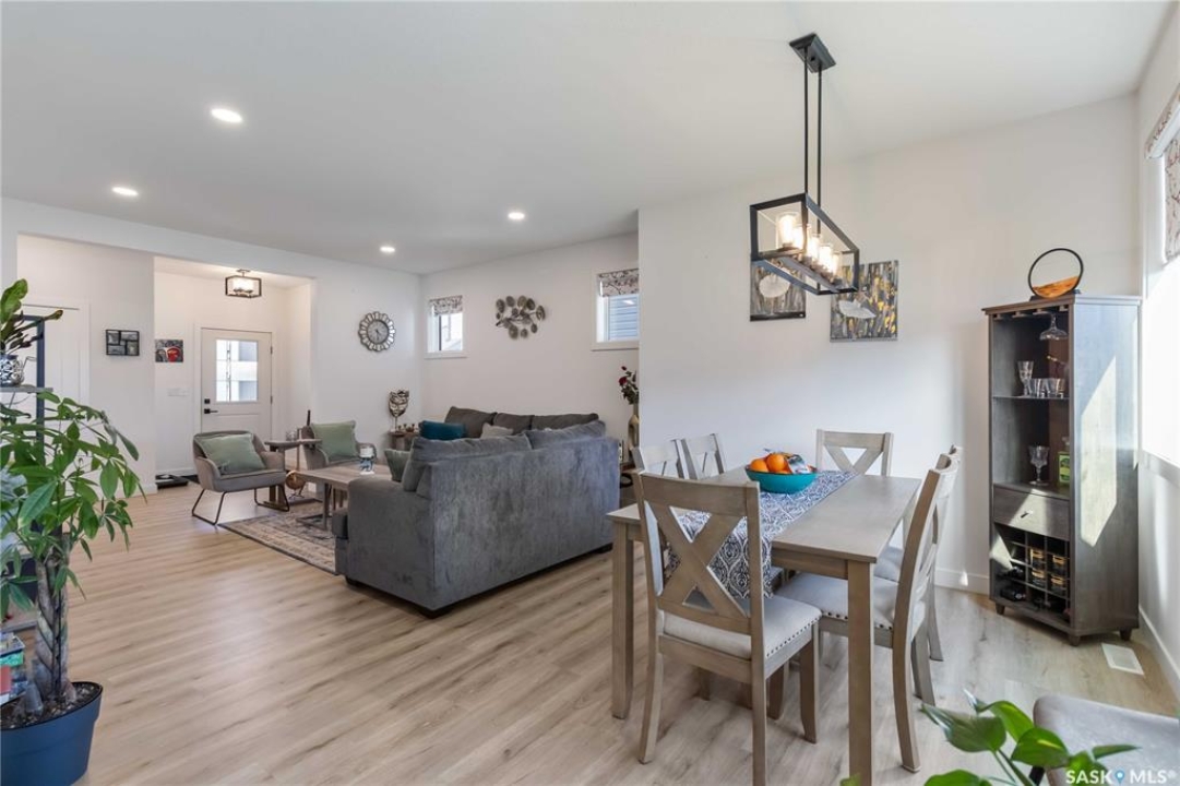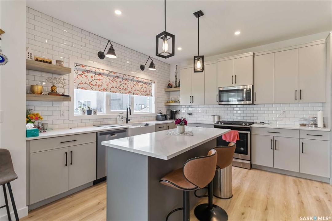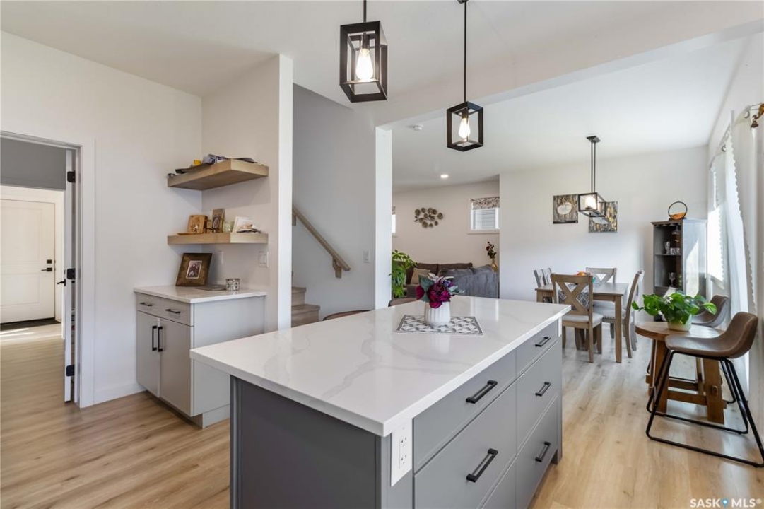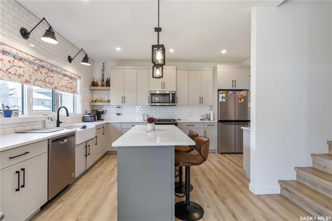 Discover this exceptional move-in-ready two-storey home, offering 1,805 sq. ft. of thoughtfully designed living space in the highly sought-after Aspen Ridge community. Crafted by trusted local builder Marco Developments Ltd., this residence combines modern design with everyday comfort. The main floor boasts a bright open-concept layout, featuring a stylish eat-in kitchen with quartz countertops, a spacious island, and a walk-through pantry with direct access to the heated double attached garage—ideal for a future butler's or spice kitchen. The living and dining areas are filled with natural light and enhanced by elegant, imported window coverings from the UK. Upstairs, the expansive primary suite offers a walk-in closet and a sleek 4-piece en-suite with a tiled standing shower. Two additional bedrooms and a full bathroom complete the upper level, providing ample space for a growing family or guests. The undeveloped basement presents an excellent opportunity to create a space tailored to your needs. Additional features include front yard landscaping, a concrete driveway, and a front sidewalk. Perfectly positioned near the peaceful Northeast Swale, scenic nature trails, and close to St. Nicholas Catholic School, this home delivers the best of both lifestyle and location.