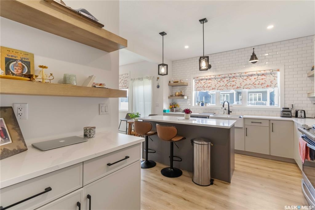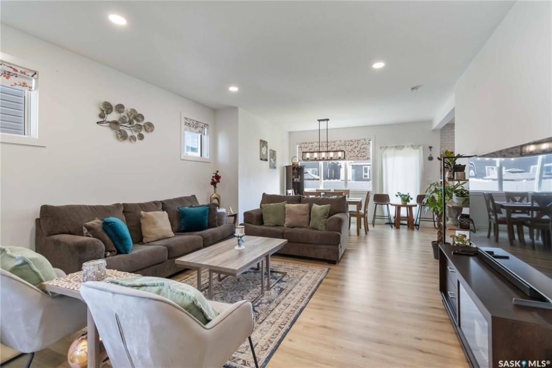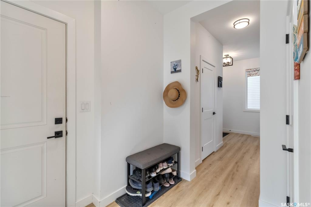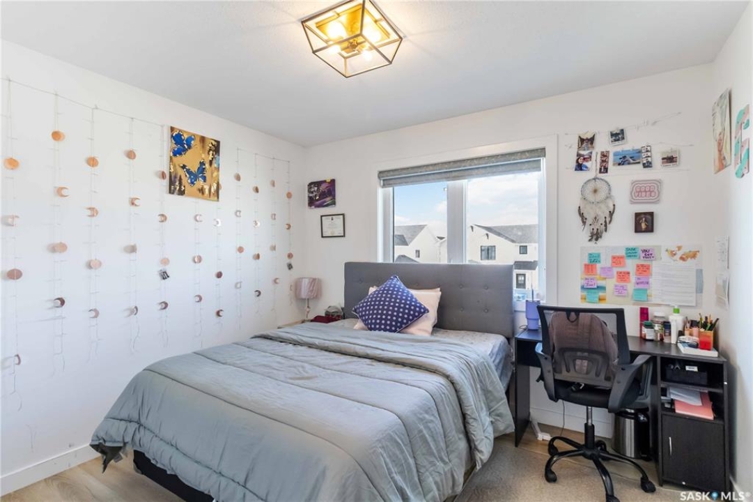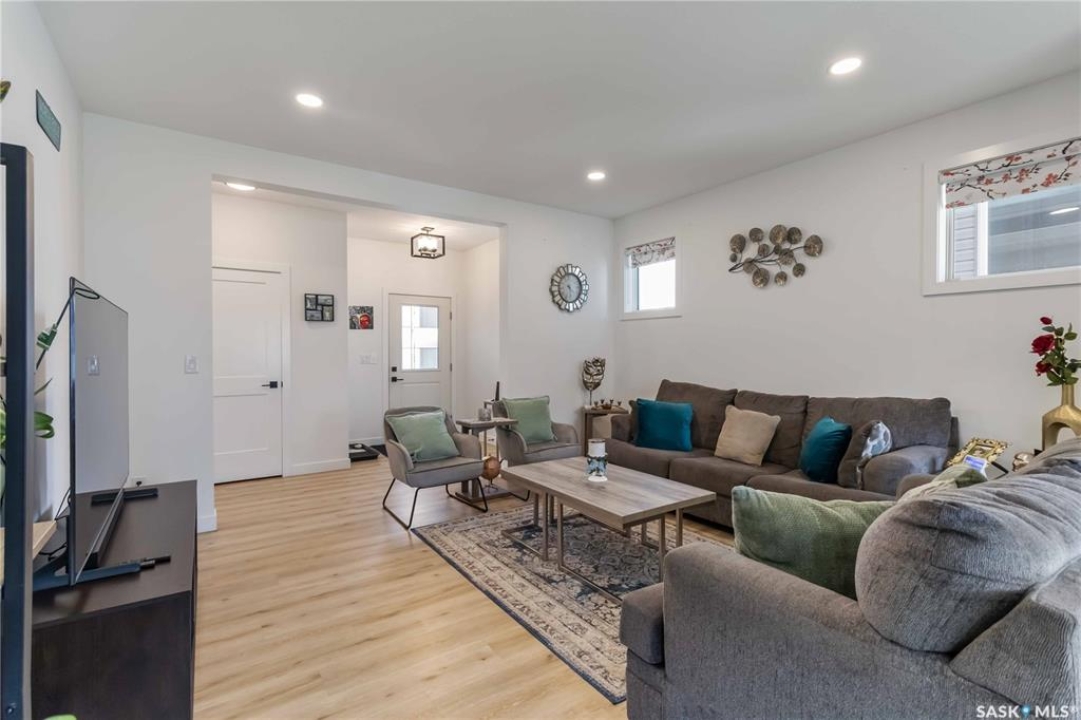 Discover this exceptional move-in-ready two-storey home, offering 1,805 sq. ft. of thoughtfully designed living space in the highly sought-after Aspen Ridge community. Crafted by trusted local builder Marco Developments Ltd., this residence combines modern design with everyday comfort. The main floor boasts a bright open-concept layout, featuring a stylish eat-in kitchen with quartz countertops, a spacious island, and a walk-through pantry with direct access to the heated double attached garage—ideal for a future butler's or spice kitchen. The living and dining areas are filled with natural light and enhanced by elegant, imported window coverings from the UK. Upstairs, the expansive primary suite offers a walk-in closet and a sleek 4-piece en-suite with a tiled standing shower. Two additional bedrooms and a full bathroom complete the upper level, providing ample space for a growing family or guests. The undeveloped basement presents an excellent opportunity to create a space tailored to your needs. Additional features include front yard landscaping, a concrete driveway, and a front sidewalk. Perfectly positioned near the peaceful Northeast Swale, scenic nature trails, and close to St. Nicholas Catholic School, this home delivers the best of both lifestyle and location.