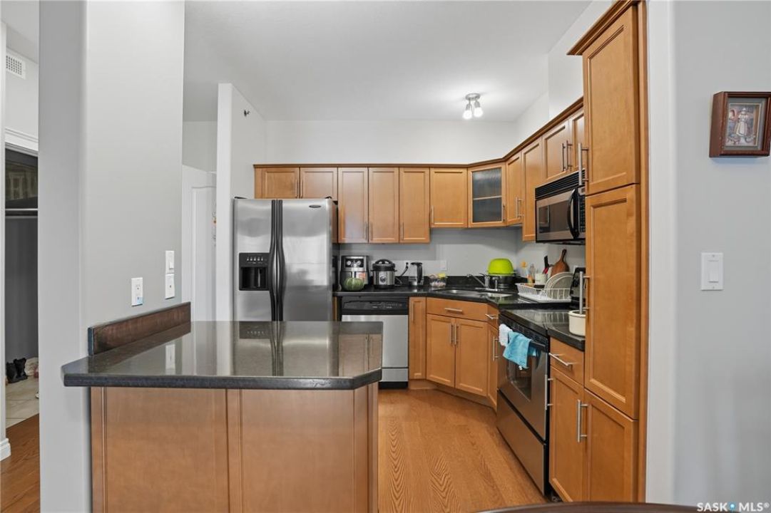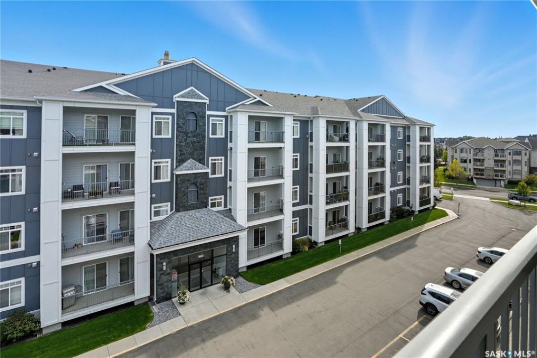 Prime location – 2-bedroom, 2-bath condo with underground parking. Welcome to Platinum Heights, one of the most sought-after condo communities in University Heights. Perfect for investors seeking strong cash flow, first-time buyers, or those looking to downsize! This quiet top-floor unit combines comfort and convenience, featuring 9-ft ceilings, in-floor heating for year-round comfort. The open-concept layout includes 2 spacious bedrooms, 2 full bathrooms, a modern kitchen with granite countertops and ample cabinetry, and a cozy living room with a gas fireplace. Heated underground parking with storage, along with generous visitor parking at the front of the building. Unbeatable location: steps from University Heights shopping district, including banks, restaurants, coffee shops, grocery stores, and the public library. Within walking distance to two high schools—without the congestion at their front doors—and public transit outside provides direct access to the University of Saskatchewan. Close to Willowgrove community garden, scenic parks and walking trails. Residents enjoy excellent amenities, including a fitness room, recreation lounge, and convenient car wash bay. Schedule your showing with your favorite realtor today!