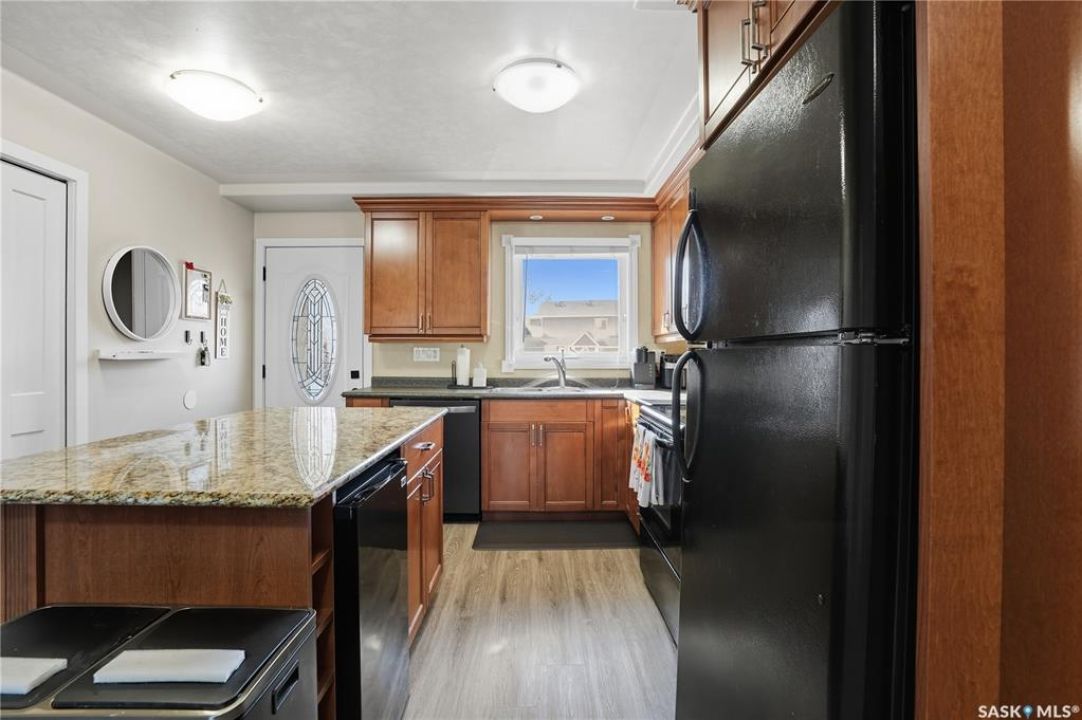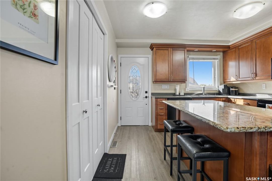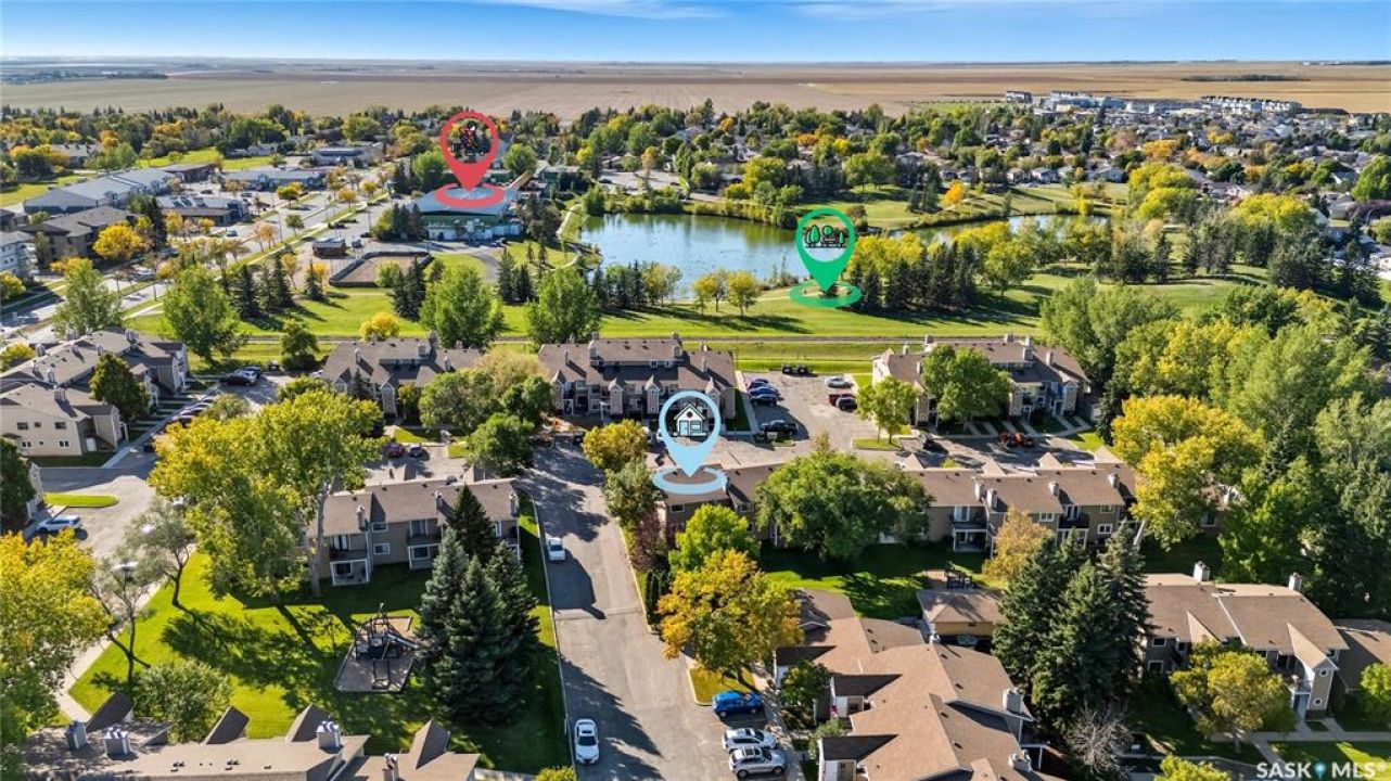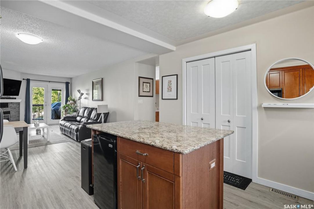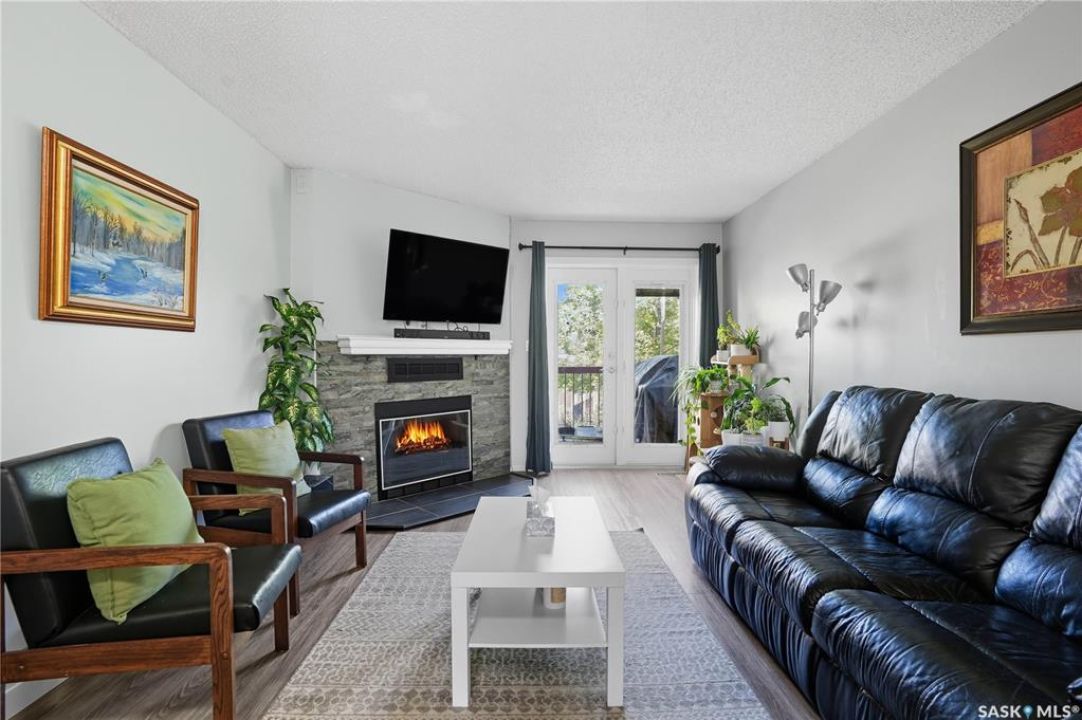 Welcome to this beautifully updated and move-in ready two-bedroom, one-bathroom upper-level condo in Cedar Meadow — a true hidden gem! Perfectly located within walking distance to schools, parks, walking paths, and all the amenities you need, this home combines convenience with comfort. Step inside and be greeted by a spacious, open-concept layout designed for both everyday living and entertaining. The stunning kitchen is a standout feature, boasting stone countertops, soft-close cabinetry, a central island perfect for meal prep, and an abundance of storage, including a built-in dining room cabinet. The kitchen is equipped with modern appliances — fridge, stove, built-in dishwasher, built-in microwave — plus a designated space for a wine fridge. The dining room flows seamlessly into the inviting living room, where a charming decorative fireplace adds warmth and character. From here, large windows and a sliding door lead to your private balcony with peaceful views of the green space and play structure — the perfect spot to relax with your morning coffee or unwind at the end of the day. Both bedrooms are generously sized, with the primary offering the bonus of double closets for ample storage. The unit also includes the convenience of in-suite laundry. An additional highlight is the maintenance-free furnace and air conditioner, both owned and serviced by the condo association, giving you peace of mind year-round. Enjoy one electrified parking stall included with the condo, plus additional storage off the deck. Need more parking? A second stall can be rented seasonally at an affordable rate. This rare Cedar Meadow condo truly has it all — a functional floor plan, stylish updates, and a welcoming community in an unbeatable location. Don't miss your opportunity to call this one-of-a-kind property home!
