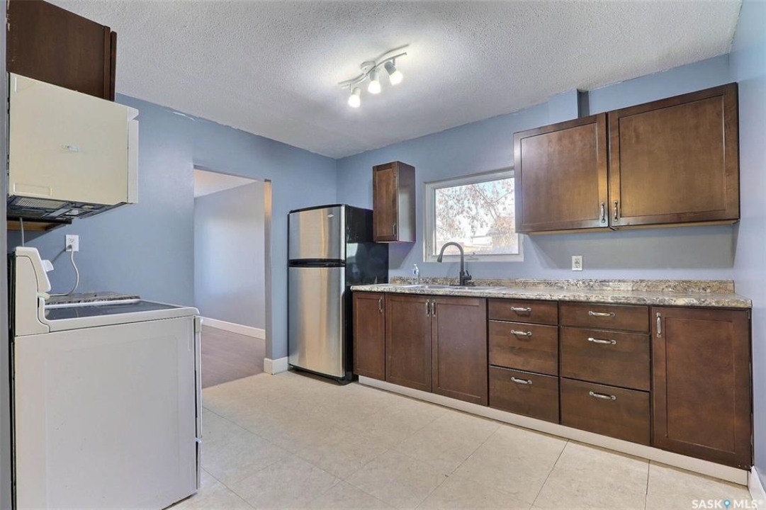 Move-in ready 3 bedroom, 2 bathroom 4-level split built in 1942 with 924 sqft. This home offers excellent value at an affordable price point with a modern kitchen, updated bath, and fresh finishes throughout The fully fenced yard provides privacy and space for outdoor enjoyment. Inside, you'll find a nicely sized kitchen with dark cabinetry and a convenient main floor laundry room that also has extra space to serve as a mudroom. The main level also includes a bedroom and full bathroom, while the upper level features 2 additional bedrooms and a 3-piece bath. The two lower levels are complete with a spacious rec room and utility room offering additional storage. Major updates include new high-efficiency furnace and hot water heater (2023 as well as a full renovation in 2015 including new siding, shingles, deck, windows, flooring, kitchen cupboards, bath tub, and vanity. With these thoughtful updates throughout, this property makes a great starter home or revenue property at a budget-friendly price.