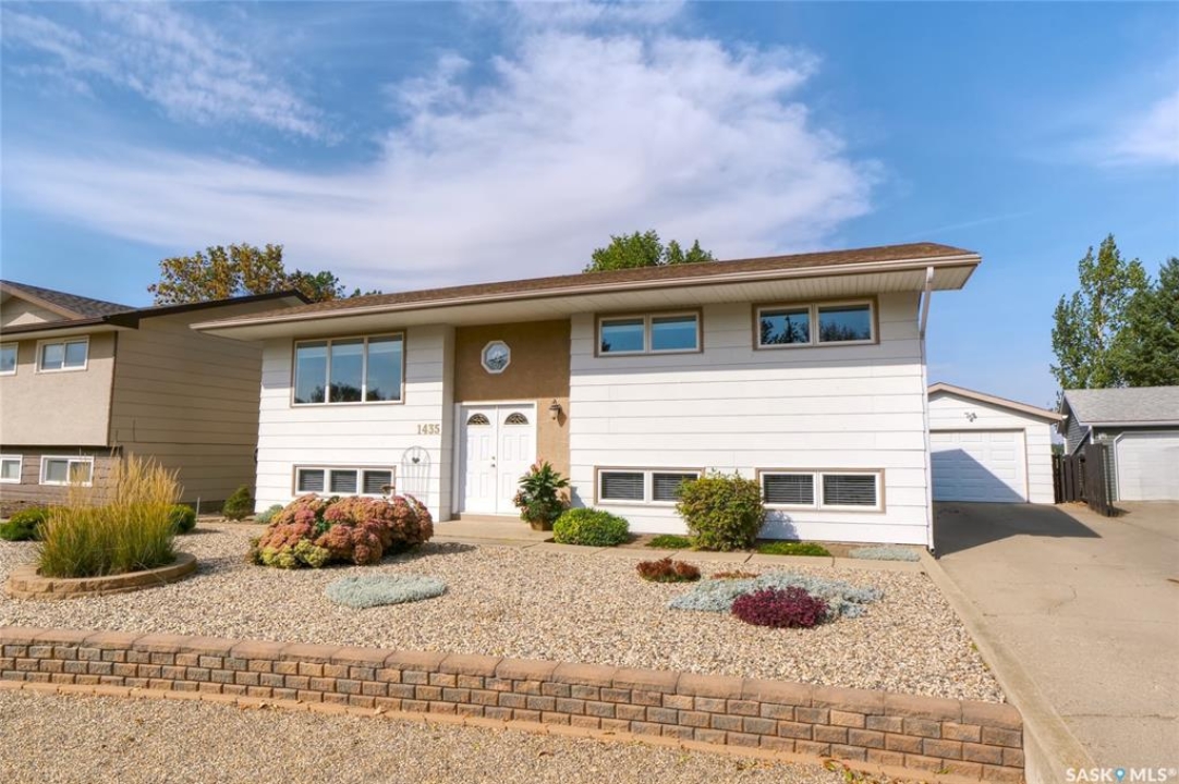 You and your family will love to come home to 1435 Sioux Crescent! Beautifully presented in every way, this spacious bi-level home will appeal to discerning Buyers, offering a move-in-ready home in a great location! The spacious, south-facing living room flows to a gorgeous custom-designed kitchen with quartz countertops, a large island with seating, a gas range, an attached bistro table, plus beautiful views as you step onto the deck! Stepping down the hall, we find a beautiful bath with a jet tub & more custom cabinetry! Across the hall a bedroom has been set up with a built-in desk! The primary bedroom has a 2-piece en-suite, of course! Another spacious bedroom completes the level! Downstairs, you will love the fully finished, natural light-filled space! A large family room for casual entertainment with a games nook is perfect for your family! There are 2 more large bedrooms, & yet another full bath! The laundry/utility room plus storage area complete the lower level! Outdoor lifestyle is amazing with the backyard deck with natural gas BBQ hook-up that steps to a large patio space, fenced, & lovely landscaping, plus beautiful views to enjoy! Yes, there is a garage with an insulated workspace (the generator located in the garage is included!). Just a few features include: xeriscaped front yard, shed, C/A, C/V, Water Softener, UGS in backyard, fenced backyard, 19X22 garage, Air Exchanger, 5 bedrooms, 3 baths, over 1075 sq/ft on main floor, fully finished lower level, updated kitchen & baths, updated windows, lighting, flooring,...too many to list! Be sure to view the 3D scan of the great floor plan & 360s of the outdoor spaces! Defining an immaculate presentation, this is a must see home!