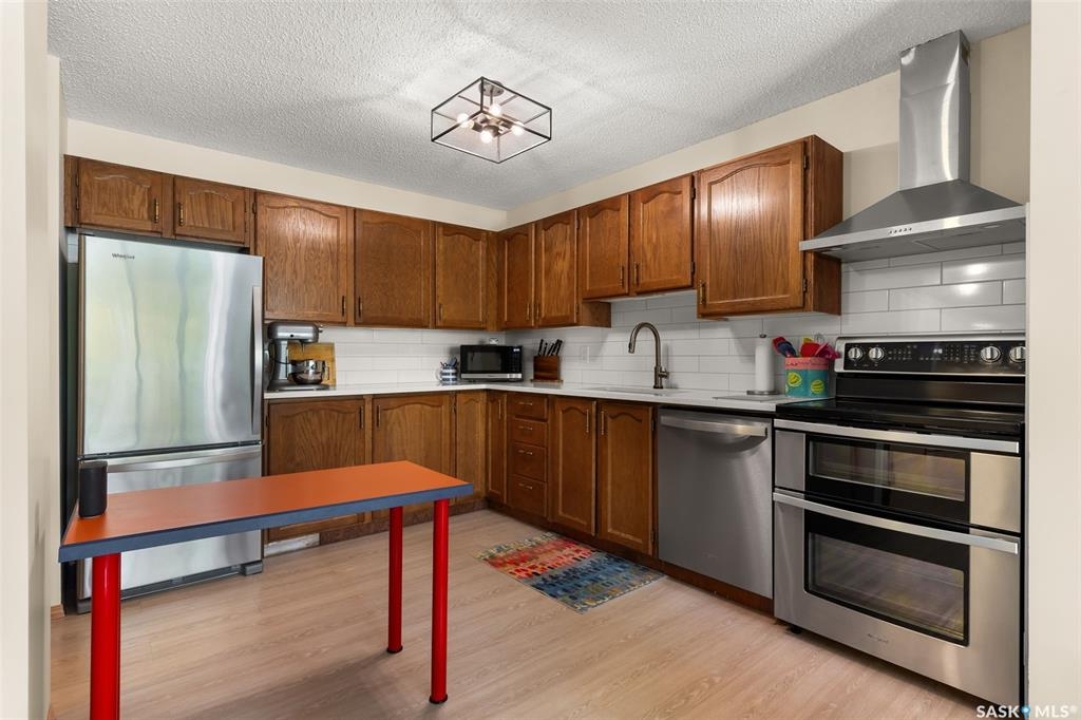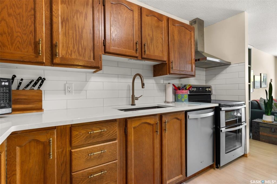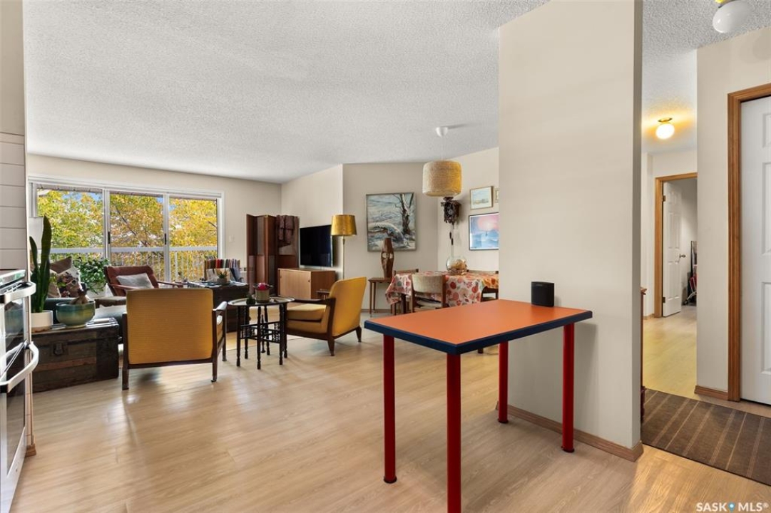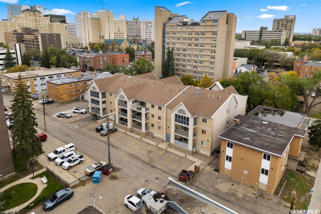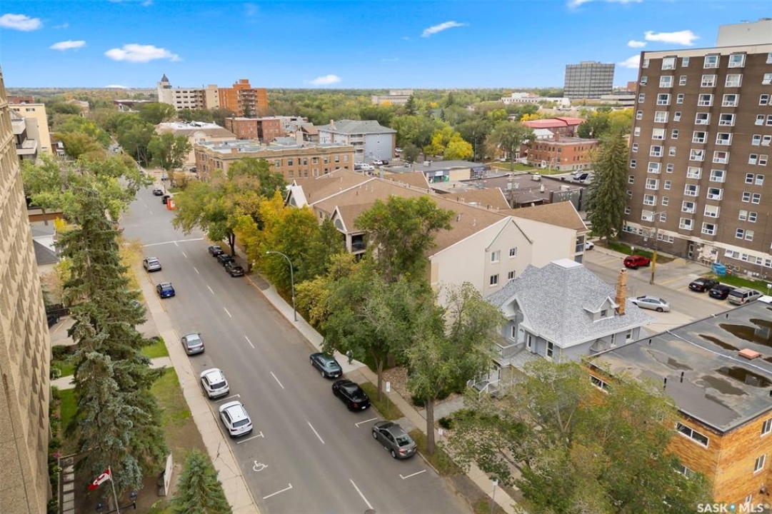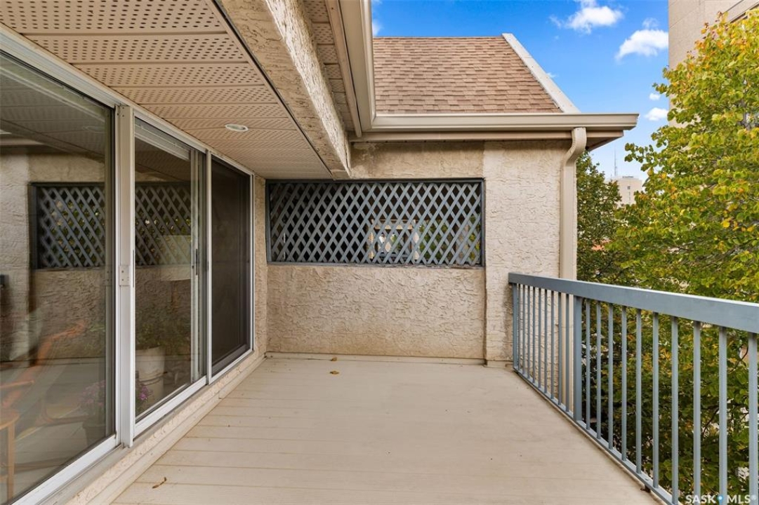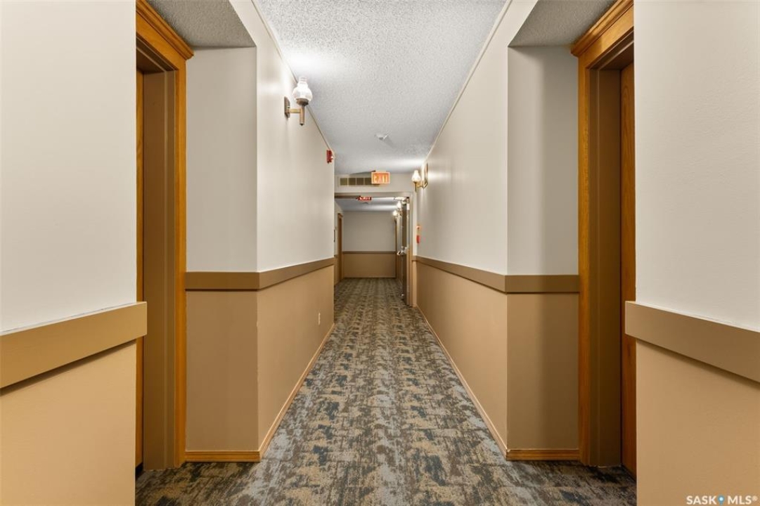 Welcome to this beautifully updated top-floor condo in the Royal Court Complex, ideally situated in the heart of downtown. Facing the front of the building, this spacious two-bedroom, two-bathroom unit offers an open-concept layout with modern finishes throughout. The renovated kitchen features quartz countertops, a tile backsplash, upgraded LED lighting, a touchless under-mount sink, and high-end stainless steel appliances including a fridge, stove, built-in dishwasher, and hood fan. It flows seamlessly into a generous dining area with a large window and a bright living room with patio doors leading to an expansive balcony. Both bedrooms are generously sized, with the primary suite offering a walk-in closet and a private two-piece ensuite. The main four-piece bathroom is equally spacious and has been tastefully updated with granite vanities and new fixtures. Additional highlights include luxury vinyl plank flooring, fresh paint, roll-out shelves, a lazy Susan, and in-suite laundry with washer and dryer included. This well-maintained building features a recently upgraded boiler and elevator, heated underground parking, an amenities room complete with a lounge and bar area. Condo fees cover heat, water, garbage removal, common area maintenance, building insurance, and reserve fund contributions. Visitor parking is available at the rear of the building, and while pets are not permitted, the location offers unbeatable access to all downtown amenities just a short walk away. contact your Realtor today to book your showing.