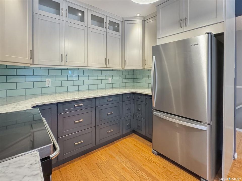 Welcome to a Westside gem offering both comfort and convenience. Perfectly positioned near schools and the scenic Territorial trail, this home combines modern updates with timeless charm. This 3 bedroom 3 bathroom home is designed with a family in mind. The master bedroom features a walk through closet to the 2-pc ensuite. A renovated kitchen with soft close cupboards and island(2019) opens to a light-filled family room addition where a gas fireplace sets the tone for cozy evenings. The Floor to ceiling windows add ample natural light while giving you a panoramic view of the beautifully landscaped back yard. Hardwood floors, an upgraded bathroom (2023), and main floor laundry bring ease to daily living, while a formal living room provides extra space for hosting. With upgrades like a new water heater (2023), garage shingles (2024), improved attic ventilation, plus updated windows, doors, and blinds, you can simply move in and enjoy. Central air (2022) and central vac are thoughtful extras. The finished basement expands your living options with a roomy rec space, 3-piece bath, and multiple flex rooms for hobbies, a gym or work. Step outside to discover mature trees, underground sprinklers, a sunny patio, and a double detached garage with alley access. A well-cared-for home in a neighborhood you'll love. Don't miss out, call today for a private showing.