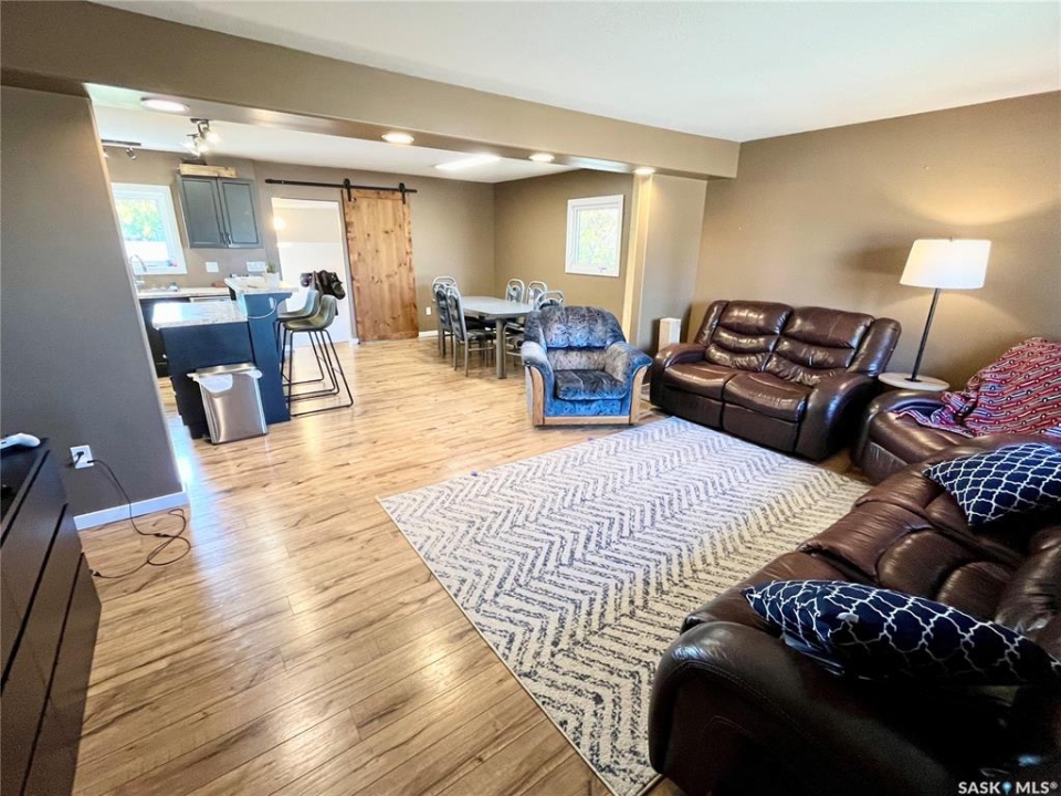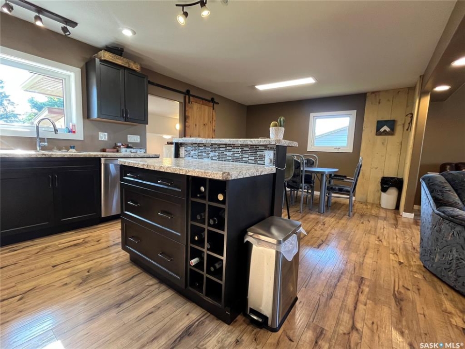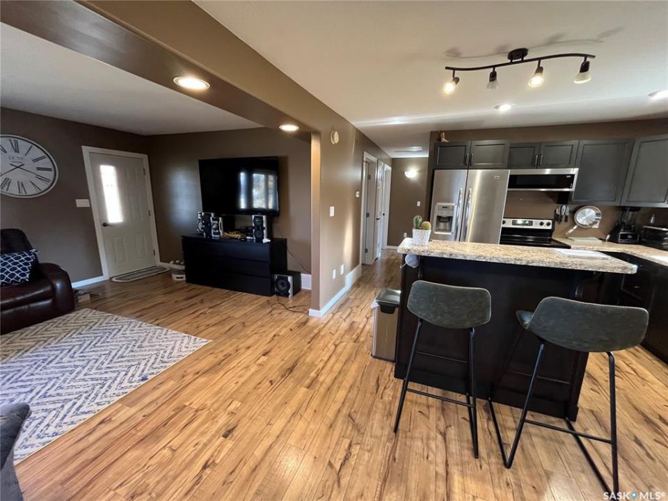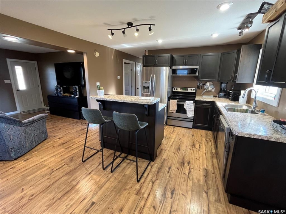 232 5th Ave. W. – Immaculate Bungalow on a Double Lot! Welcome to this beautifully maintained 1,114 sq. ft. open-concept bungalow that is move-in ready and filled with updates. Step inside to find bright, airy living spaces with consistent vinyl plank flooring throughout. The modernized kitchen features a breakfast island with built-in wine rack, sleek stainless steel appliances (2020), and ample lighting. The main floor includes a spacious primary bedroom with his & her closets, a comfortable second bedroom with unique detailing, and a versatile den/office that could also serve as a great butler's pantry. A well-appointed 4-piece bathroom with a large soaker tub, and at the rear a generous porch doubles as a convenient laundry space with a stackable washer and dryer. The basement is framed, insulated, and fitted with subfloor, giving new owners a head start to customize and finish to their taste. Outside, a massive, well-kept backyard, perfect for entertaining or relaxing. A double concrete driveway and patio (poured in 2022) provide plenty of parking and outdoor living space. The oversized single detached garage is partially insulated and finished with plywood. Recent updates and features include: Newer windows (2020), Siding, soffit & fascia (2020), shingles(2020) Garage door opener (2023), garage eves (2023), Central air conditioning, RV parking, microwave hood fan (2023). This property checks all the boxes: priced right, well-kept, updated, and ready for its new owners!