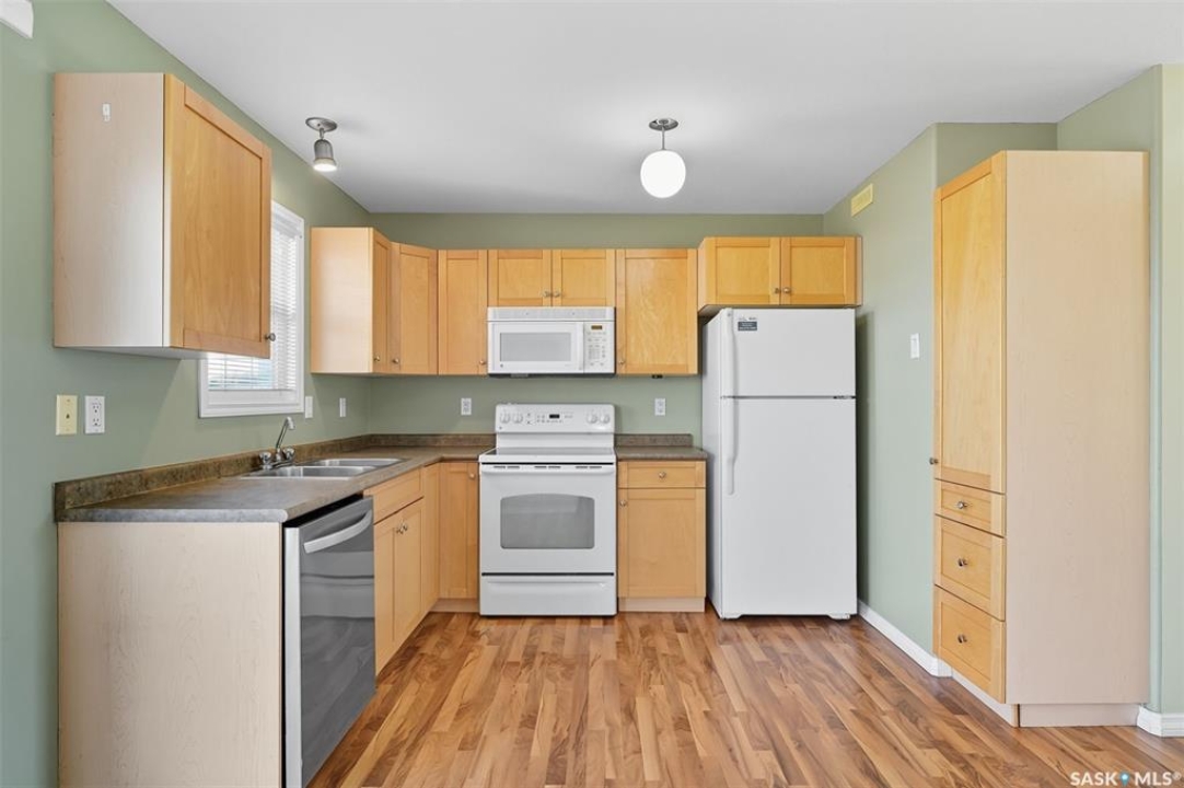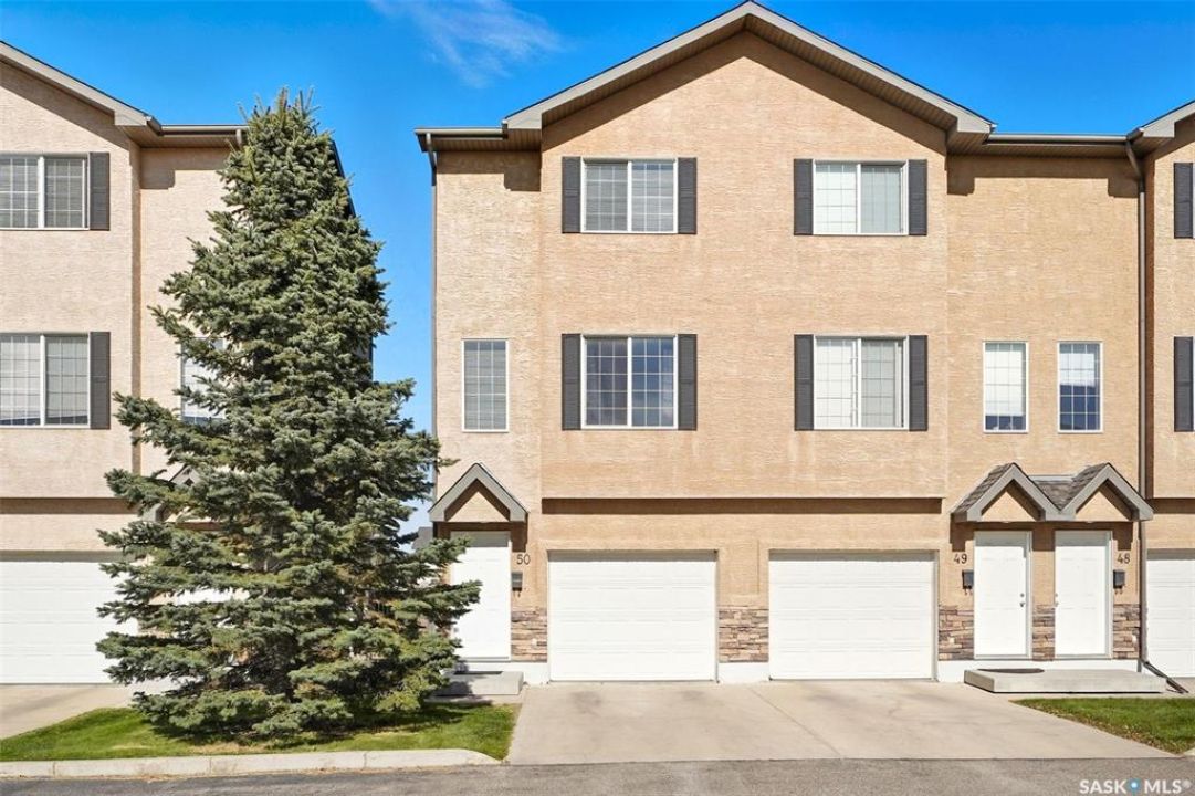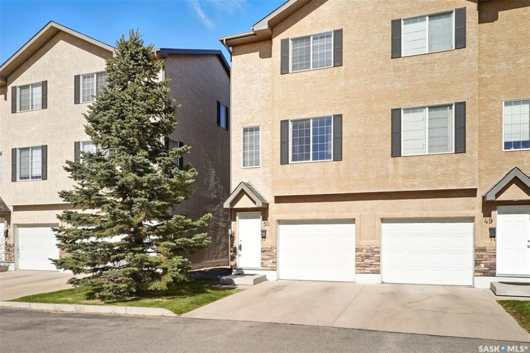 Welcome to 50-118 Pawlychenko Lane, a very well-maintained end-unit townhome offering a functional layout, thoughtful updates, and a convenient location close to all area amenities, close to bus stops, and easy access to 8th Street. With the convenience of an attached garage, you'll appreciate warmer starts and easier routines throughout our Sask winters. Off the garage, you'll find a fully finished flex room, perfectly suited as a home office, workout/yoga space, or additional storage area. The second floor features a bright kitchen and dining area - you'll love the extra windows that a corner unit provides. Adjacent to the kitchen and dining area opens onto a balcony that provides an ideal spot for morning coffee, grilling, or evening relaxation. The spacious living room with large south-facing windows also fills the space with natural light. This level also hosts a 2 piece bath for added convenience and comfort. Upstairs, you'll find two comfortably sized bedrooms, a four-piece bathroom, and convenient laundry, now complete with a brand-new washer and dryer in 2024. Notable upgrades include a new air conditioning unit in 2022, recently cleaned furnace ducts, and central vacuum. This home is move-in ready, and an excellent opportunity for those seeking comfort, functionality, and value in a desirable community.