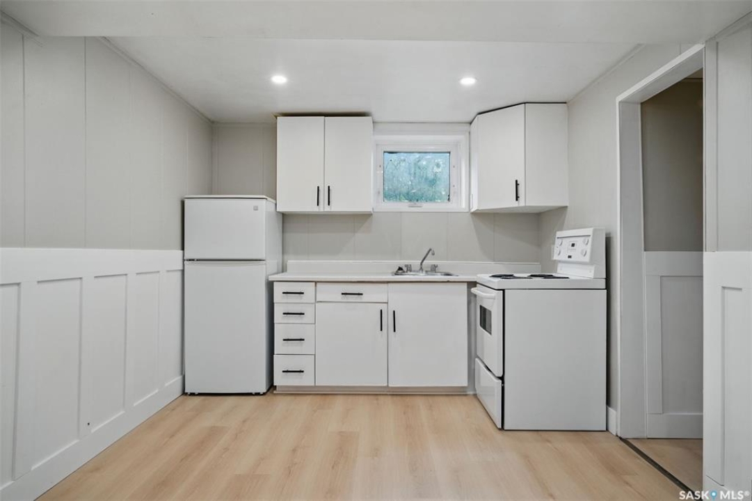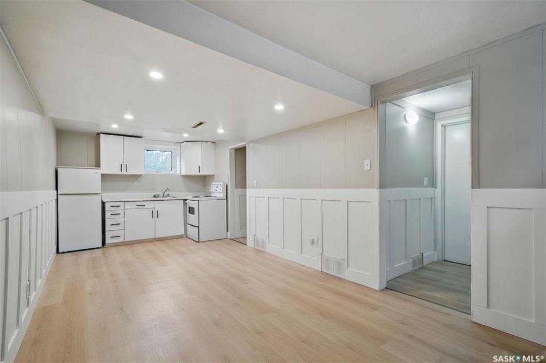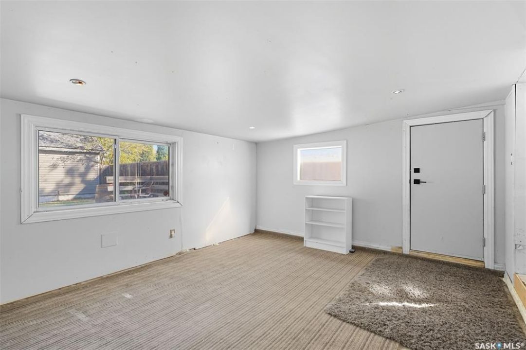Welcome to this great starter bungalow home or revenue property for sale located in the Exhibition area. This bungalow has to offer 2 bedrooms and 4pc bathroom, kitchen and living room on the main floor. Downstairs basement is equipped with newly updated one bedroom suite. Permit # 2115/01 for basement suite. The double detached garage is insulated and heated with separate heated office area. The backyard is fenced with nice sized deck. This property is located on corner lot(50 x 125 Lot) and R2 zoning. Close to all amenities. Garage is 12 X 20 feet. Property has recently had new flooring, baseboards and paint throughout the property.