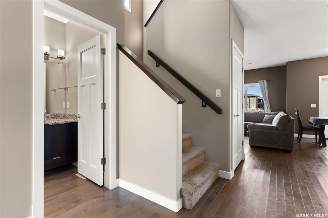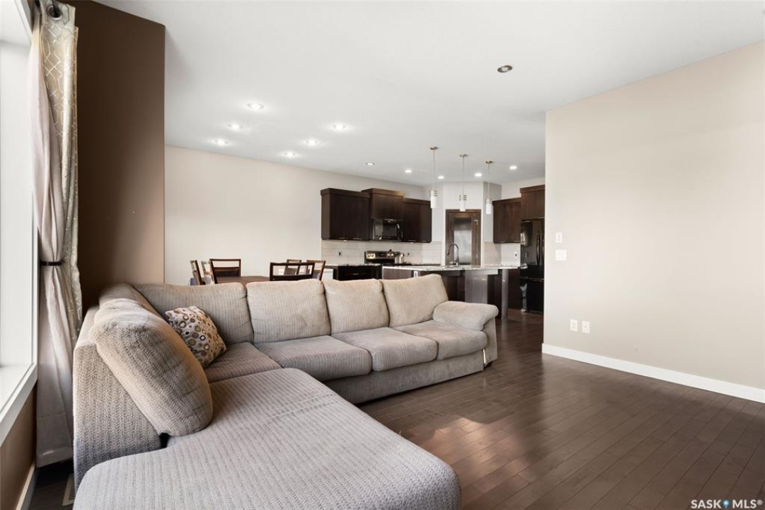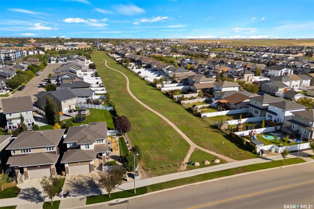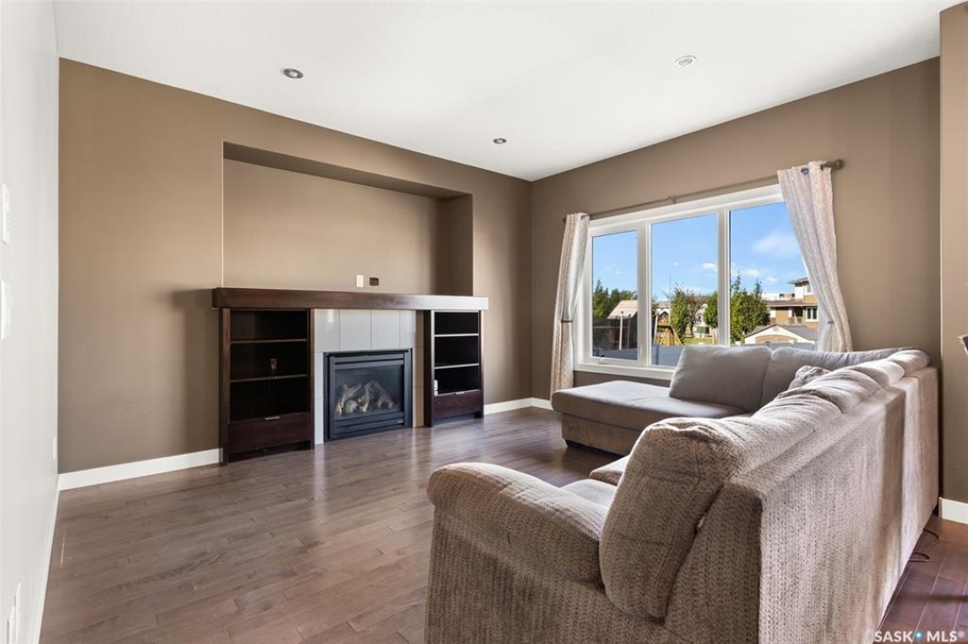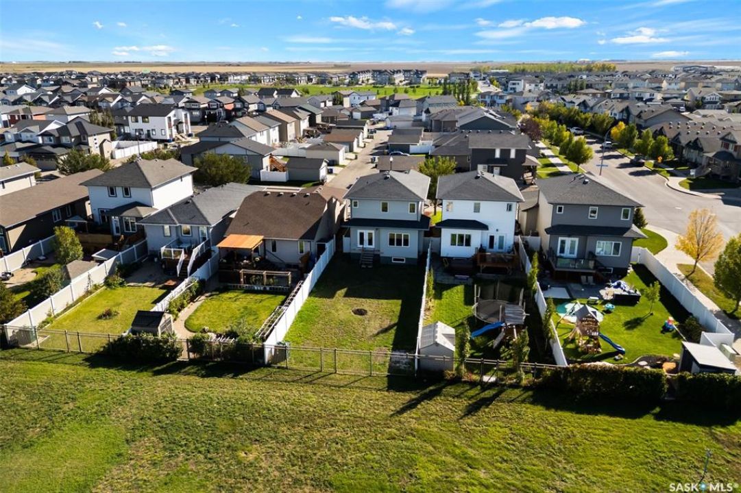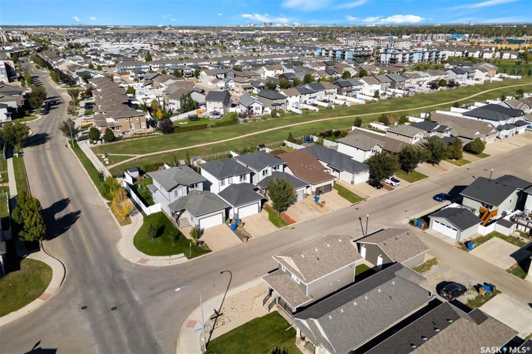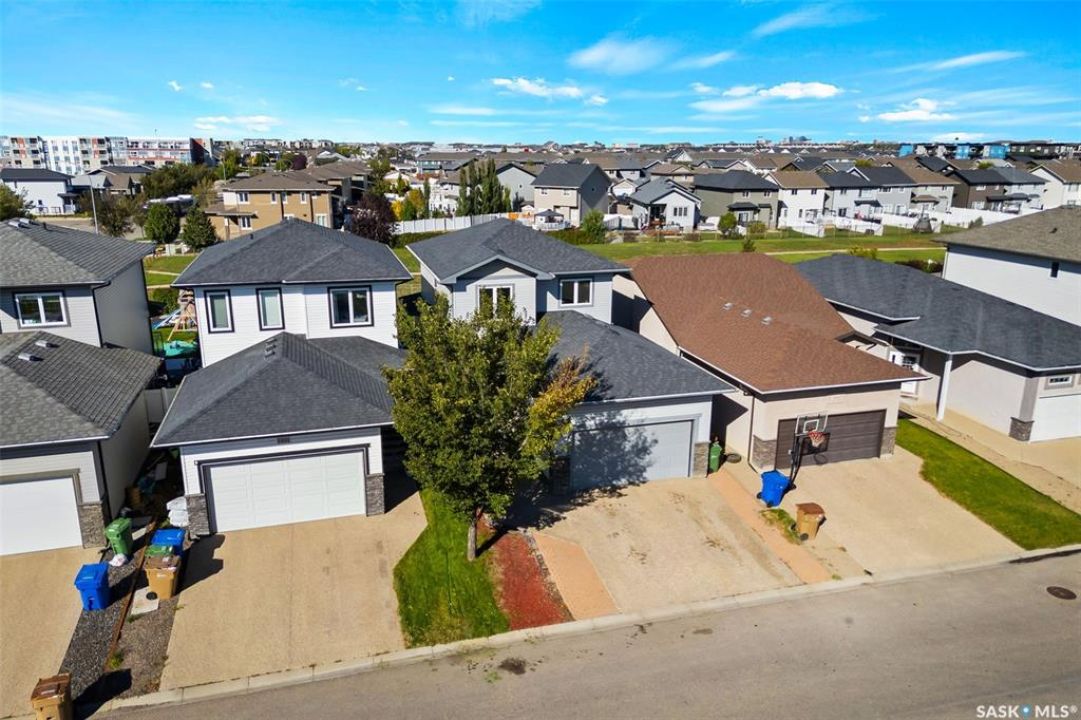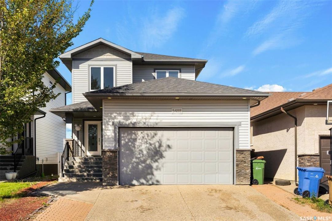 Welcome home to 5488 Aerial Crescent in our Harbour Landing neighbourhood in Regina SK! Buying a home is a lot like dating: Much like finding the perfect partner, the search for a home is about the connection and this Ripplinger Homes built (Build plans are available) 2-storey will captivate at first sight! Backing one of Harbour Landing's walking trails, this 4-bedroom, 3-bathroom family home was designed with everyday living in mind. Hardwood & tile flooring on the main, stone countertops throughout, main floor laundry & custom built in closets on the main/second level there is a sense of refinement and practicality. The entry opens into an open concept main accentuated by 9ft ceilings & comfortable living room w/gas fireplace flanked by custom built in shelving. This kitchen is equipped w/undermount lighting, tiled backsplash, soft close cabinets & corner pantry. The dining room offers space for a family sized table, & direct access to your 4789 SQFT backyard w/gate access to the walking path! Completing the main floor are a ½ bathroom & main floor laundry, w/direct access to the garage! Upstairs you will fall in love with a generously sized primary bedroom & charming ensuite w/dual sinks (dual plugs too) vanity sporting a middle storage tower, soft close drawers, plus shower. Walk through into your L shaped WIC featuring a custom shelving! The two secondary bedrooms are a good size each w/their own closets w/built in shelving! Finishing the 2nd floor is a full bathroom w/another good-sized vanity. Downstairs offers a finished bedroom (window is not egress) w/a closet (plus a fun Harry Potter nook)! The rest of the basement is open for development & has R/I plumbing for an additional bathroom. This 18x24.8 ft (interior) garage includes a centre pit, 12-foot clearance, 220V plug, and five-panel garage door. There's lots to love about this home including its walkability to Grasslands shopping area, parks, & schools. This could be the one that steals your heart!