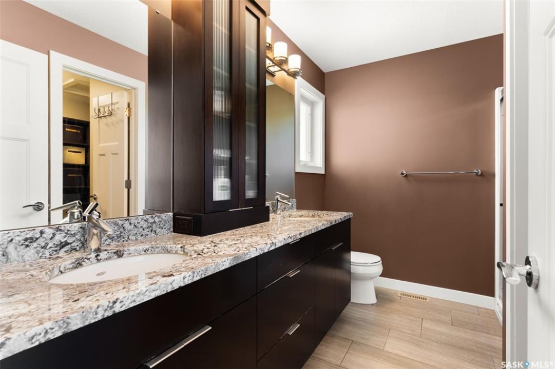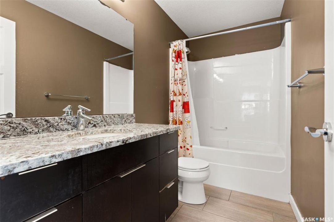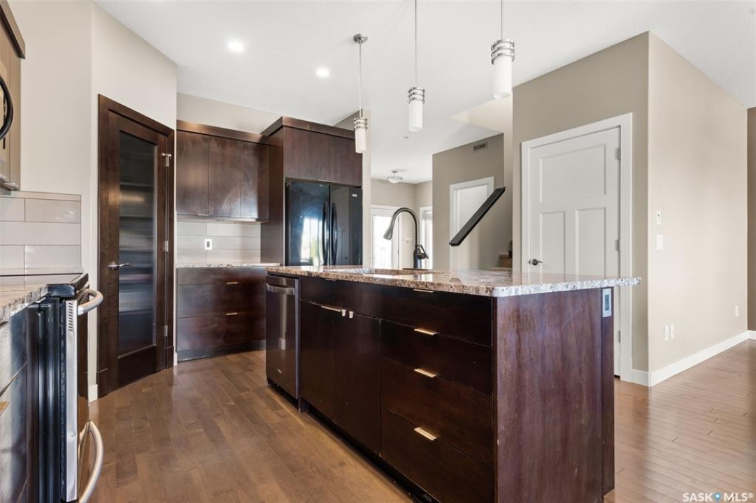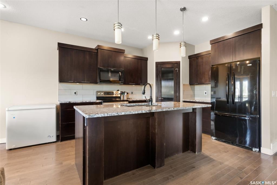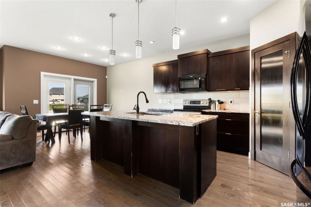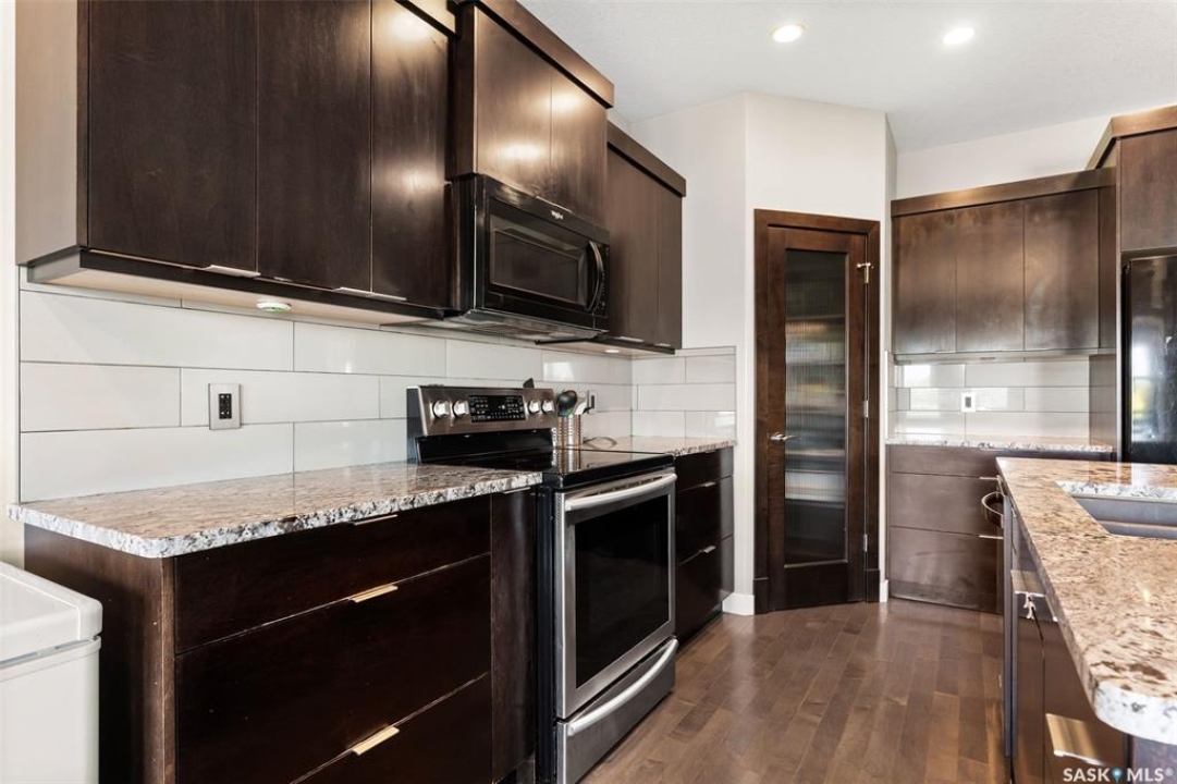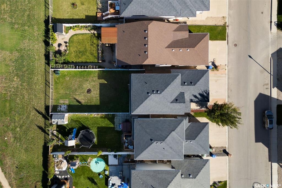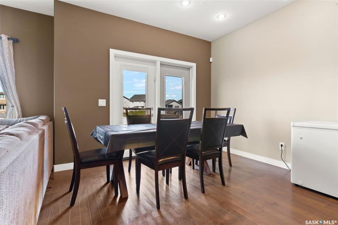 Welcome home to 5488 Aerial Crescent in our Harbour Landing neighbourhood in Regina SK! Buying a home is a lot like dating: Much like finding the perfect partner, the search for a home is about the connection and this Ripplinger Homes built (Build plans are available) 2-storey will captivate at first sight! Backing one of Harbour Landing's walking trails, this 4-bedroom, 3-bathroom family home was designed with everyday living in mind. Hardwood & tile flooring on the main, stone countertops throughout, main floor laundry & custom built in closets on the main/second level there is a sense of refinement and practicality. The entry opens into an open concept main accentuated by 9ft ceilings & comfortable living room w/gas fireplace flanked by custom built in shelving. This kitchen is equipped w/undermount lighting, tiled backsplash, soft close cabinets & corner pantry. The dining room offers space for a family sized table, & direct access to your 4789 SQFT backyard w/gate access to the walking path! Completing the main floor are a ½ bathroom & main floor laundry, w/direct access to the garage! Upstairs you will fall in love with a generously sized primary bedroom & charming ensuite w/dual sinks (dual plugs too) vanity sporting a middle storage tower, soft close drawers, plus shower. Walk through into your L shaped WIC featuring a custom shelving! The two secondary bedrooms are a good size each w/their own closets w/built in shelving! Finishing the 2nd floor is a full bathroom w/another good-sized vanity. Downstairs offers a finished bedroom (window is not egress) w/a closet (plus a fun Harry Potter nook)! The rest of the basement is open for development & has R/I plumbing for an additional bathroom. This 18x24.8 ft (interior) garage includes a centre pit, 12-foot clearance, 220V plug, and five-panel garage door. There's lots to love about this home including its walkability to Grasslands shopping area, parks, & schools. This could be the one that steals your heart!