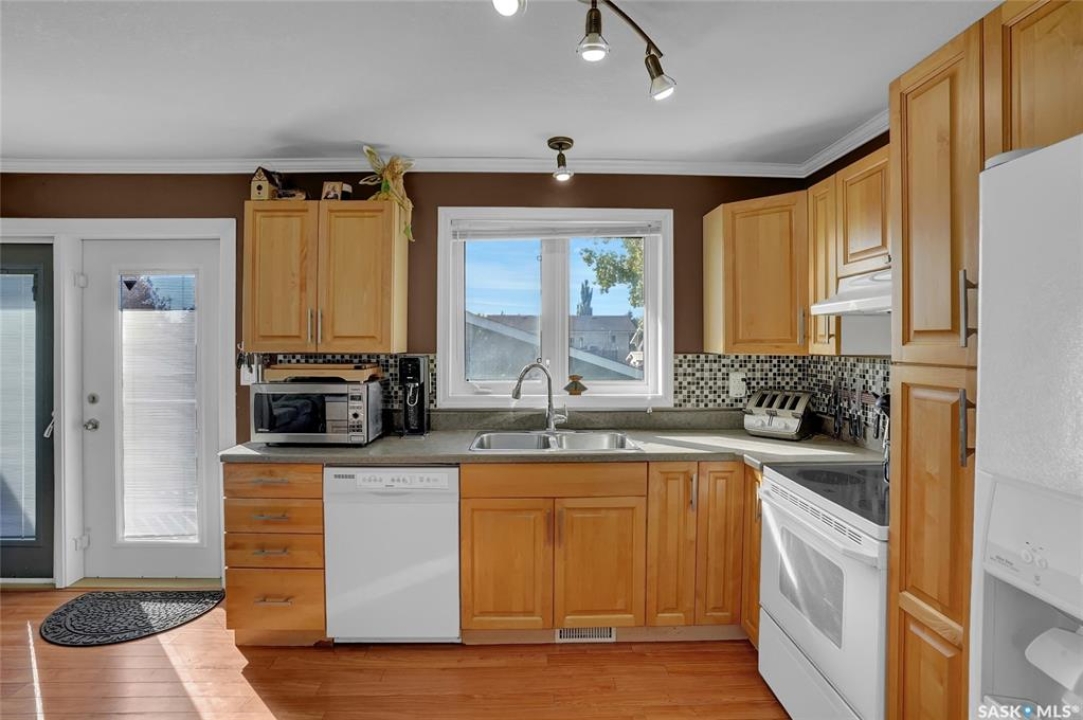This home offers modern updates made over the years inside and out, making it an ideal choice for your next move. As you arrive, the welcoming front drive sets the tone. You are invited into the foyer that leads you to a bright and spacious main floor, designed with an open concept layout that seamlessly connects the living, dining & kitchen areas. The kitchen is a delight, featuring a central island, abundant cabinetry, generous counter space, and a built-in pantry w/pull-outs. From the dining area, patio door leads you to a tiered deck that overlooks a perfectly sized yard, ideal for both relaxation and play. The main floor also accommodates 2 bedrooms, each equipped w/double closets, and an updated 3pc. bath w/tile surround & a linen closet for extra storage. Venture to the lower level where a cozy family/game area awaits, complete with a fireplace & large windows that flood the space with natural light. The laminate flooring connects you to the spacious 3rd bedroom. This floor also features a well-appointed 4pc. bath with a jet tub, storage, and a laundry space within the utility room. Outside, the south-facing yard is fenced, offering privacy and a family-sized deck perfect for entertaining. Additional storage is available under the deck as well as in the large shed. The yard serves as an open canvas, waiting for you to transform it into your personal oasis. With alley access, the gated area provides the option to park an RV or boat, adding to the home's versatility. Completing this package is a double-sized garage, insulated, w/a single-sized overhead door. The added convenience of a front drive offers ample parking for you and your guests. Situated in a wonderful family neighbourhood, this home is near a new school, walking paths, and a park, making it the perfect setting for creating cherished memories. Don't miss the opportunity to make this exceptional house your home. CLICK ON THE MULTI MEDIA LINK FOR VISUA TOUR & Call today for your personal viewing!