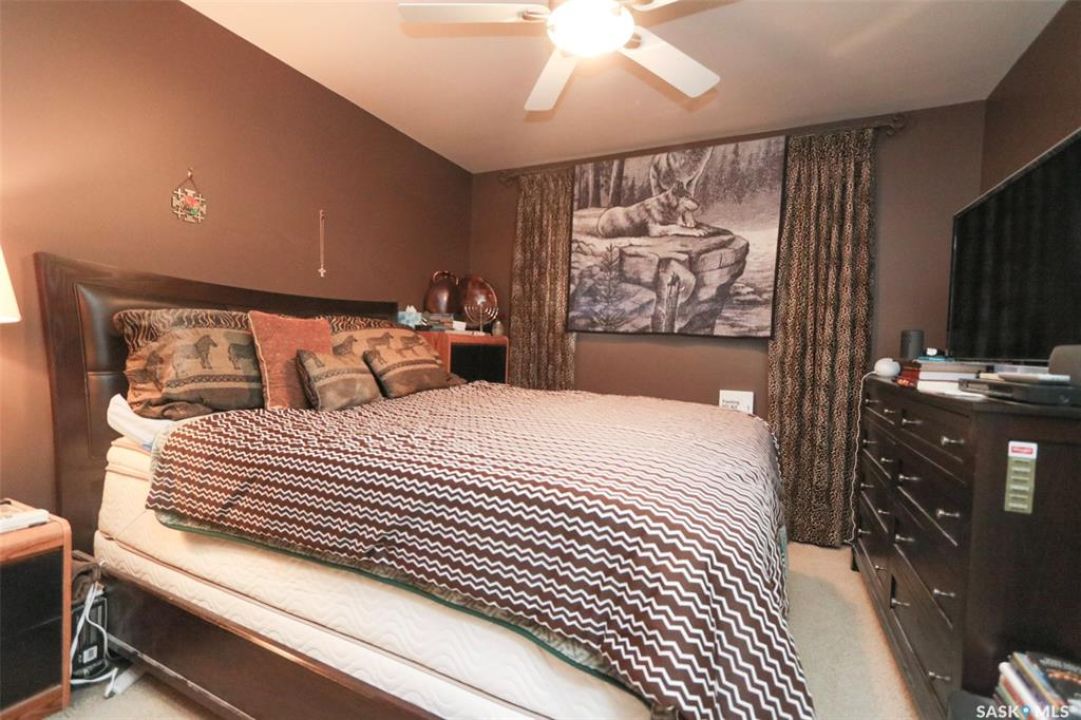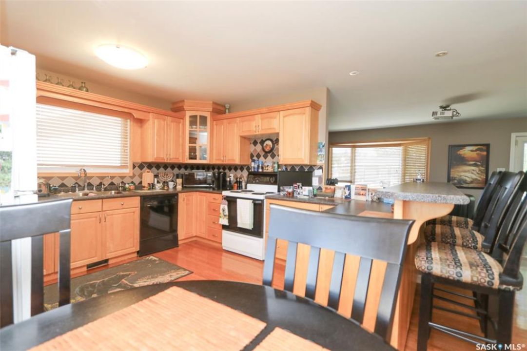 Welcome to 54 Mackenzie Drive, a beautifully upgraded home in Yorkton's sought-after Heritage Heights neighbourhood. This ideal location is perfect for active families—just steps away from newly upgraded pickleball and tennis courts, paved basketball courts, walking trails, and a spacious park. Plus, elementary schools and shopping are all within walking distance. Situated on a generous fenced lot, this property backs directly onto Heritage Heights Park, offering scenic views and added privacy. The 14x42 tandem garage provides plenty of space for two vehicles or the flexibility to create a workshop or hobby area. Inside, the home impresses with modern upgrades and a smart layout. The chef-inspired kitchen is a highlight, featuring extensive cabinetry, ample counter space, and a large sit-up island perfect for hosting and entertaining. The open-concept living room flows seamlessly from the kitchen, making it easy to relax or gather with family and friends. The main floor includes 3 bedrooms and a stunning 5-piece jetted bathroom with direct access to the primary bedroom—your own private retreat. Downstairs, the fully developed basement offers a massive recreation room, an oversized fourth bedroom, a den/office space, a 3-piece bathroom, and plenty of storage options. With durable stucco and brick exterior, updated windows, and a prime location in a family-friendly neighbourhood, this home is truly move-in ready. Whether you're into sports, nature, or just want a quiet, well-located home—54 Mackenzie Drive checks all the boxes.