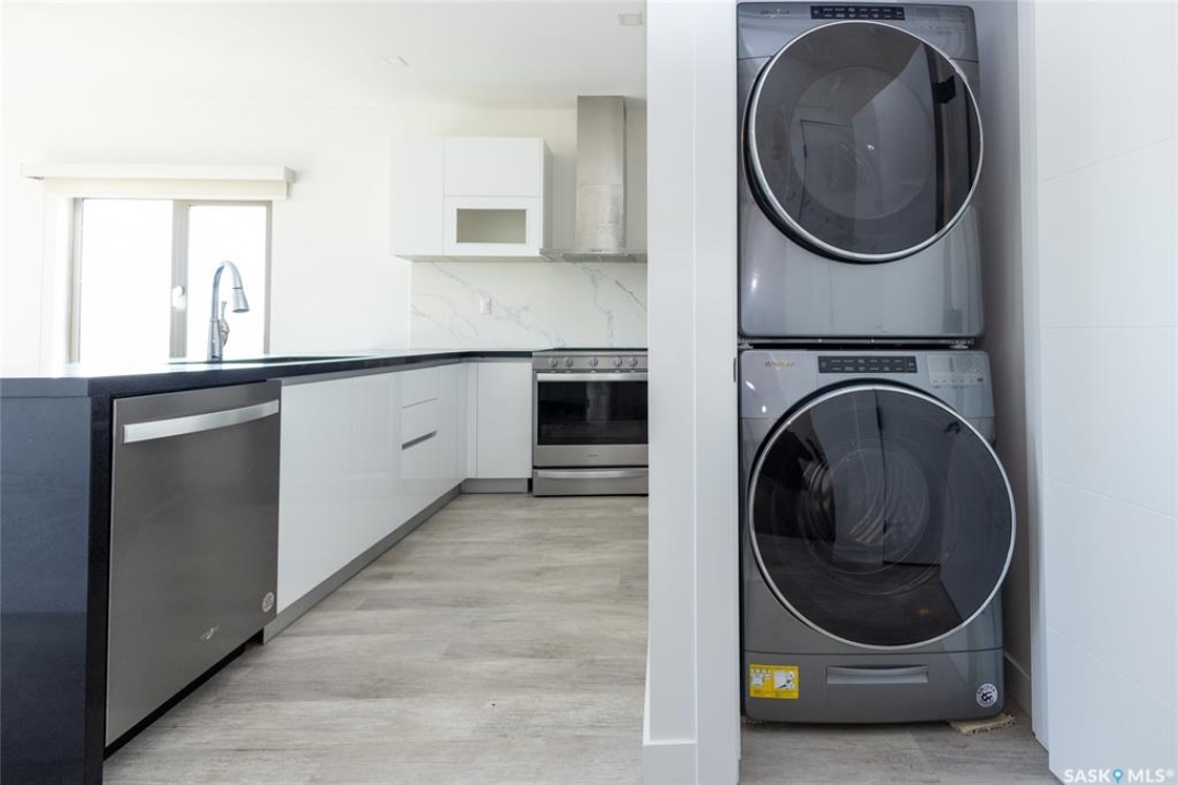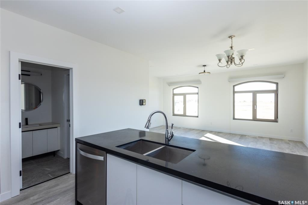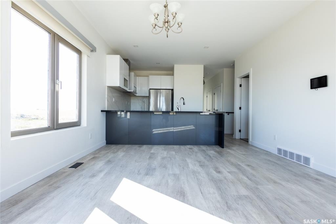 Rare found commercial and residential combined for sale. No Condo Fees. End Unit including side landscrape yard for personal use. First floor has commercial space: can be office or make a coffee shop. 2nd floor offers living area: large living room with around huge windows, beautiful kitchen has L-shape island and quartz counter tops. Master bedroom with walk-in closet and 3pc bathroom ensuite. One more good size bedroom. Very bright and great country view around. 9 feet ceiling and central A/C. Located just minutes away from Blackstrap Lake and about 20 minutes away from Saskatoon.