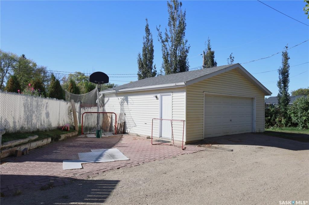 Very well kept move in ready family home in the quiet town of Langham. This home is situated on a unique lot that has an alley behind and on the side giving you the convenience of a corner lot without the hassle of shoveling the extra sidewalk. The yard is nicely landscaped with raised flower beds in the front, a fully fenced back yard that include a nice patio and firepit area. The exterior of the home has been nicely upgraded with vinyl siding, aluminum soffit and fascia, fiberglass shingles and pvc windows. The main floor has also had some upgrades including hardwood flooring throughout (excluding kitchen and baths) and an updated main bathroom. There are 3 bedroom on the main including a master bedroom with a 2pc ensuite. The basement is solid concrete and fully finished. There is a large family room, a large flex room with a closet but no window and a fourth bedroom with window but no closet. There is an additional 4 piece bathroom, a workshop area and laundry in the mechanical room. The home has a fully insulated and heated 24 x 24 detached garage. Take a virtual walk through the house, yard and garage with the 360 virtual tour.