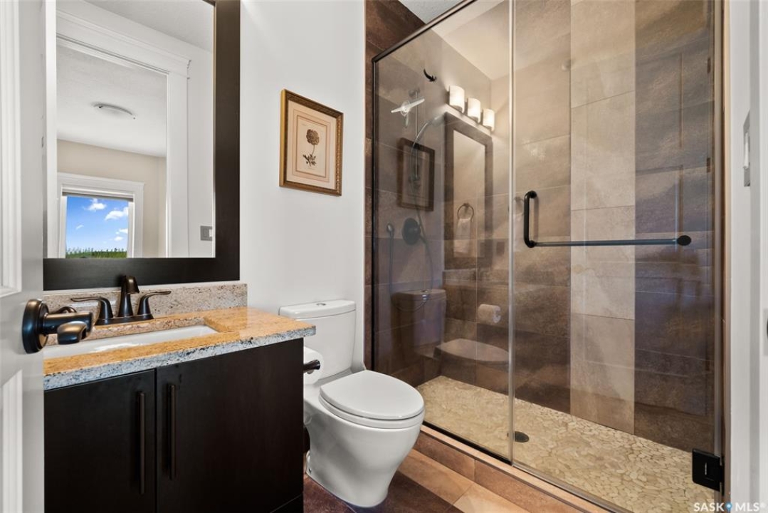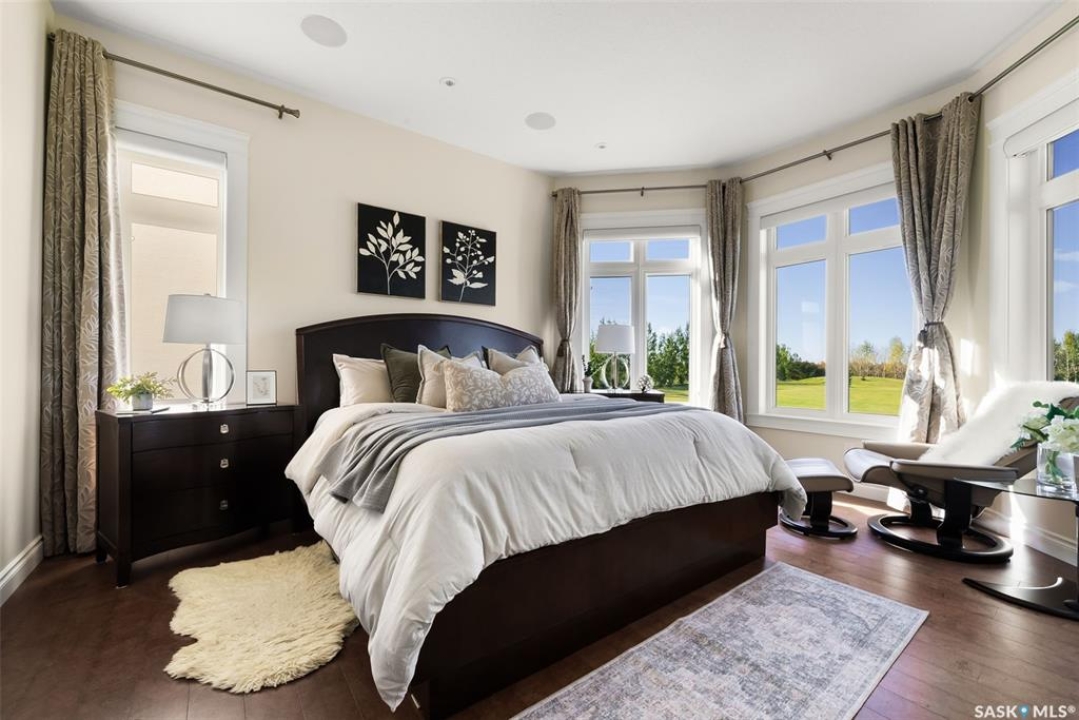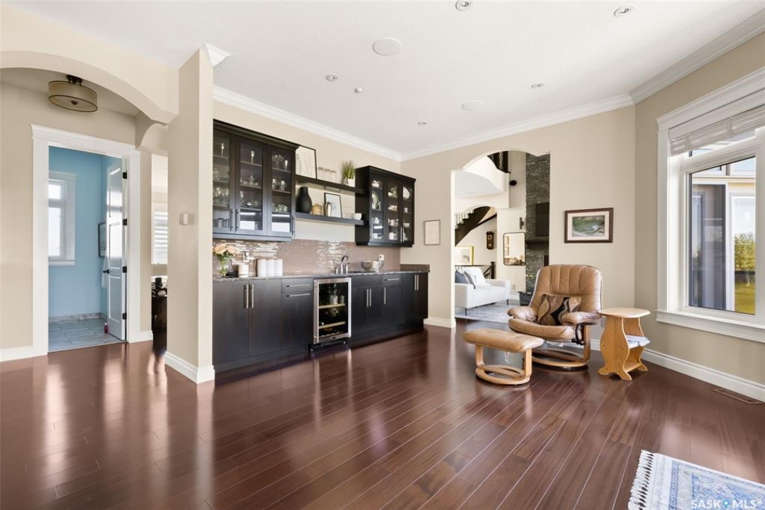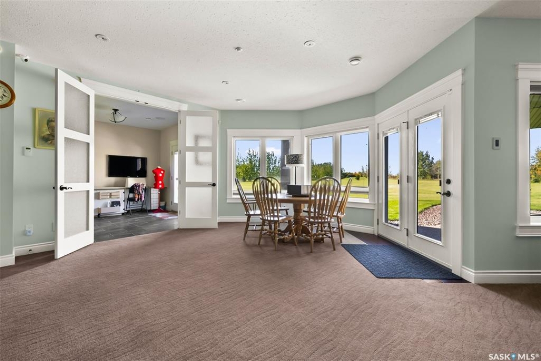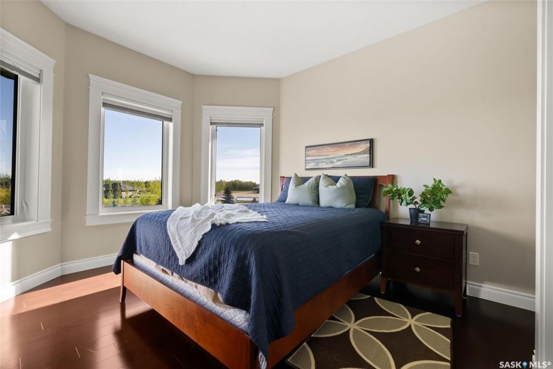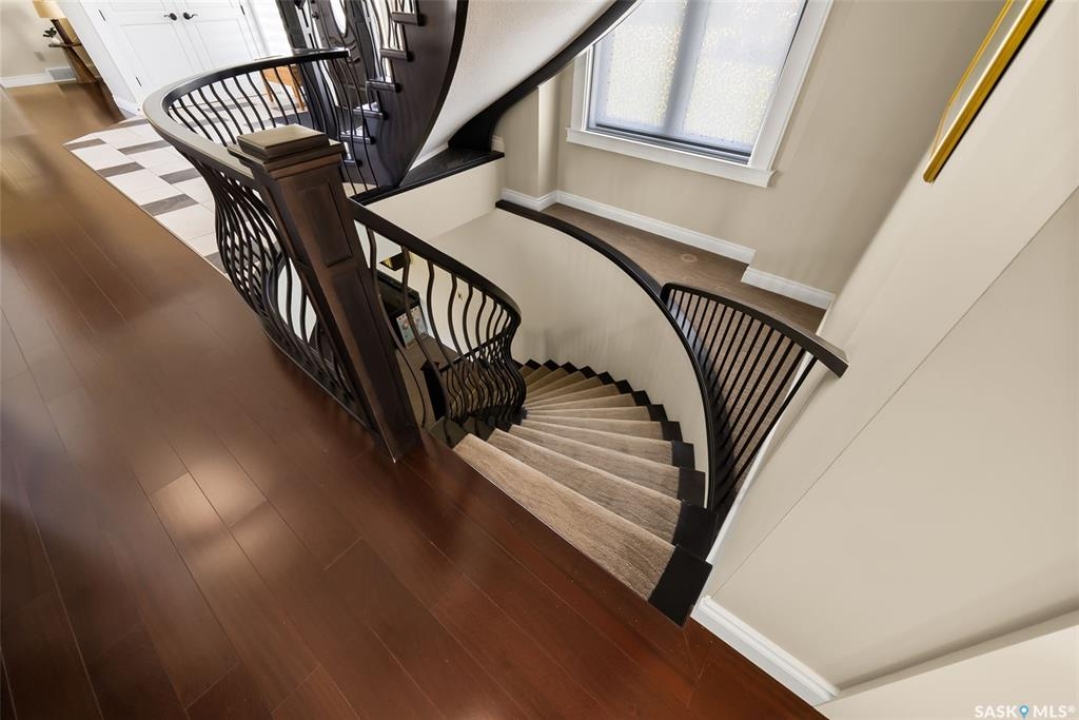 Step into unmatched luxury with this one-of-a-kind custom property, offering over 4,075 sq. ft. on the main and second levels plus a fully developed 2,500 sq. ft. walkout. Situated on 4.89 landscaped acres, this home blends elegance, comfort, and technology. A grand foyer with heated granite tile and a sweeping spiral staircase set the tone for the home's sophistication. The living room features expansive windows and a cozy gas fireplace, opening to the dining area with bar fridge and custom cabinetry. The chef's kitchen boasts Sub-Zero refrigeration, Jenn-Air appliances, walk-in pantry with heated tile, Culligan water filtration, and direct access to a three-season sunroom. The primary suite is a private retreat with cork flooring, his & hers walk-ins, spa-inspired ensuite with heated tile, Bain Ultra soaker tub, dual vanities, and a built-in mirror TV. Upstairs are 3 bedrooms and 3 baths, including 2 ensuites and a shared bath with tub/shower, plus a large bonus room. The walkout lower level includes a theatre with projector/screen, wet bar with wine room, exercise studio, sewing/office space, and an additional bedroom with ensuite. In-floor heat runs throughout, and 4 rooms offer direct backyard access. Smart home features include Savant automation for TVs, fireplaces, and blinds, Apple TV, Xbox/DVD integration, and 3 Shaw Direct satellite dishes. Bedrooms have blackout + lace blinds, while automated blinds are in the kitchen, living, and theatre. Additional highlights include heated mudroom tile, central vac with extra hoses, security with 8 cameras, fire sprinklers, and a heated 5-car garage with wheelchair-ready access. Outdoors, enjoy a multi-purpose sport court, solar-lit driveway, upper & lower decks with built-in BBQs, underground sprinklers, and wiring for a future hot tub. This property offers acreage living at its finest — a perfect blend of luxury, technology, and comfort in a private setting. Ask your REALTOR ® for a full list of features!