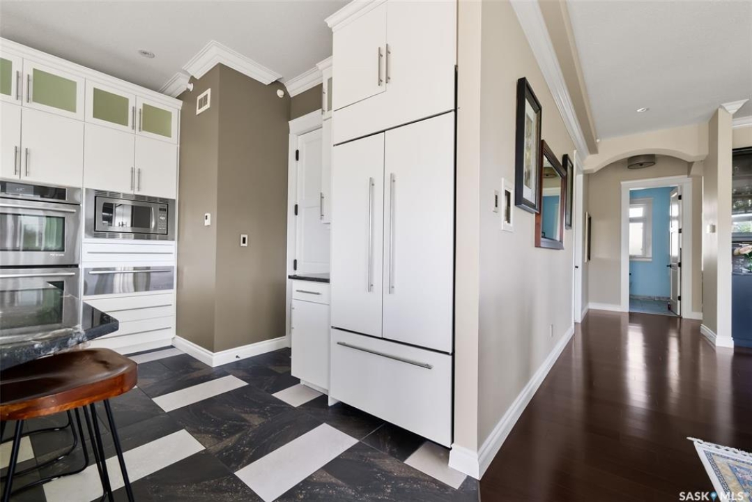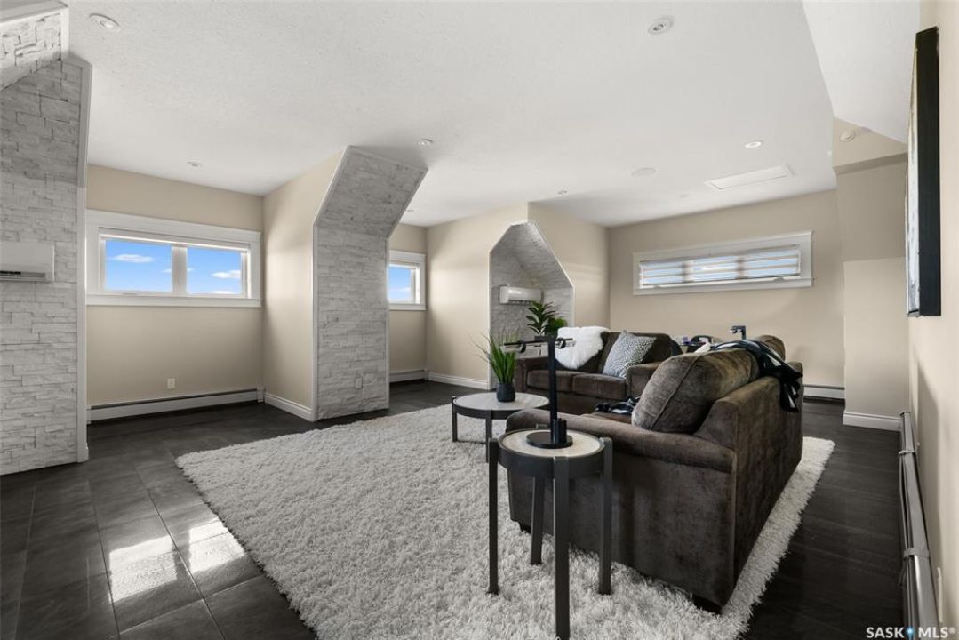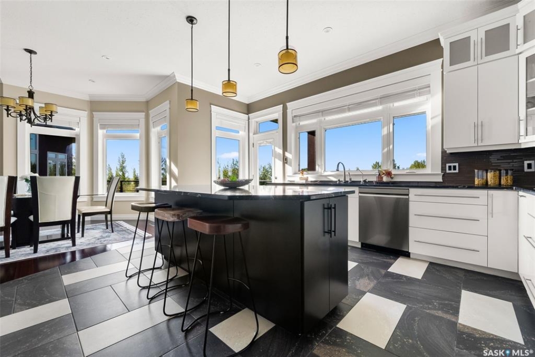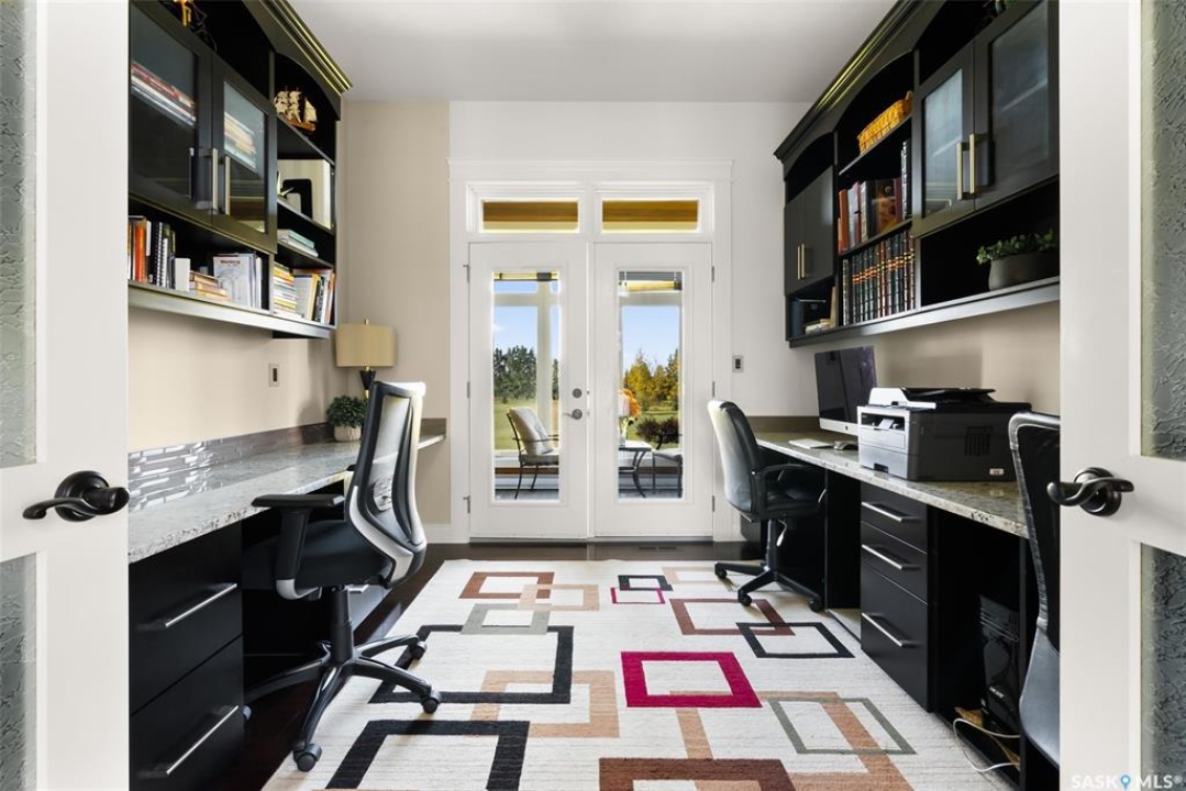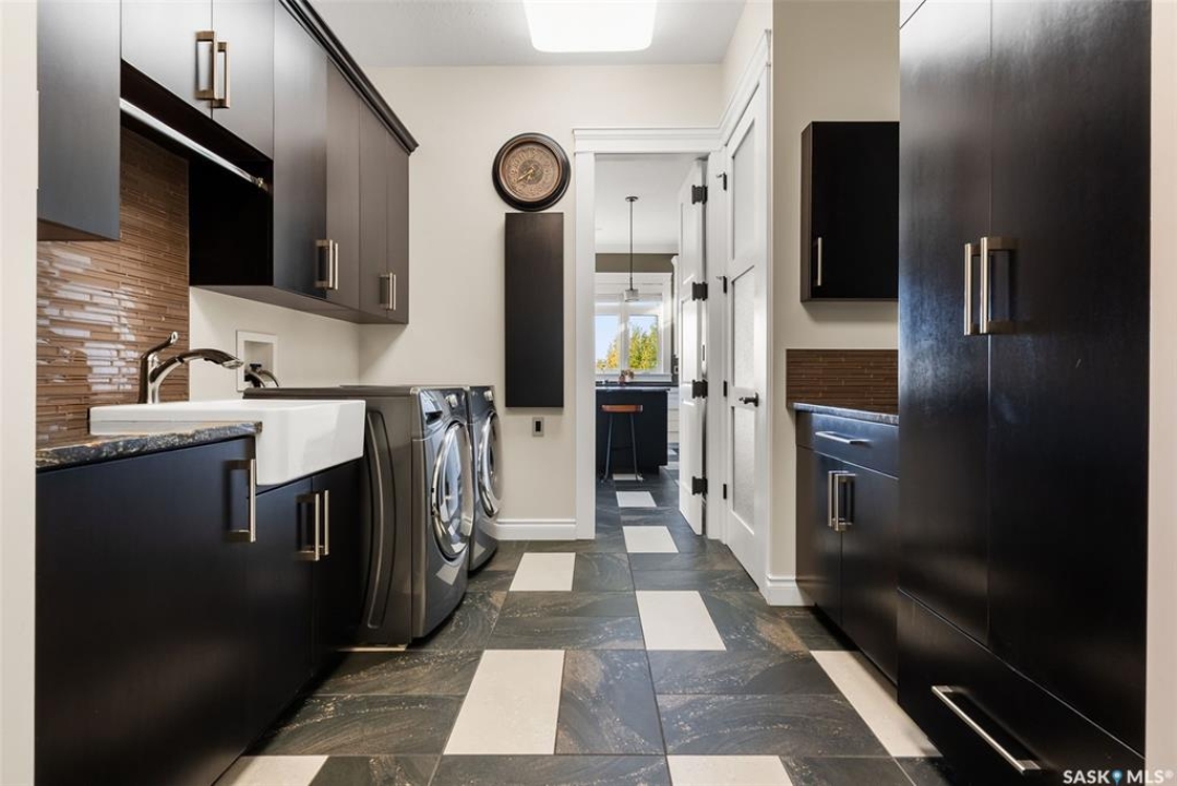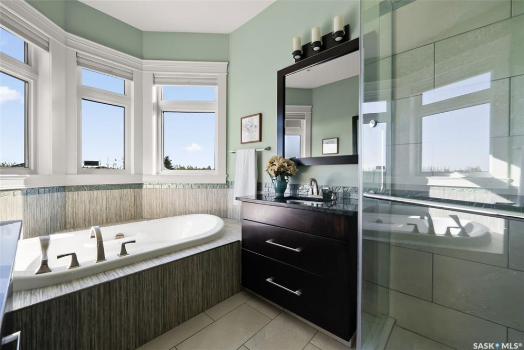 Step into unmatched luxury with this one-of-a-kind custom property, offering over 4,075 sq. ft. on the main and second levels plus a fully developed 2,500 sq. ft. walkout. Situated on 4.89 landscaped acres, this home blends elegance, comfort, and technology. A grand foyer with heated granite tile and a sweeping spiral staircase set the tone for the home's sophistication. The living room features expansive windows and a cozy gas fireplace, opening to the dining area with bar fridge and custom cabinetry. The chef's kitchen boasts Sub-Zero refrigeration, Jenn-Air appliances, walk-in pantry with heated tile, Culligan water filtration, and direct access to a three-season sunroom. The primary suite is a private retreat with cork flooring, his & hers walk-ins, spa-inspired ensuite with heated tile, Bain Ultra soaker tub, dual vanities, and a built-in mirror TV. Upstairs are 3 bedrooms and 3 baths, including 2 ensuites and a shared bath with tub/shower, plus a large bonus room. The walkout lower level includes a theatre with projector/screen, wet bar with wine room, exercise studio, sewing/office space, and an additional bedroom with ensuite. In-floor heat runs throughout, and 4 rooms offer direct backyard access. Smart home features include Savant automation for TVs, fireplaces, and blinds, Apple TV, Xbox/DVD integration, and 3 Shaw Direct satellite dishes. Bedrooms have blackout + lace blinds, while automated blinds are in the kitchen, living, and theatre. Additional highlights include heated mudroom tile, central vac with extra hoses, security with 8 cameras, fire sprinklers, and a heated 5-car garage with wheelchair-ready access. Outdoors, enjoy a multi-purpose sport court, solar-lit driveway, upper & lower decks with built-in BBQs, underground sprinklers, and wiring for a future hot tub. This property offers acreage living at its finest — a perfect blend of luxury, technology, and comfort in a private setting. Ask your REALTOR ® for a full list of features!