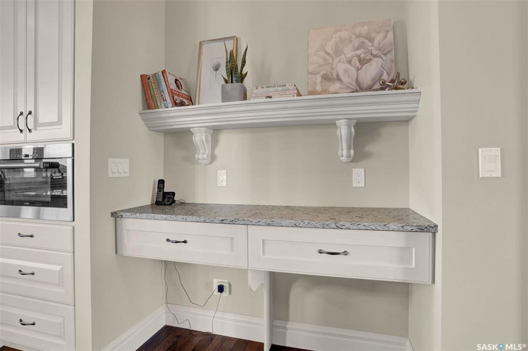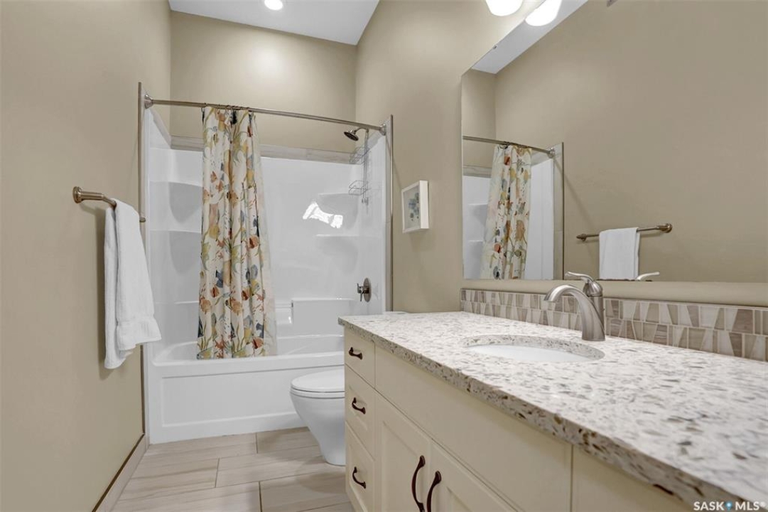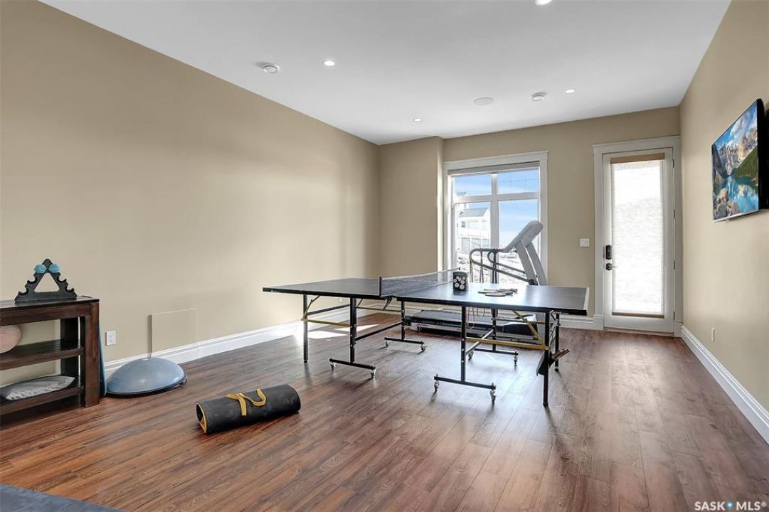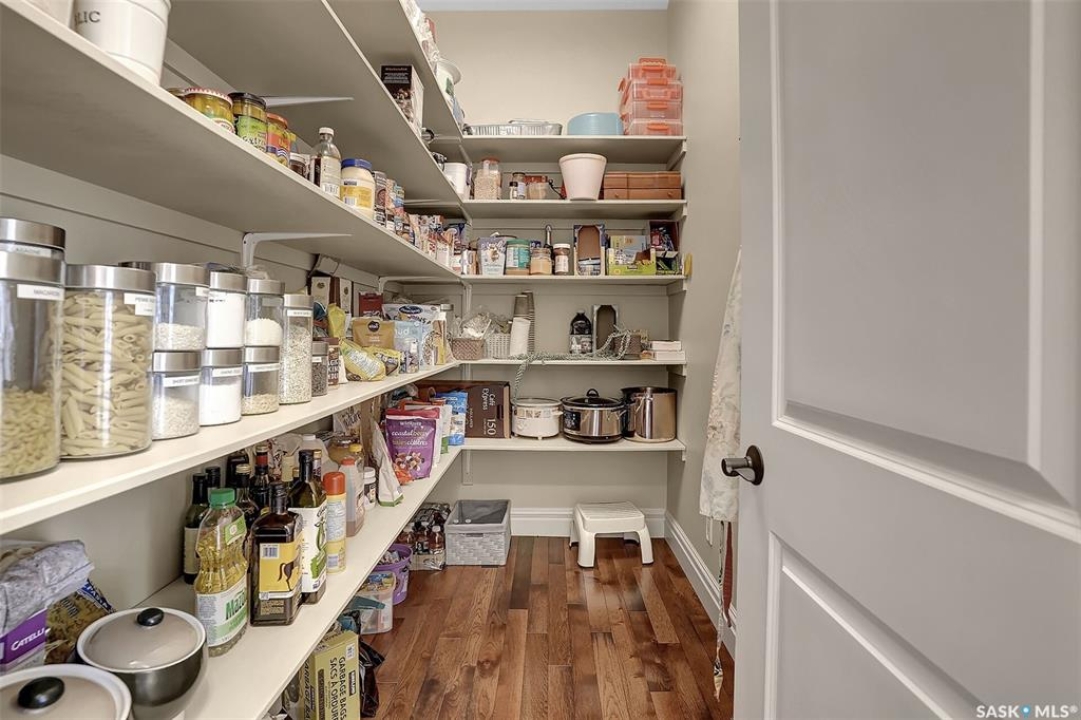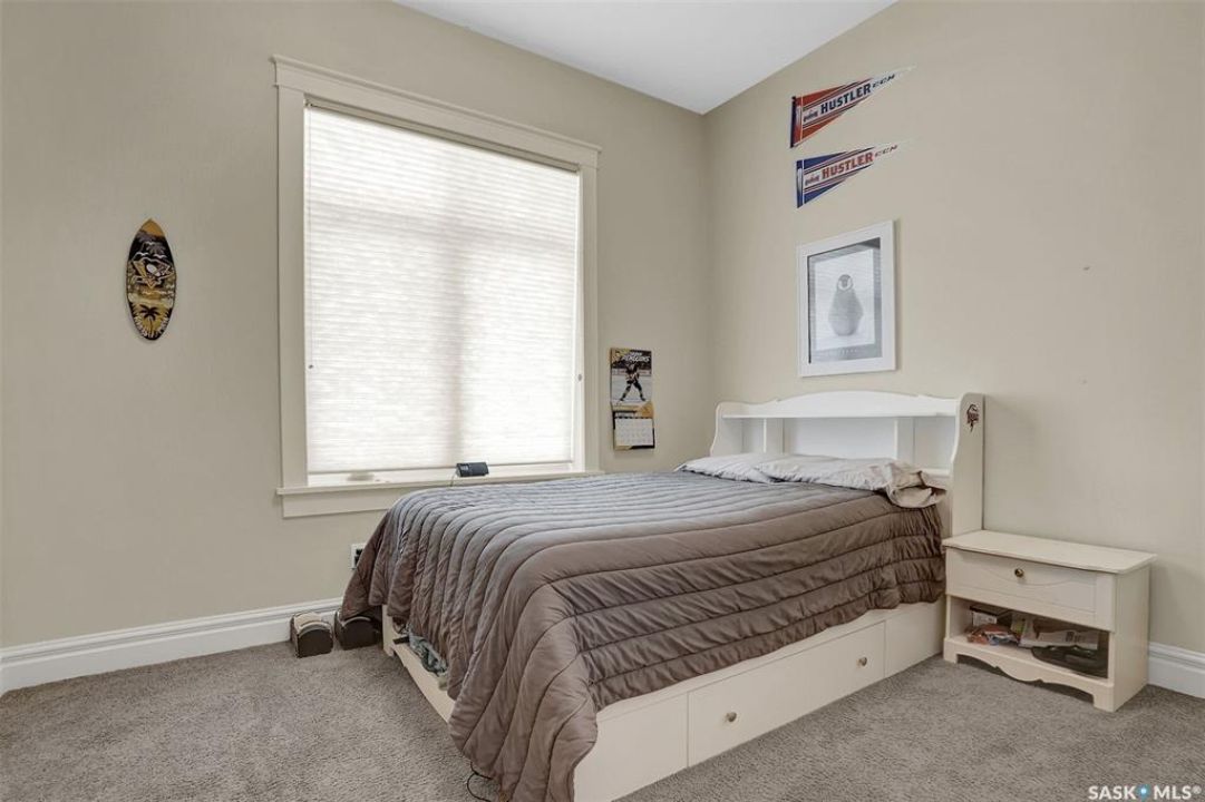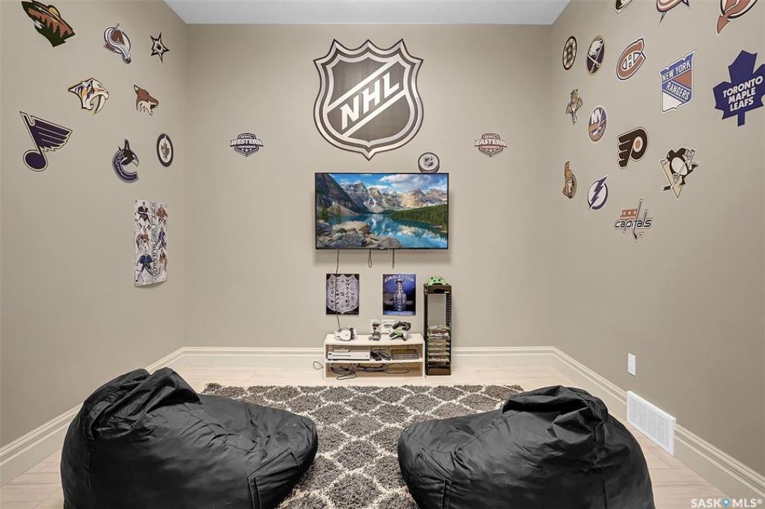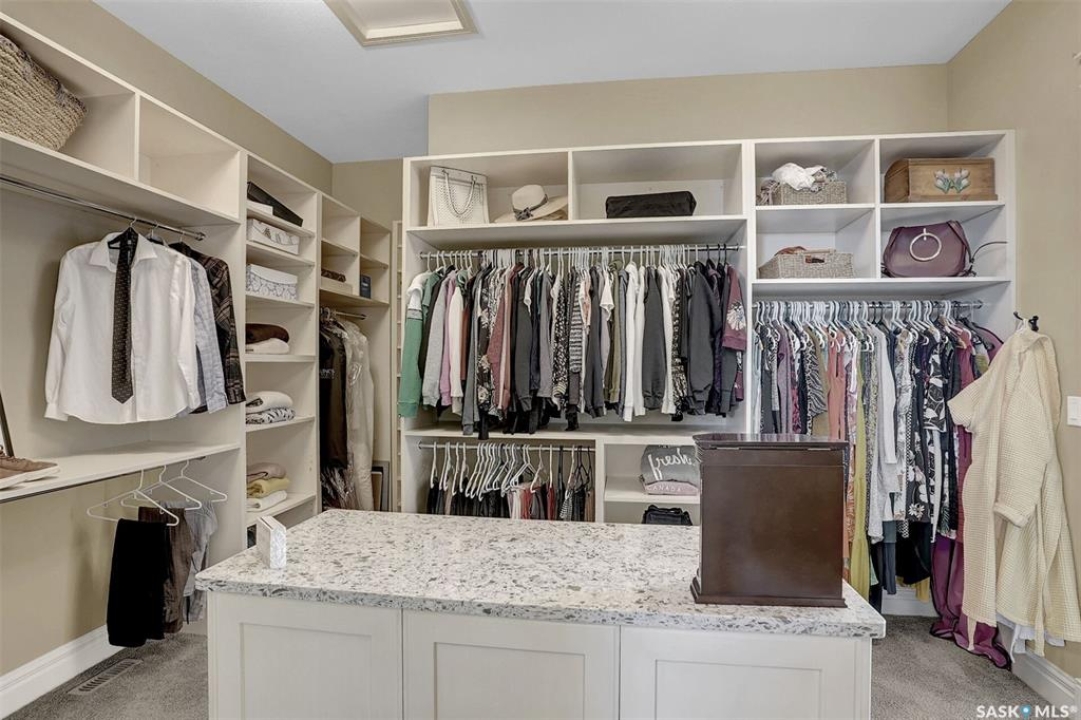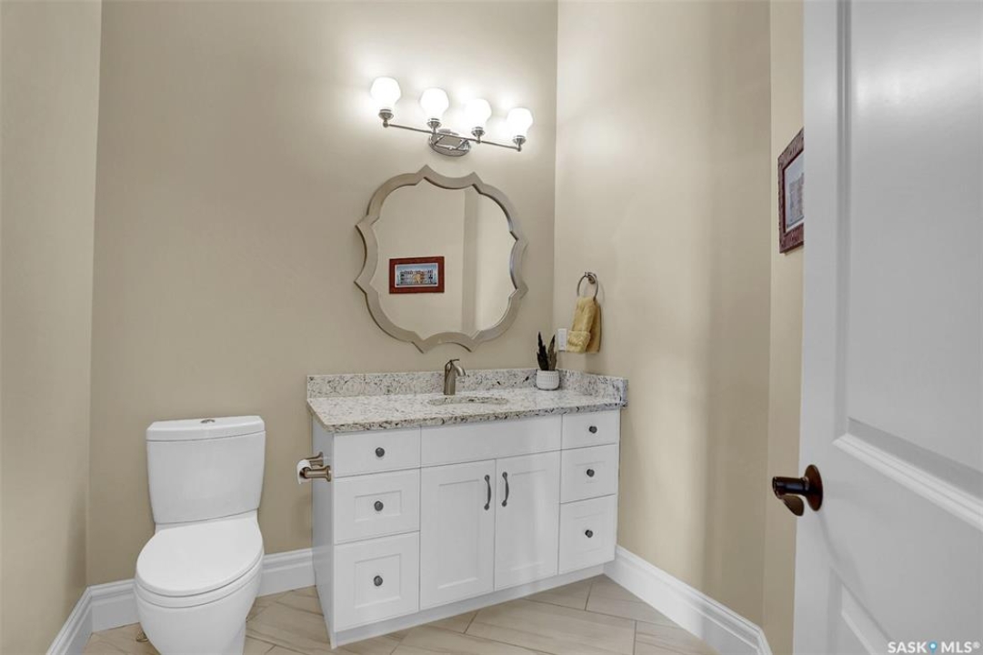 This extraordinary custom built walkout bungalow in Spruce Creek Estates has 6,096 sq' of living space, including a 2,926 sq' walkout basement & 244 sq' 3-season sunroom. The grand foyer features herringbone pattern tile and leads to the great room with 19' vaulted ceiling, Tyndall stone gas fireplace and huge southwest-facing windows that showcase stunning views of the professionally landscaped yard and community lake. Hickory hardwoods lead into the dream kitchen with a coffered ceiling, loads of cabinetry, quartz countertops, and a sit-around island with prep sink. Home chefs will adore the Wolf dual fuel 6 burner range and steam oven, Sub-Zero fridge and freezer drawers, 2 Bosch dishwashers, pot filler, & huge walk-in pantry. The sunroom is perfect for relaxing and is connected to the covered deck. The master suite is a private getaway with a separate covered deck, lake view and a spa-like ensuite. The walk-in closet features an island and is conveniently located next to the laundry room. Completing the main level are 2 more bedrooms, a 4-piece bath, a ½ bath (all baths with in-floor heat), a large mudroom with custom lockers and a music room. The walkout level is bright with continuation of the 10' ceilings from upstairs, large windows, in-floor heat, and a gas fireplace. Watch a game while enjoying the walk-up wet bar and beautiful wine room. You'll enjoy doing work in the office with built-in cabinetry and more lake views. When your gym workout is done you can exit directly to the covered patio with space for a future hot tub. Two large bedrooms, a 4-piece bath, play room, and more complete this amazing walkout level. Garage enthusiasts will love the two 28x32' garages with large overhead doors perfect for boat/RV storage, in-floor heat, hot & cold water, and drain pits to the outside. Also featured throughout the home are Hunter Douglas blinds and Savant home automation. Your oasis awaits, and it's only 22 minutes from downtown Regina.