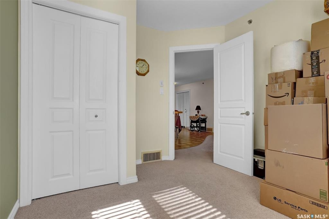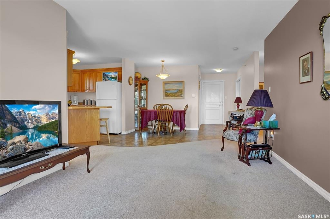 Welcome to Parliment Manor, this very well cared for top floor corner unit 2 bed, 1 bath condo built by Fiorante Homes in the heart of Parliament Place. Easy walking distance to many south end amenities including restaurants, grocery stores, retail stores, and more. Generous size foyer welcomes you as you enter the unit. Kitchen space offers a good amount of wood cabinetry and cupboard space - newer appliances are included. Open concept living room and dining area are well lit with natural light. Garden door off the living room leads to a good size south facing balcony with a natural gas BBQ hook up. Great spot to enjoy a relaxing evening or a morning coffee. Primary bedroom features a walk in closet which is an added bonus! Additional bedroom and a 5 piece bath with separate bath and shower, and a dedicated laundry/utility/storage room complete the unit. Underground heated parking stall with an additional storage locker are also included. Condo also offers an amenities room, visitor parking, and allows small pets with board approval. This is a lovely building that is well cared for.