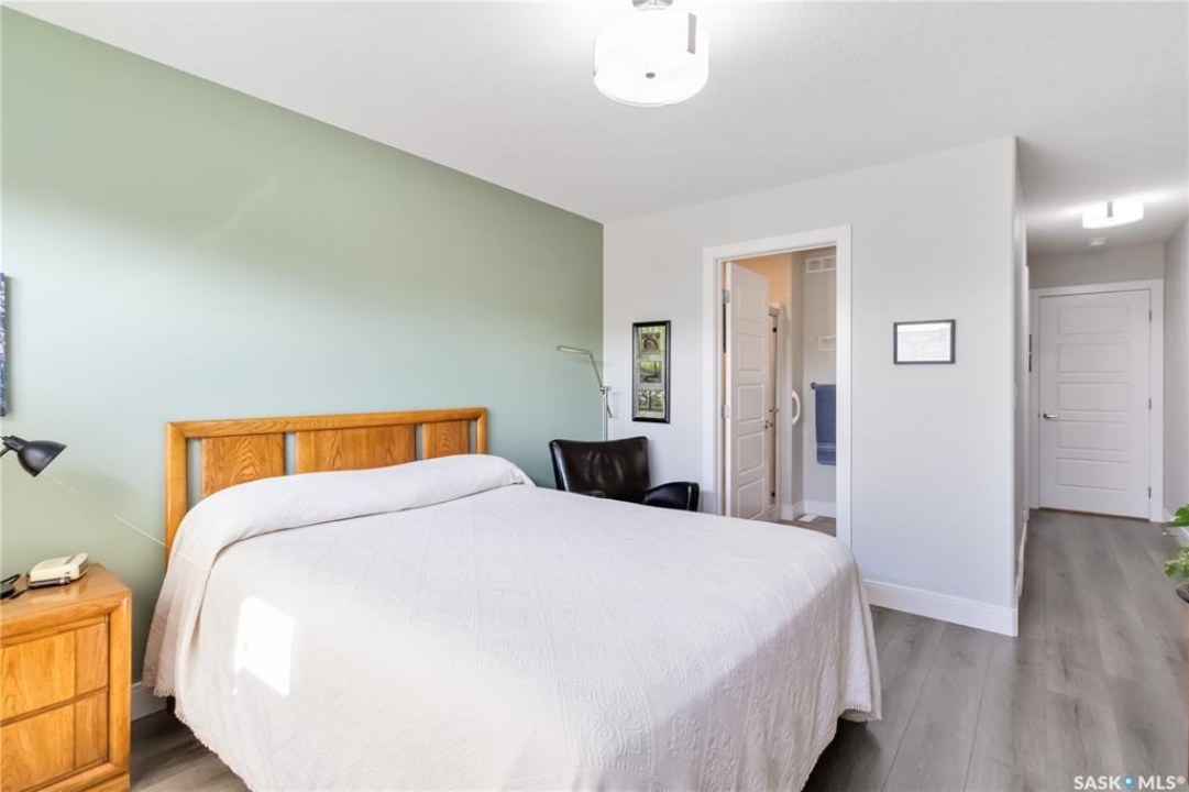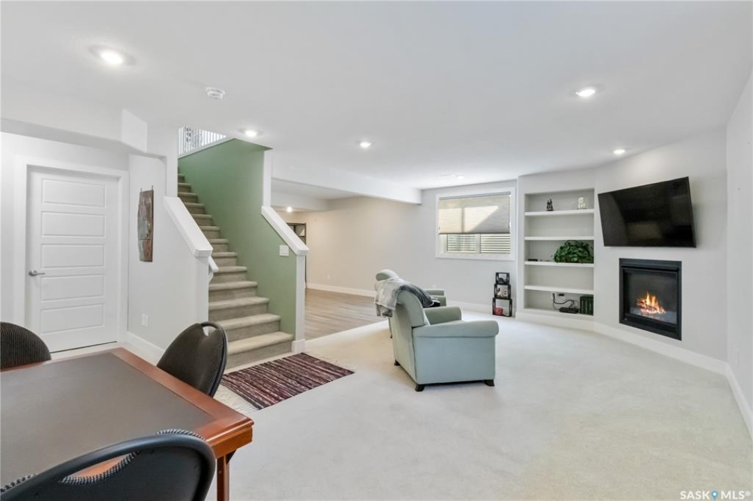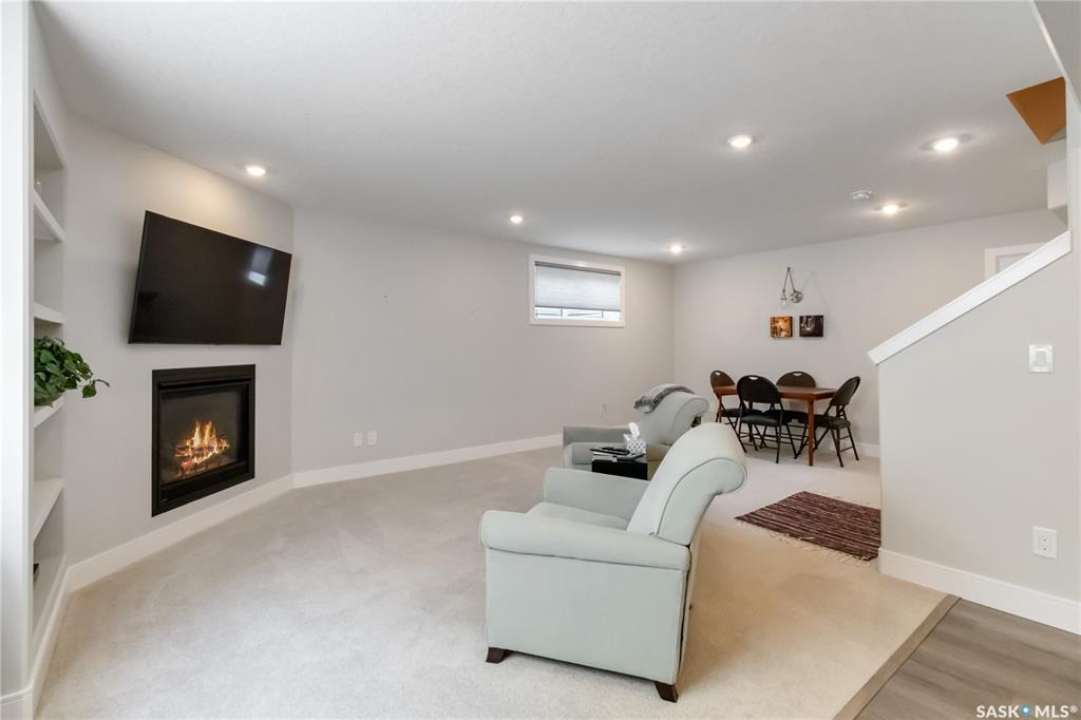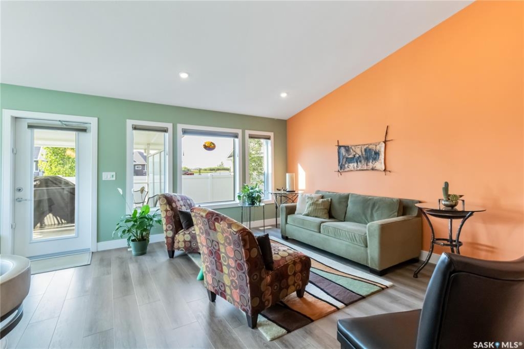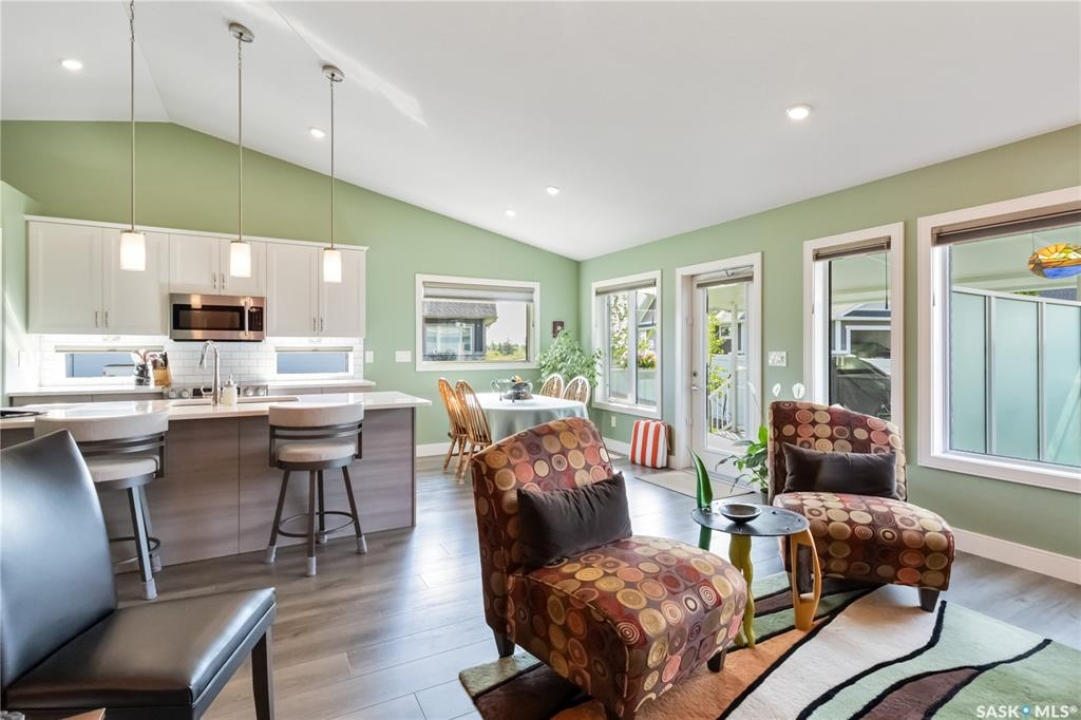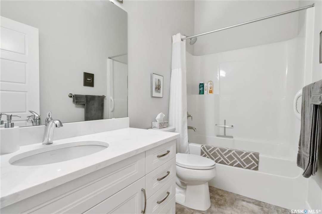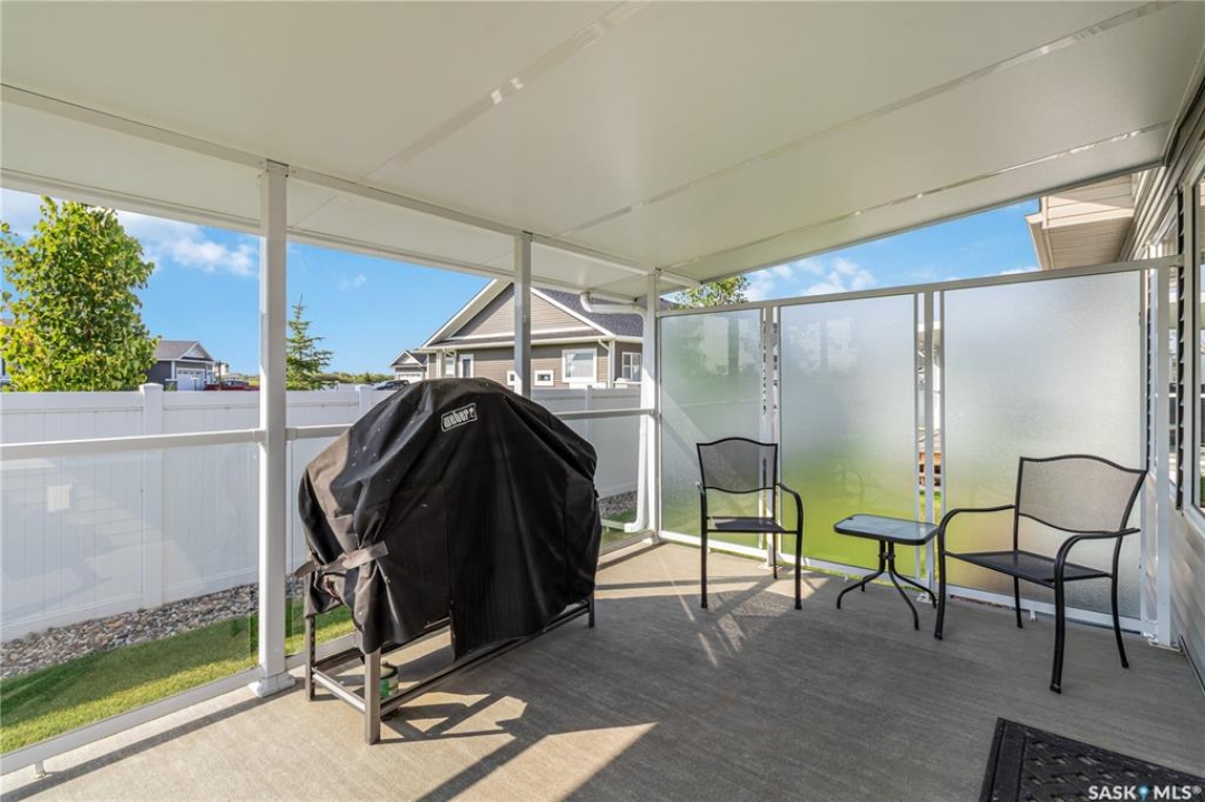 Welcome to #5-435 Palmer Crescent in Warman, a highly desirable bungalow with views of the Legends Golf Course. Situated at the end of the row, this meticulously cared for home offers privacy with no neighbors on one side or behind. The condo is filled with natural light and features a south-facing covered deck. The modern and spacious kitchen boasts extra windows, quartz countertops, a pantry, vaulted ceilings, and an upgraded stainless steel appliance package. The dining area offers golf course views and room for a large table. Down the hall, you'll find a bedroom, a 4-piece bath with vaulted ceiling, a spacious primary suite with a walk-in closet and 3-piece bath, and a laundry room with built-in cabinetry. The fully developed basement, finished by the builder, maintains consistent quality and finishings throughout. It includes a large family room with gas fireplace and built-in shelves. room for a gym, as well as a bedroom, an office (that can easily be converted into a 4th bedroom), a 3-piece bath, and a generous storage/furnace room with utility sink. The garage is fully insulated and comes with a workbench and shelving. Step outside onto the covered deck to enjoy the peacefulness of this quiet complex. Other features include custom blinds, central air, ng bbq hook-up, granite countertops and undermount sinks in all bathrooms. Over $30,000 in upgrades have been invested in this beautiful home. With walking trails and the golf course nearby, this bungalow is the perfect forever home. Dogs allowed with board approval.