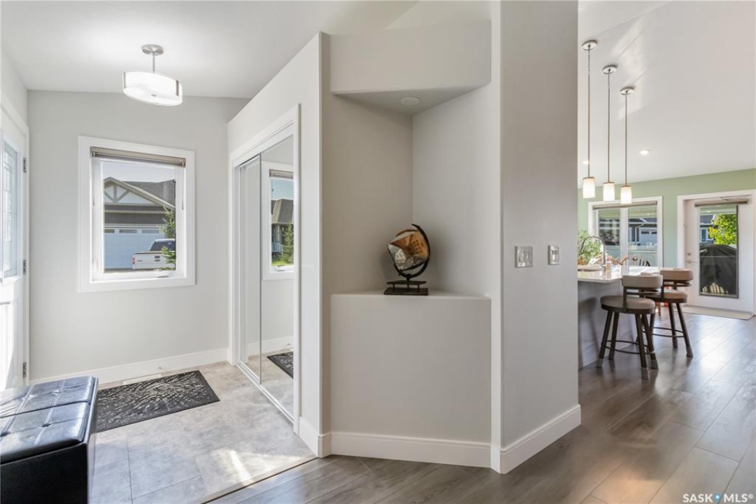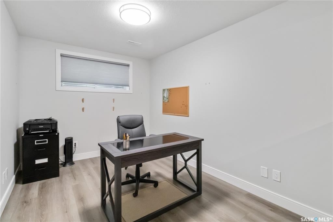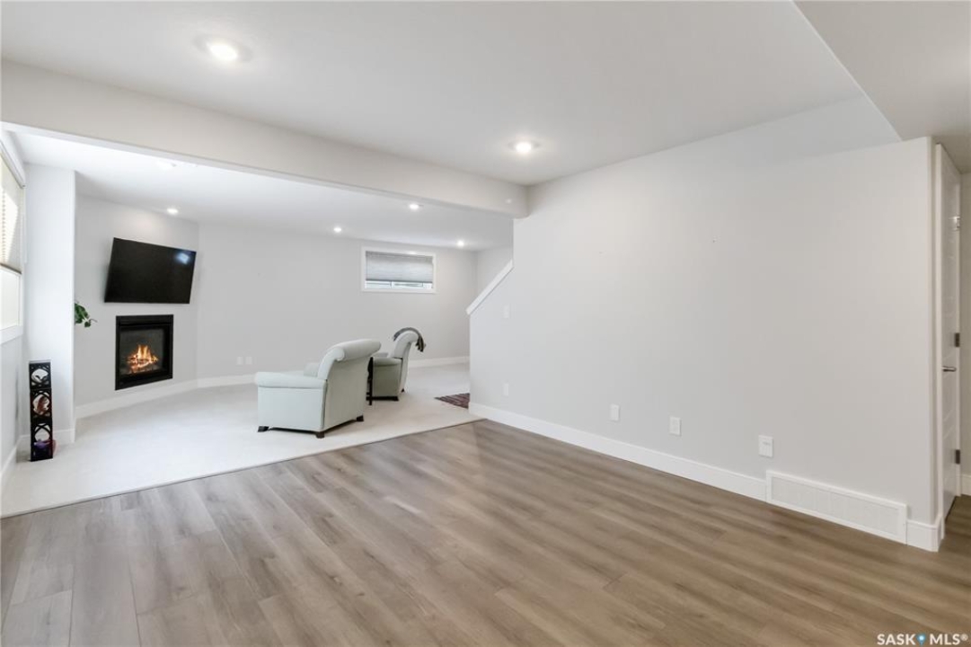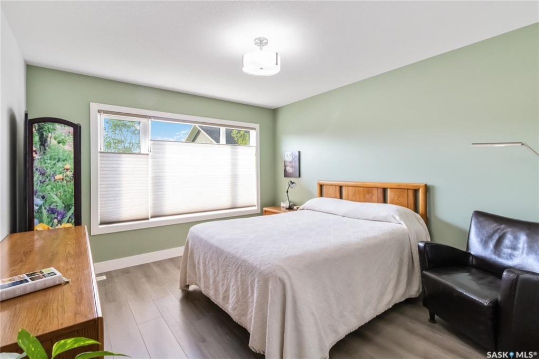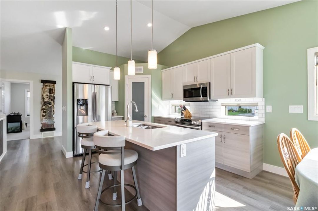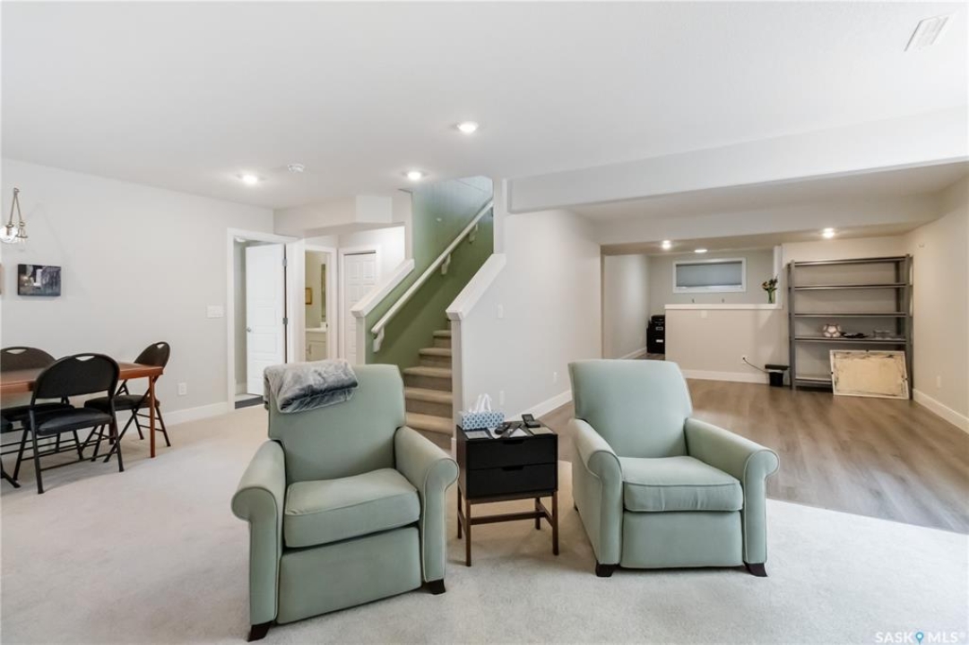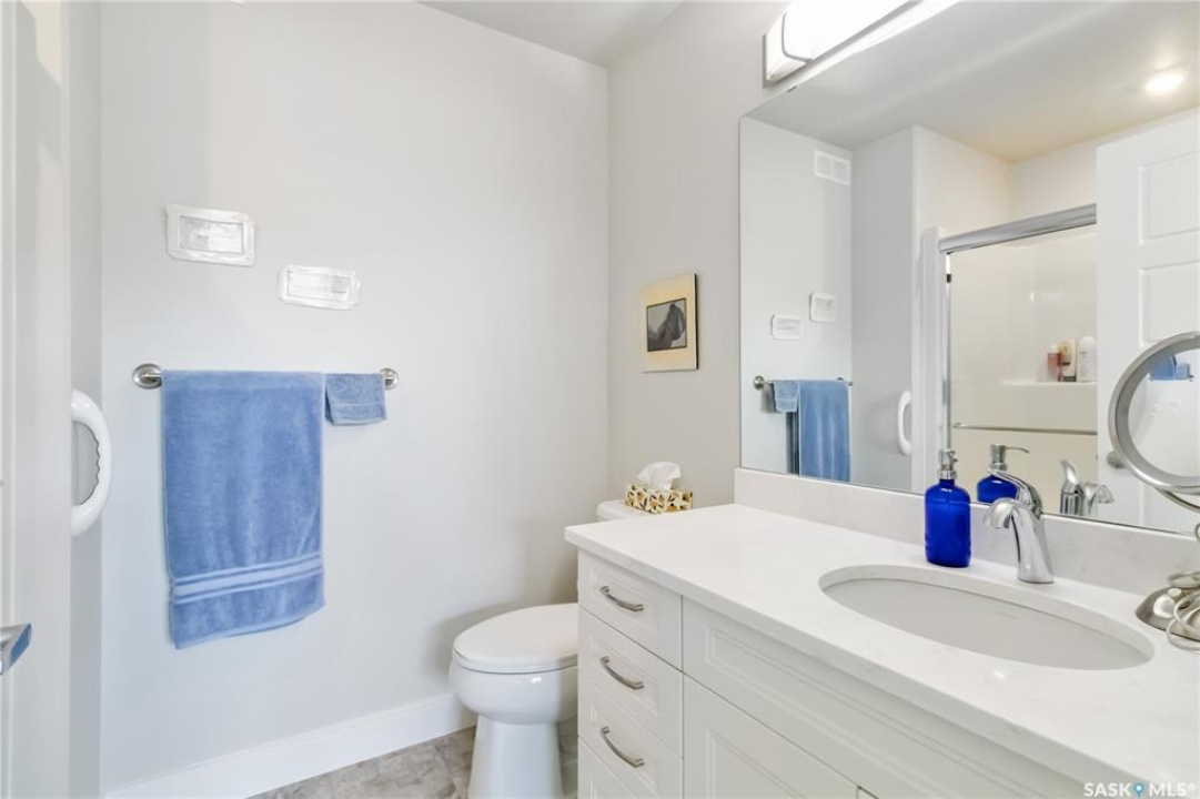 Welcome to #5-435 Palmer Crescent in Warman, a highly desirable bungalow with views of the Legends Golf Course. Situated at the end of the row, this meticulously cared for home offers privacy with no neighbors on one side or behind. The condo is filled with natural light and features a south-facing covered deck. The modern and spacious kitchen boasts extra windows, quartz countertops, a pantry, vaulted ceilings, and an upgraded stainless steel appliance package. The dining area offers golf course views and room for a large table. Down the hall, you'll find a bedroom, a 4-piece bath with vaulted ceiling, a spacious primary suite with a walk-in closet and 3-piece bath, and a laundry room with built-in cabinetry. The fully developed basement, finished by the builder, maintains consistent quality and finishings throughout. It includes a large family room with gas fireplace and built-in shelves. room for a gym, as well as a bedroom, an office (that can easily be converted into a 4th bedroom), a 3-piece bath, and a generous storage/furnace room with utility sink. The garage is fully insulated and comes with a workbench and shelving. Step outside onto the covered deck to enjoy the peacefulness of this quiet complex. Other features include custom blinds, central air, ng bbq hook-up, granite countertops and undermount sinks in all bathrooms. Over $30,000 in upgrades have been invested in this beautiful home. With walking trails and the golf course nearby, this bungalow is the perfect forever home. Dogs allowed with board approval.