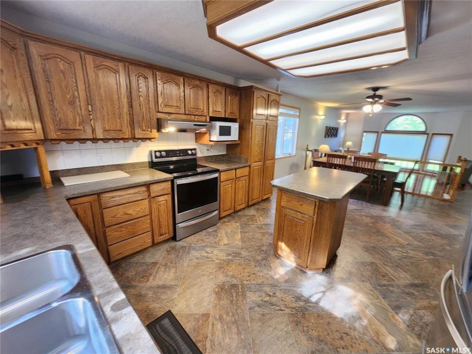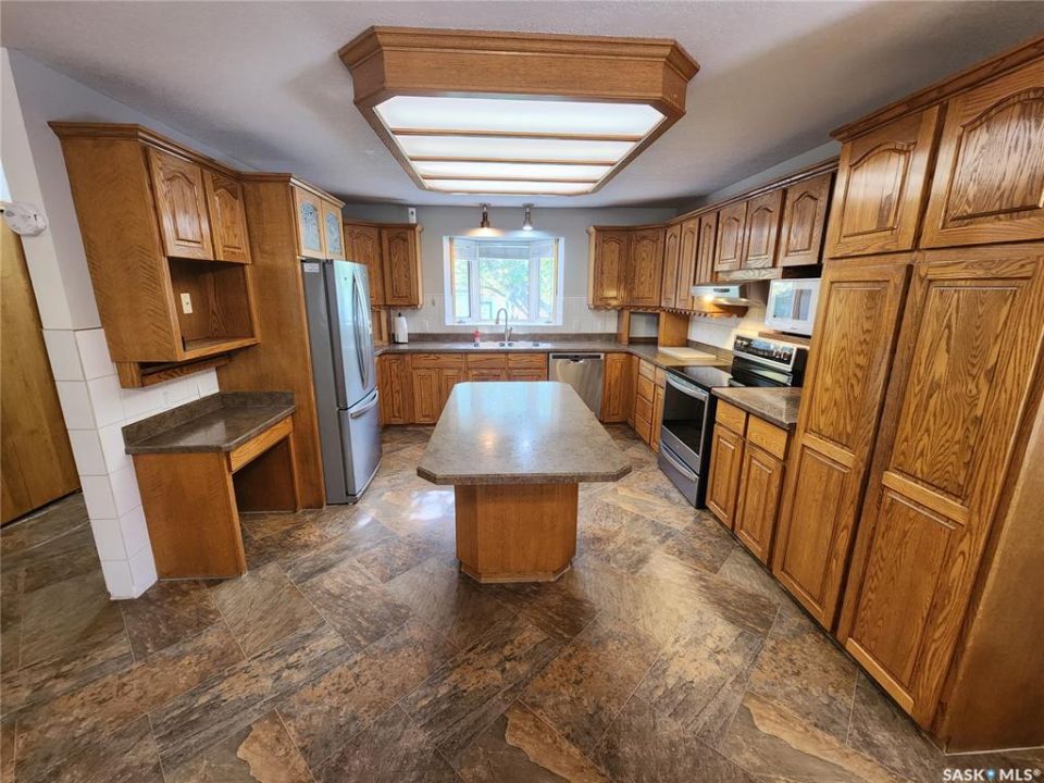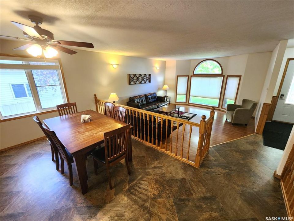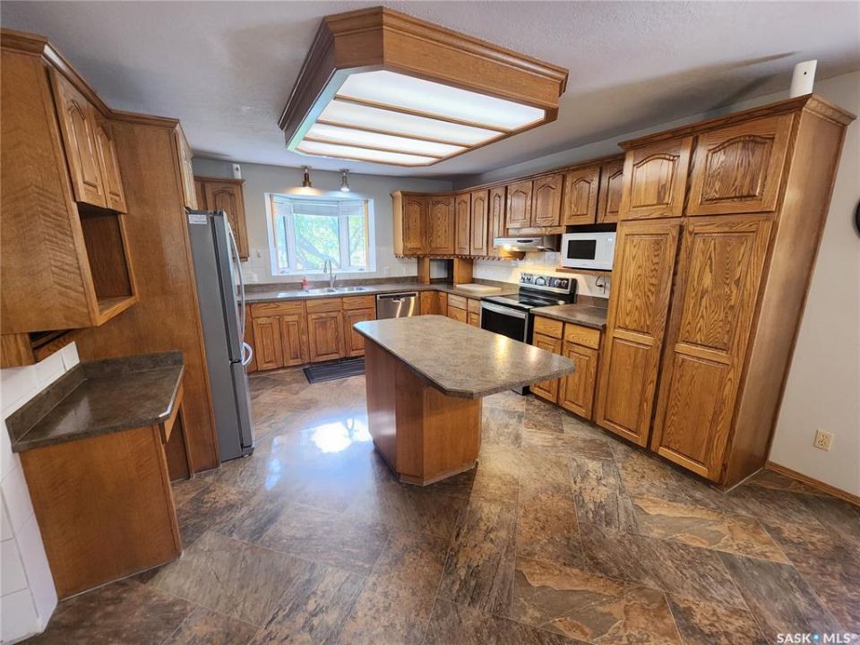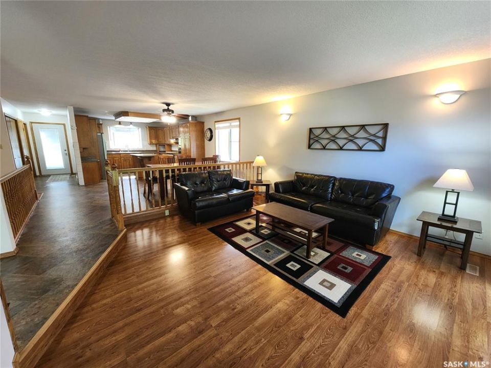 This property is over 1500sqft, has a double attached garage as well as a detached 16' x 28' garage and is located in the quiet community of Lampman. You enter the home directly into a large foyer. The living room is bright, inviting, has beautiful laminate flooring and opens to the spacious dining room. The kitchen boasts ample cabinetry, an island, and stainless steel appliances. The open concept lends itself well to entertaining with the expansive dining room being open to the kitchen as well as living room. Just off the kitchen is the laundry closet as well as extra storage closets with direct garden door access to the deck. The master bedroom is super spacious and includes a 3 piece bathroom and large double closets. Two more bedrooms, and a lovely 4 piece bathroom completes this level. The basement includes an expansive family room with wet bar and wood burning fireplace, a bedroom, an office, den, storage room and utility room. The yard is stunning with matures trees, metal fence and large composite deck. This is the perfect family home! Call today to book a showing.