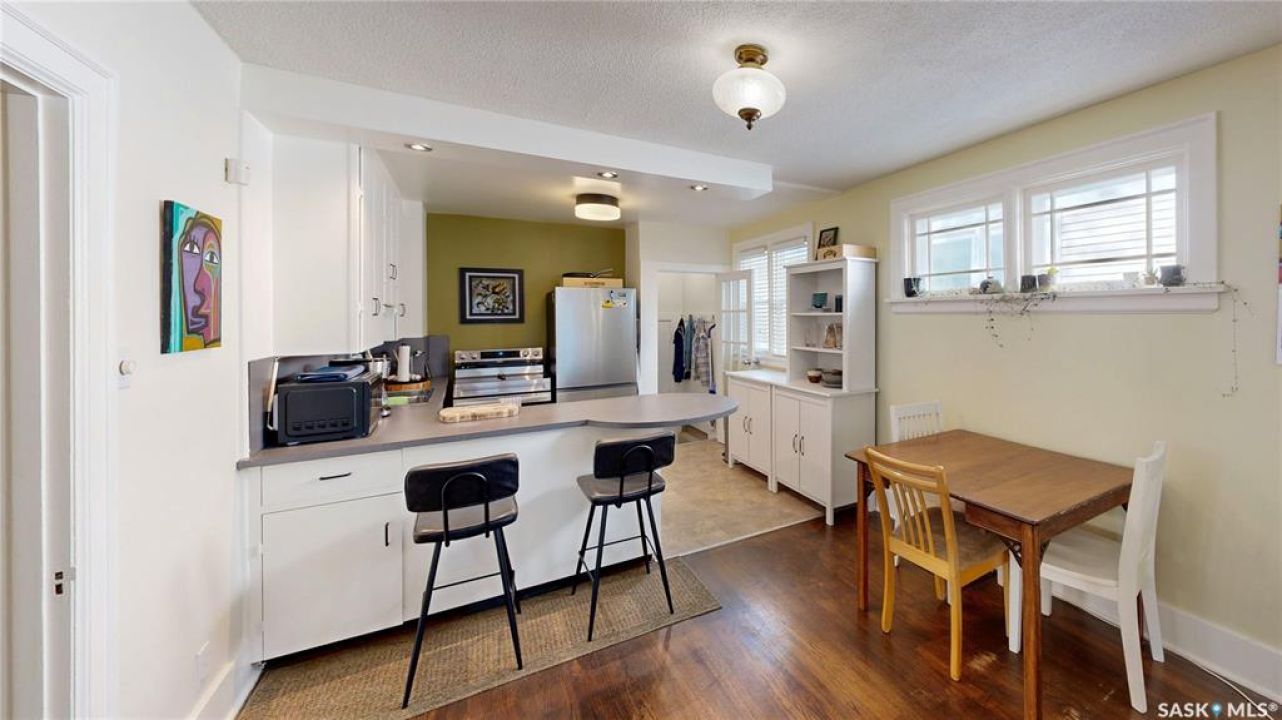 Welcome to 1040 Montague Street! This 1929 built bungalow has some original character and charm with some smart modernizations. The home is 796 square feet in size and has 2 bedrooms with room for future development in basement. It sits on a 25' x 125' rectangular lot that has rear lane, and is close to Sacred Heart School, Grassick Playground Park, and multiple bus routes. The front yard showcases a lawn and mature tree. The backyard is fully fenced with a tall privacy fence for tranquility and solitude. There are unique, towering trees, a patio for a table and chairs, a lawn area, raised garden boxes, an included storage shed and space at the back for keeping a vehicle as the back gate has large double doors. Inside the home, you're welcomed into a foyer area and into an inviting living room that has beautiful hardwood floors, several wall sconces, a fireplace feature and multiple bright windows. Adjacent to the living room is a dining area also with hardwood flooring that then connects to a kitchen that has a long countertop with bar seating and linoleum flooring. The fridge, stove and dishwasher here are all included. Next is the cute 4 piece bathroom with tiled tub surround and a patterned tile backsplash running behind the vanity and along the walls. Finishing off the main floor are two bedrooms that both have hardwood floors and closet space! Downstairs, the partially finished basement begins with the laundry area that includes the washer and dryer. There is ample storage space and even a workshop area down here. To the other side sits a sizeable recreation room area that could be made into additional bedroom space if required.