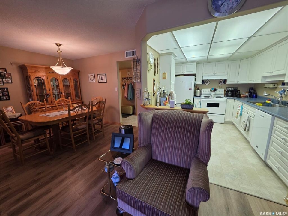 Life gets a little easier when your home is designed with comfort and convenience in mind, and this 2-bedroom, 2-bath condo delivers just that. With a roomy entry, you have the space for a bench to ease putting on shoes. The bright, white kitchen includes a reverse osmosis water system and has plenty of room for a casual eating table. Around the corner is a space for more formal dining, joined together with a comfortable living room. Much of the flooring has been updated to vinyl plank, so it looks modern and fresh without demanding much upkeep. The spacious primary bedroom features a walk-in closet and a private 3-piece en suite with a walk-in shower—no more climbing in and out of tubs. The second bedroom gives you flexibility for visiting grandkids, a sewing room, or even a quiet office space, while the second bathroom makes hosting easy. One of the best spots in the condo is the enclosed balcony—perfect for morning coffee or curling up with a good book. And when winter hits, you'll be glad for the underground parking, which keeps both you and your vehicle out of the snow and cold. This building is designed with seniors in mind, with extras like an elevator, push-button door openers, a storage room, a crafts room, and an amenities room for those occasions when your family is too much for your suite. It offers a peaceful, friendly community that feels safe and welcoming. You'll know if it's the right fit the moment you step inside and feel at home. But don't delay, as this rare senior-oriented condo will NOT last long.