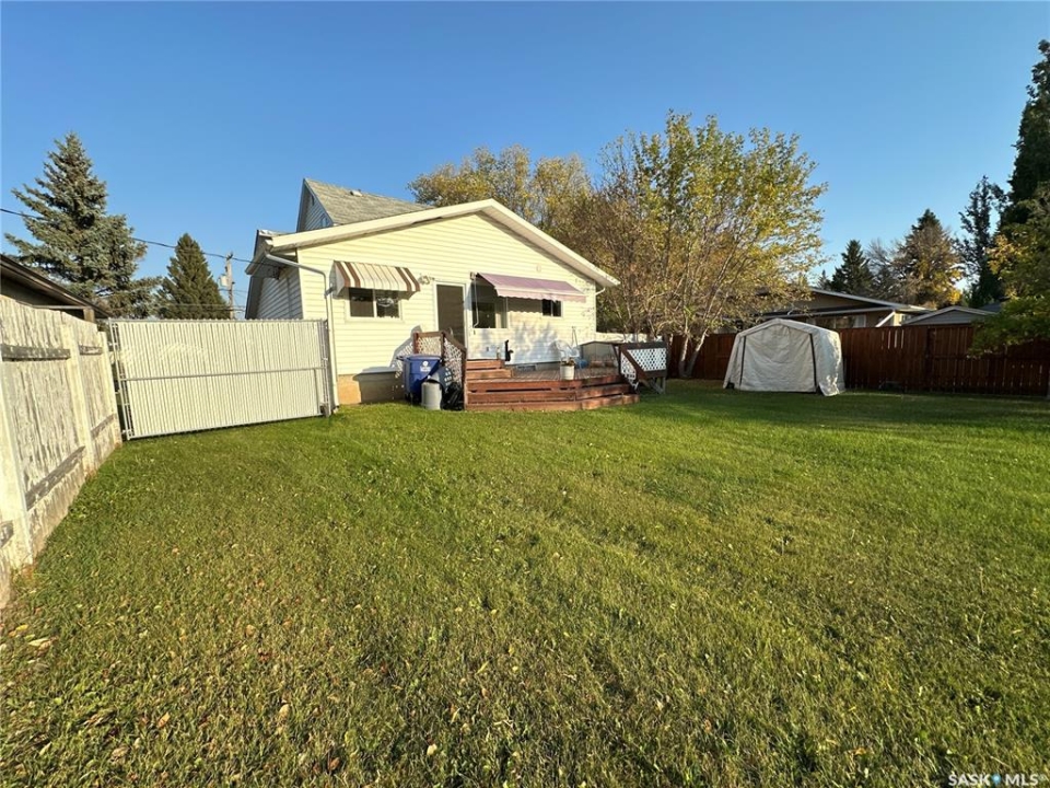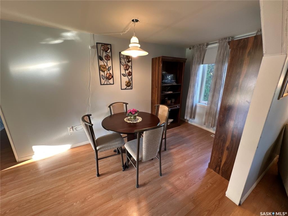 Great location in Rosthern. 1272 sq ft 1 1/2 storey house on a large 55' x 207' lot in Rosthern with room for a rear garage with access from the front drive or the back alley! Wider stairs lead up from the entrance to the main floor that was extensively renovated in the past. Newer wiring & insulation, windows & siding with styrofoam insulation underneath, kitchen & main floor laundry/bath with a tub and a shower. The main floor also has a large living room and a second dining room. A wide stairway also leads to the very functional basement which has a large family room, a storage room, den or office space, and a 1/2 bath in the utility room. Again wide stairs lead to the second floor which remains un-renovated with a large bedroom and a family room that together could be converted to two nice bedrooms.