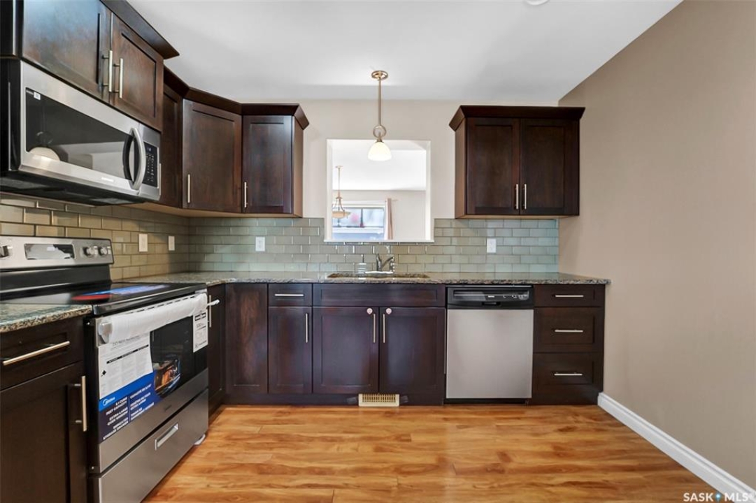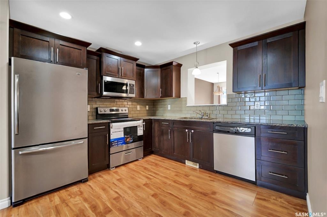 Spacious 3-bedroom, 4-bathroom End Unit townhouse in a prime location, complete with an attached garage. This 1634 sqft end unit offers exceptional natural light and stylish design. The living room boasts 12' ceilings and opens directly to your deck. The second floor features an open-concept kitchen with granite countertops and glass backsplash, brand-new appliances (stove and over-the-range microwave), and a spacious dining area. Also, you will find a 2-piece powder room for your convenience. The top floor boasts three generously sized bedrooms. You will find a decent-sized walk-in closet and a 4-piece en-suite off the master bedroom. The fully finished basement offers a huge family room and another full 4-piece bathroom, providing space for guests or recreation. This home is just steps from schools, restaurants, gas station, grocery stores, shopping centers, and all amenities, with easy access to Circle Drive South. Don't miss it. Shows 10/10. Call your REALTOR for a private viewing.